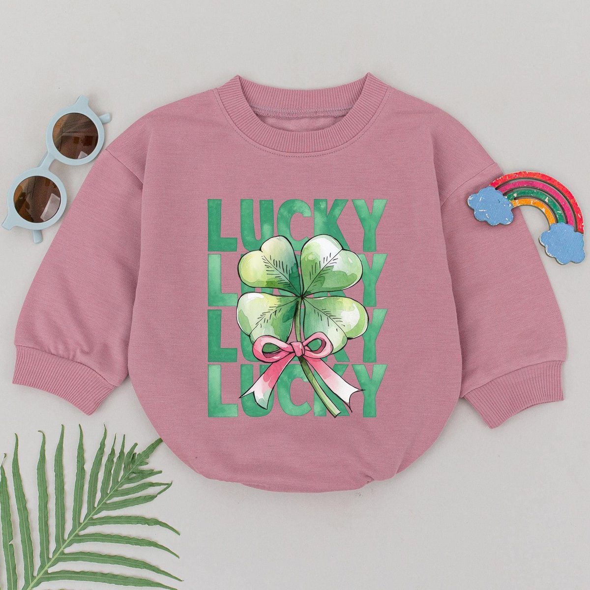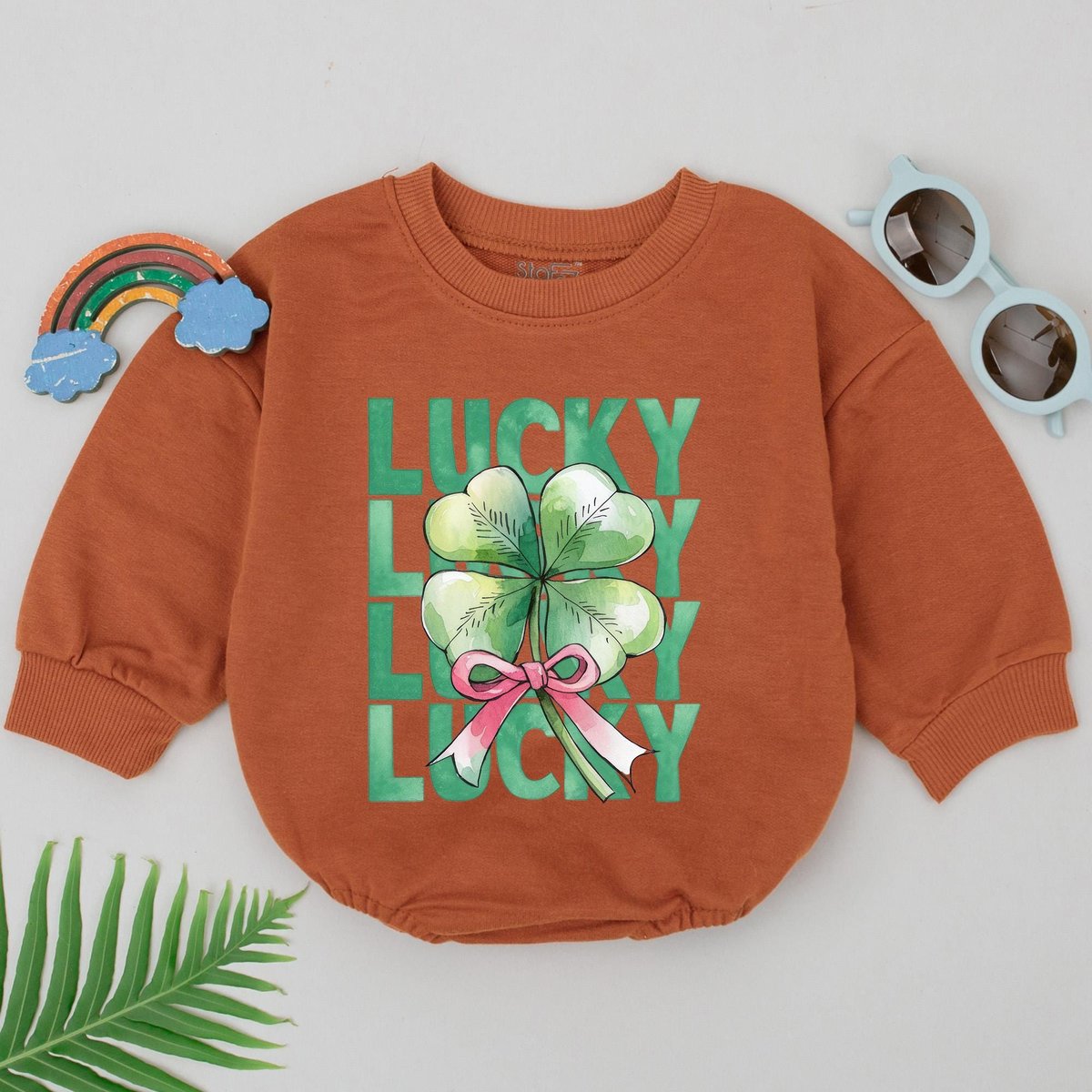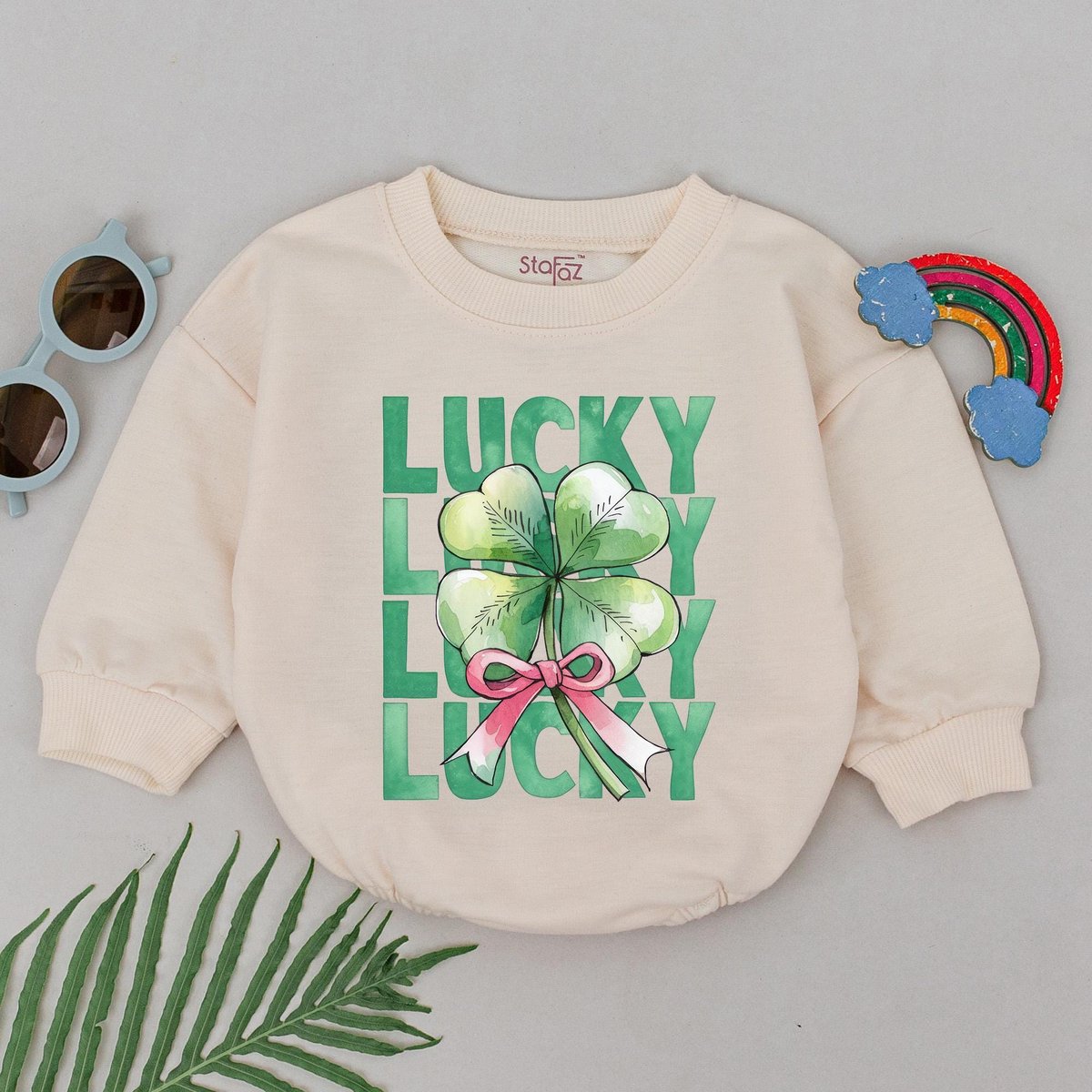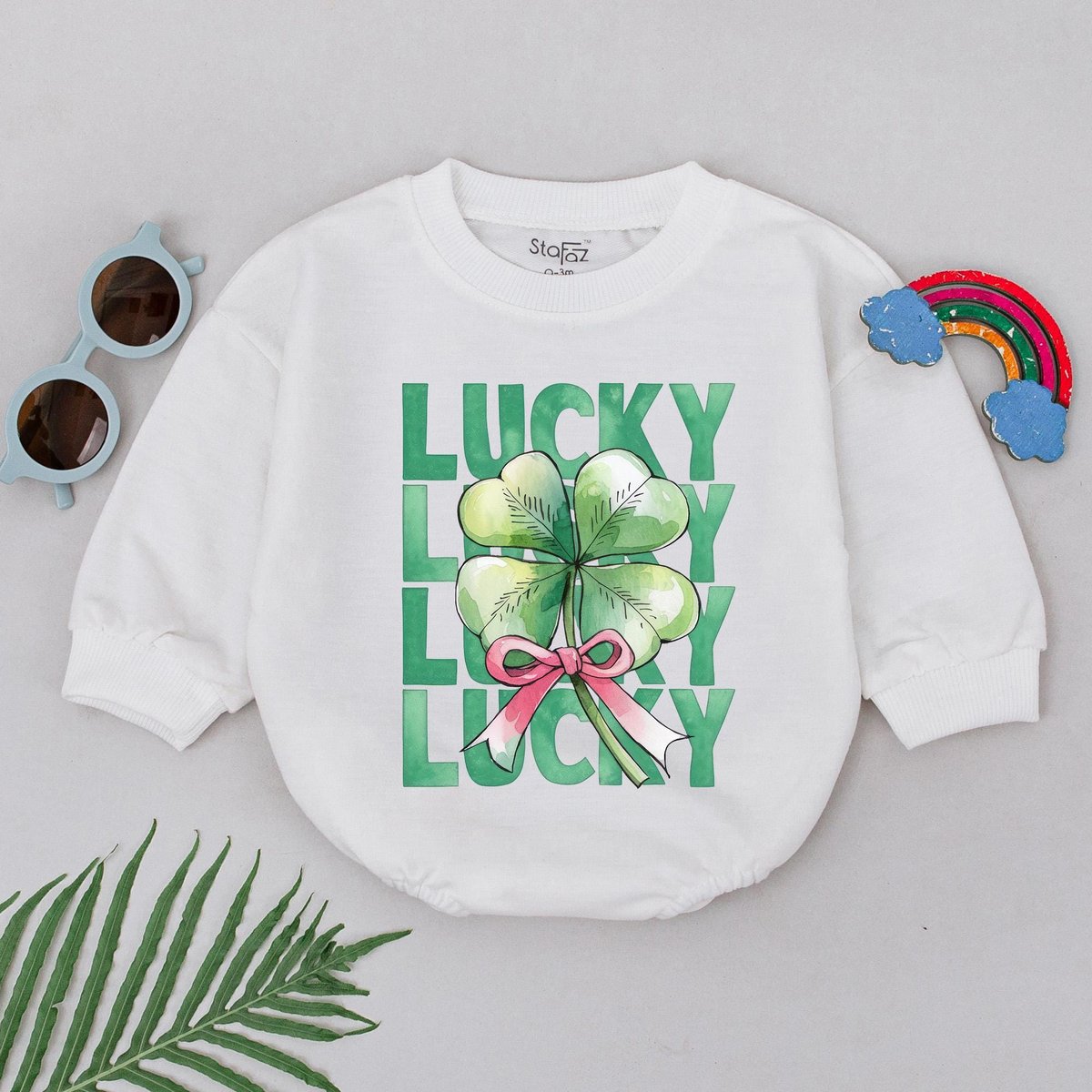 Retro Lucky Shamrock Baby Romper First Patrick’s Day Shamrock Romper Natural Baby Shower Gift 1st P