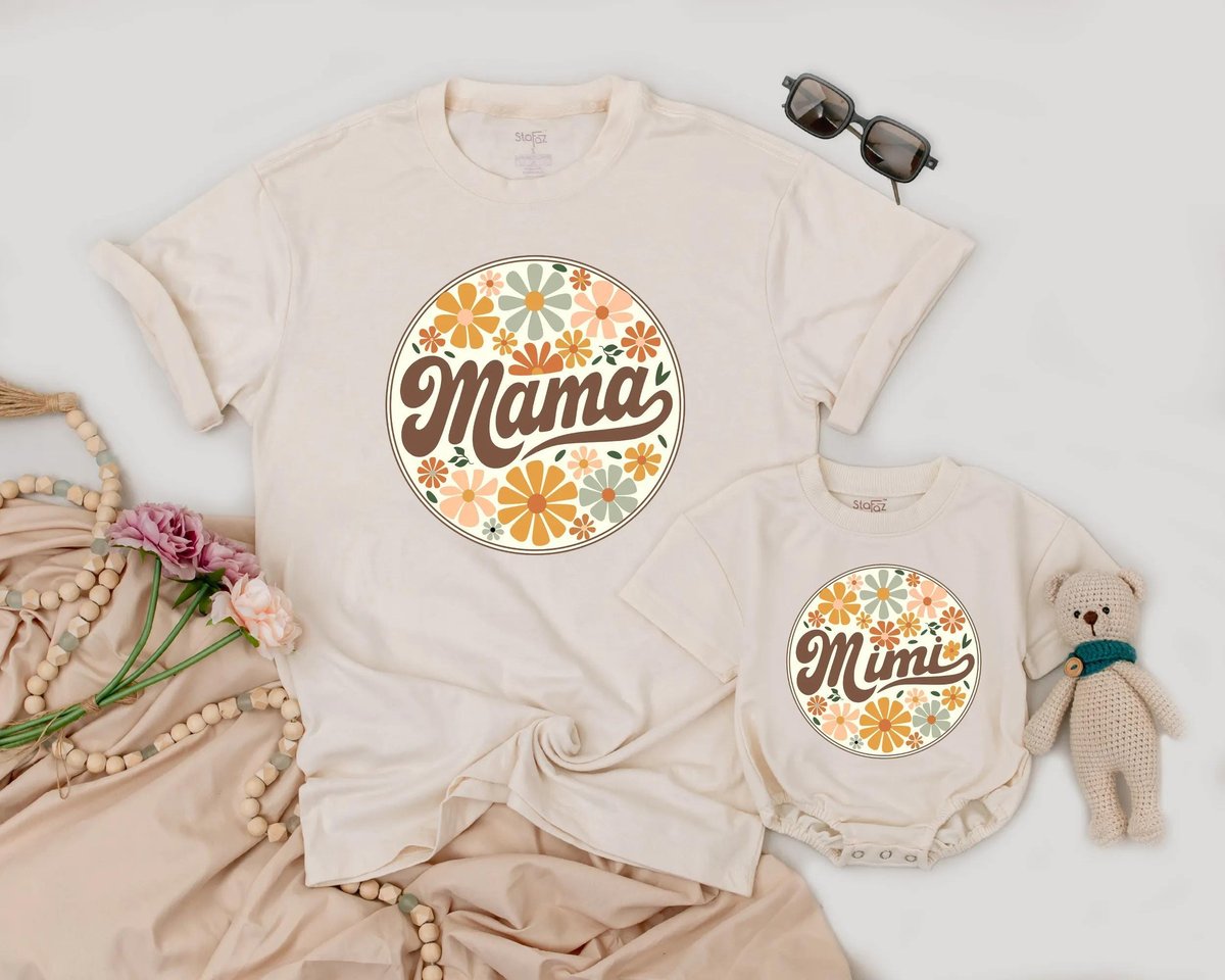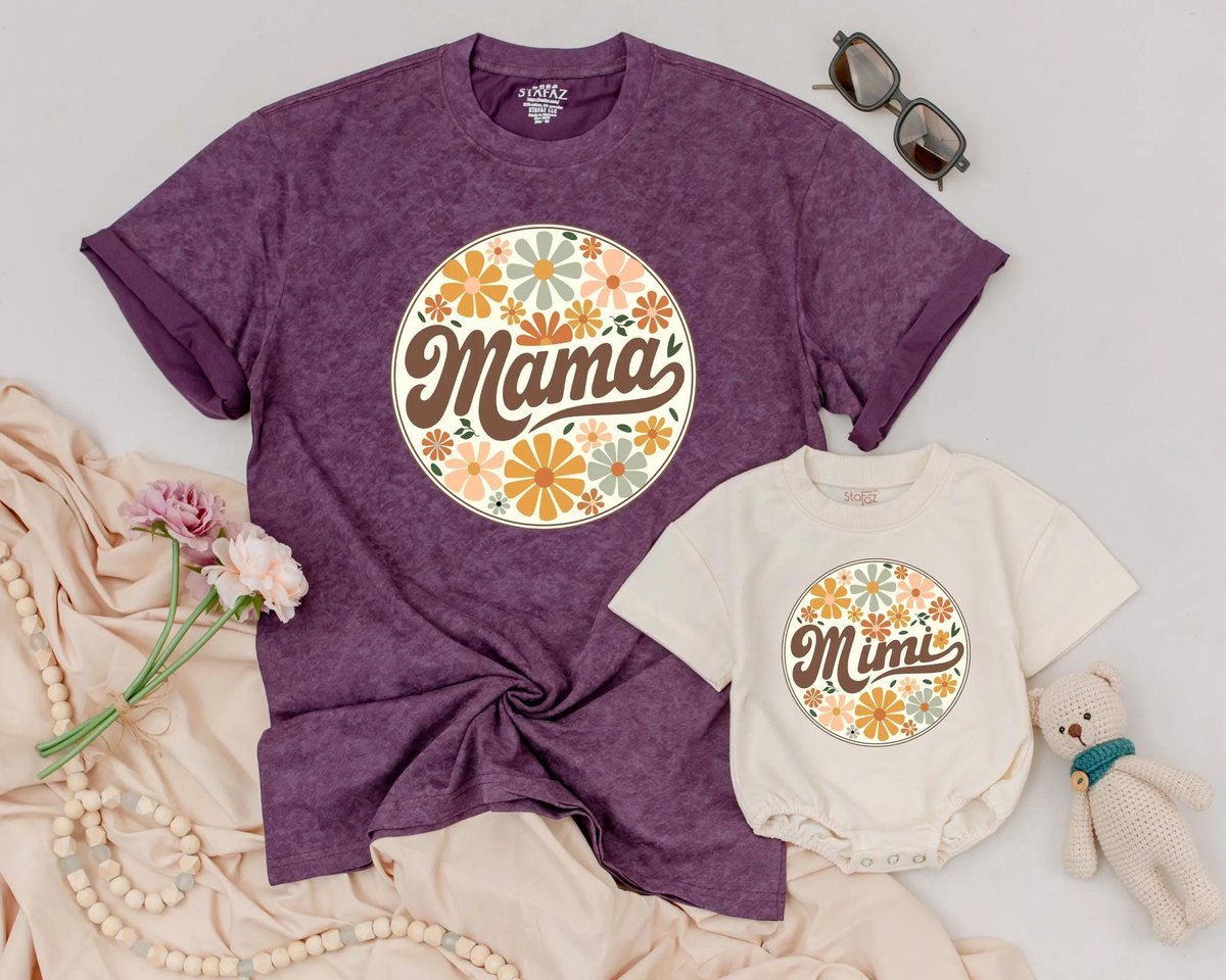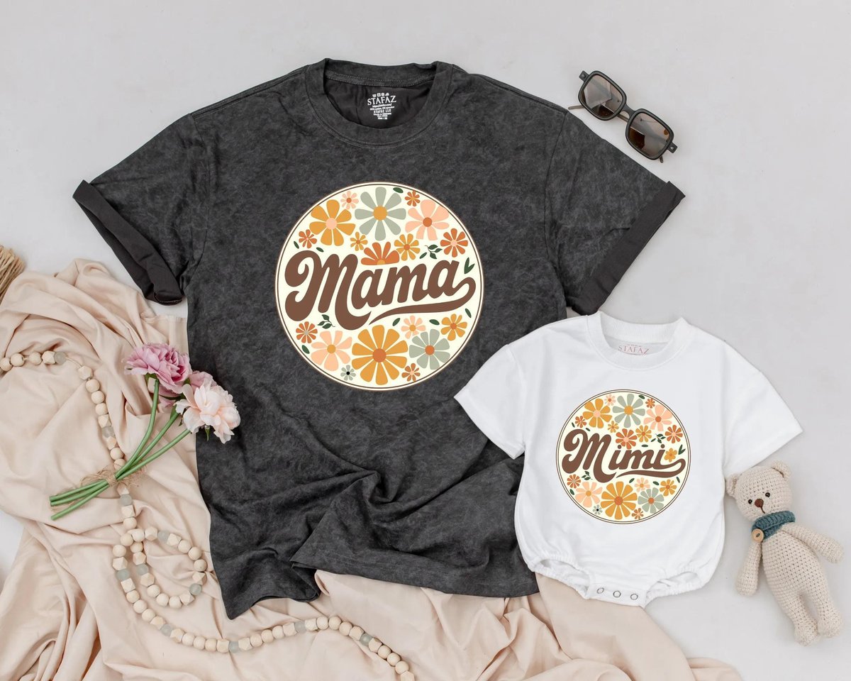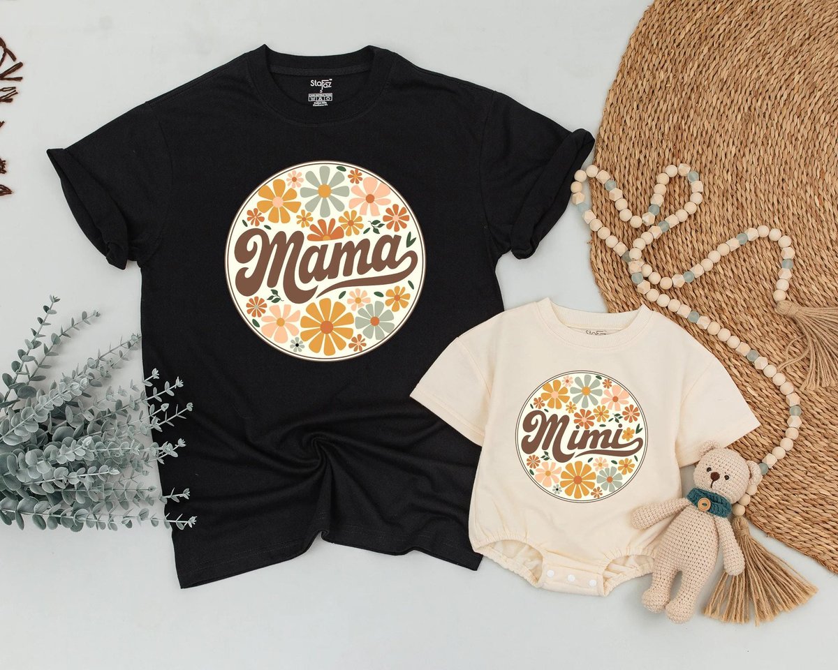 Retro Mama or Mimi Shirt Floral Vintage Mom Tee Mother’s Day Gift Mommy and Me Outfit Matching Fa 188