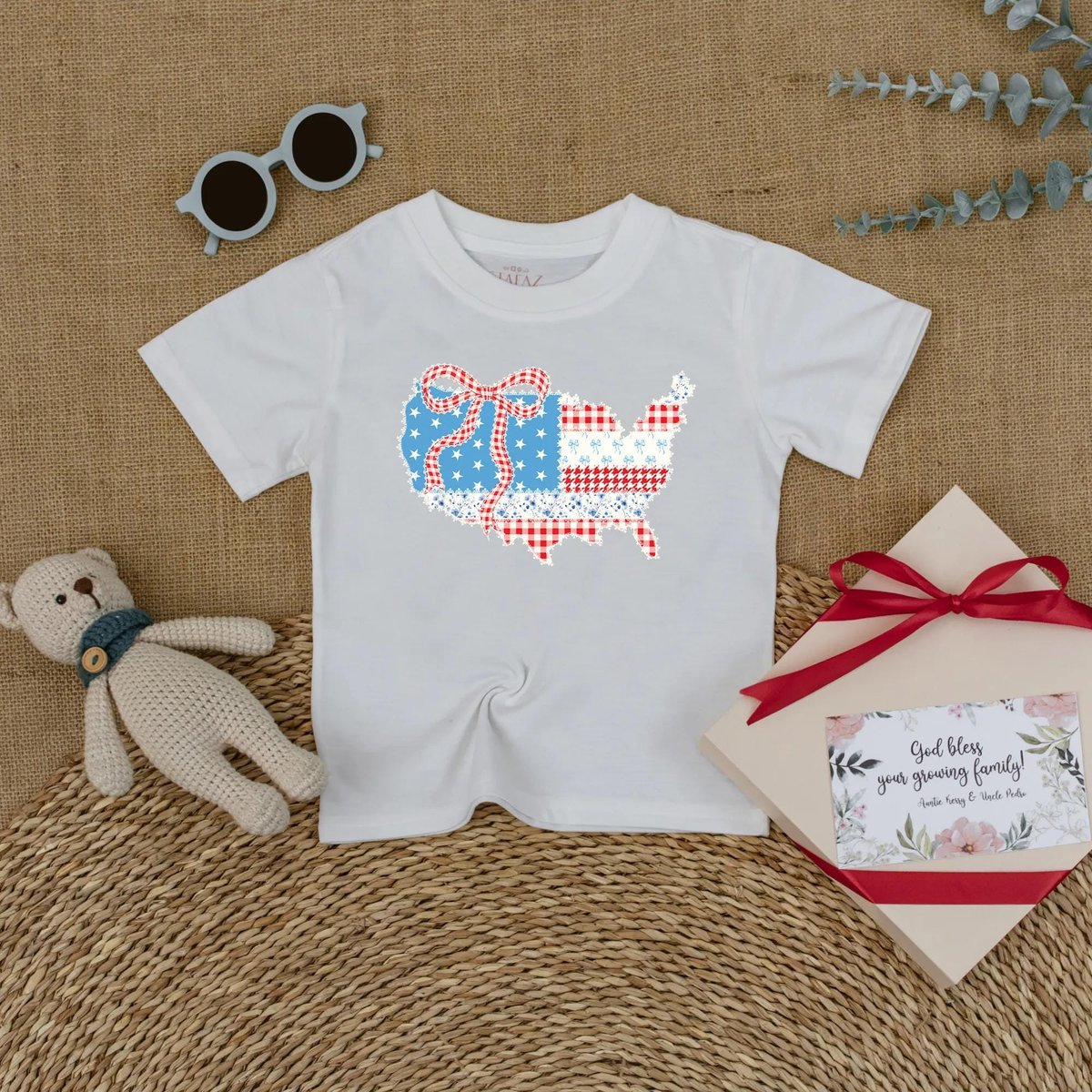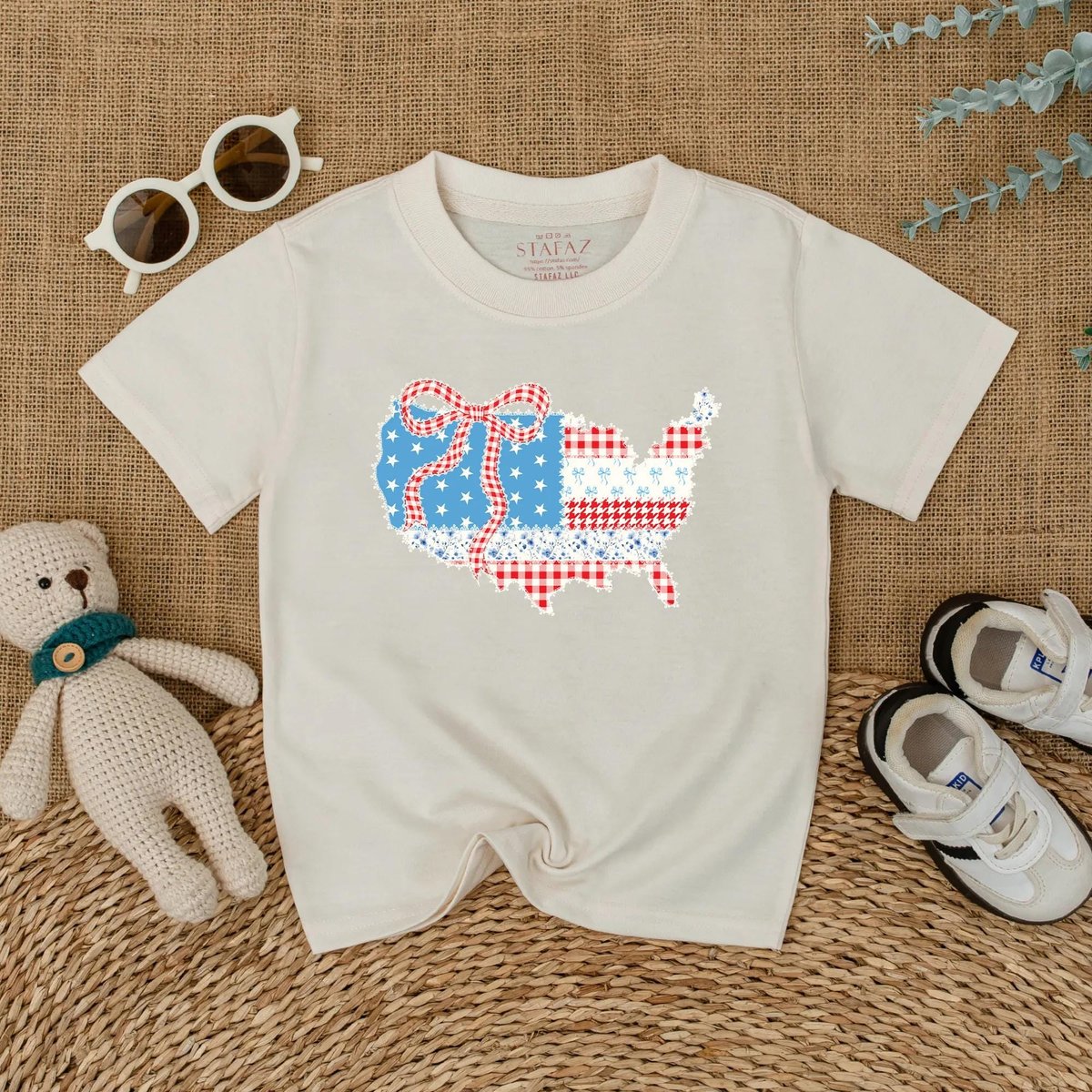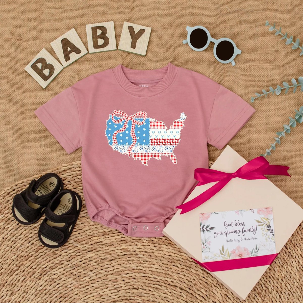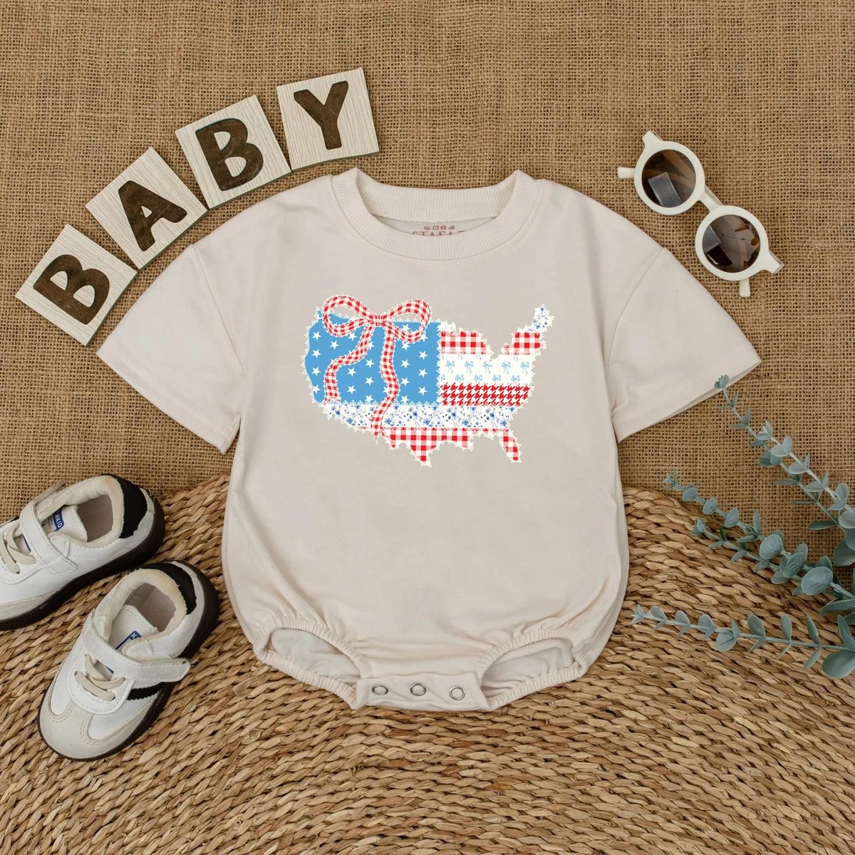Retro USA Map Baby Romper Vintage America 4th of July Outfit Red White Blue Baby Bodysuit Patriotic 431
