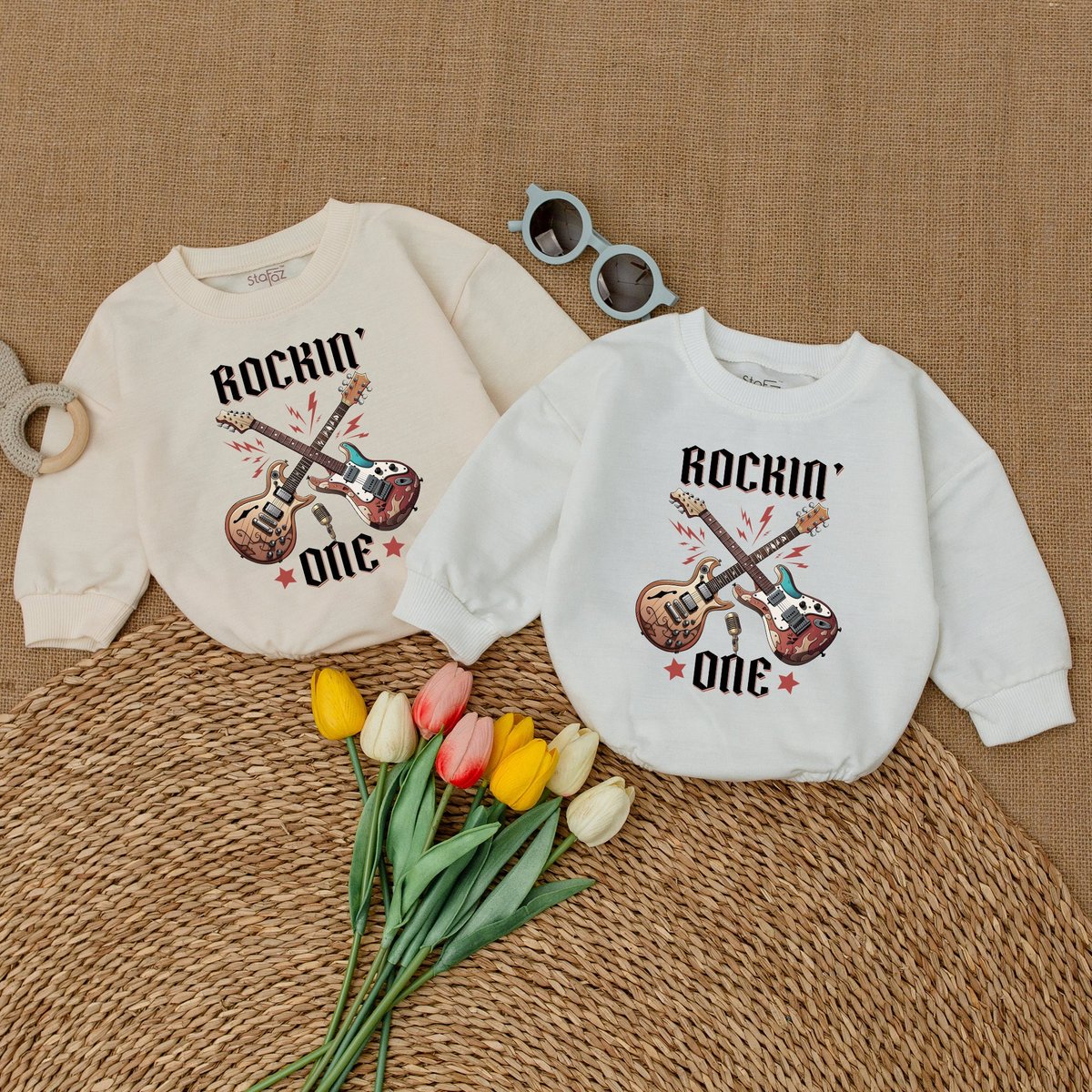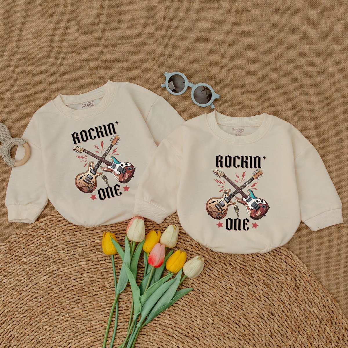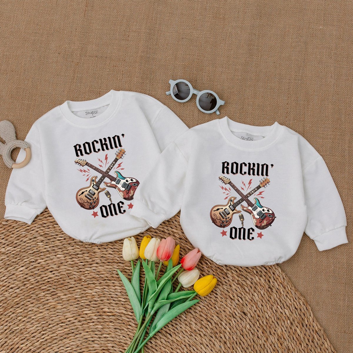 Rockin’ One Birthday Romper Rock n Roll Rock and Roll 1st Birthday Bodysuit Rock Star Birthday Matc 173