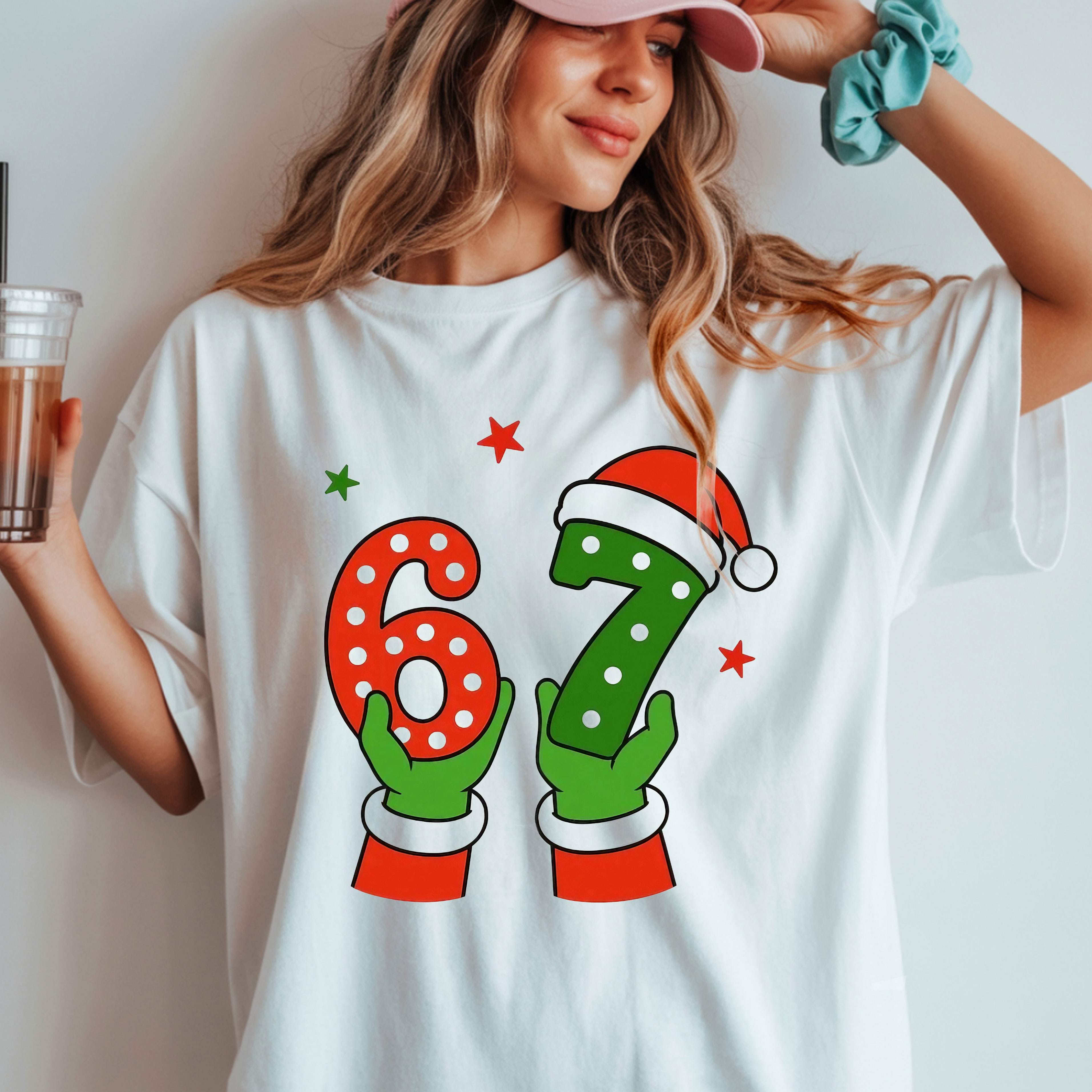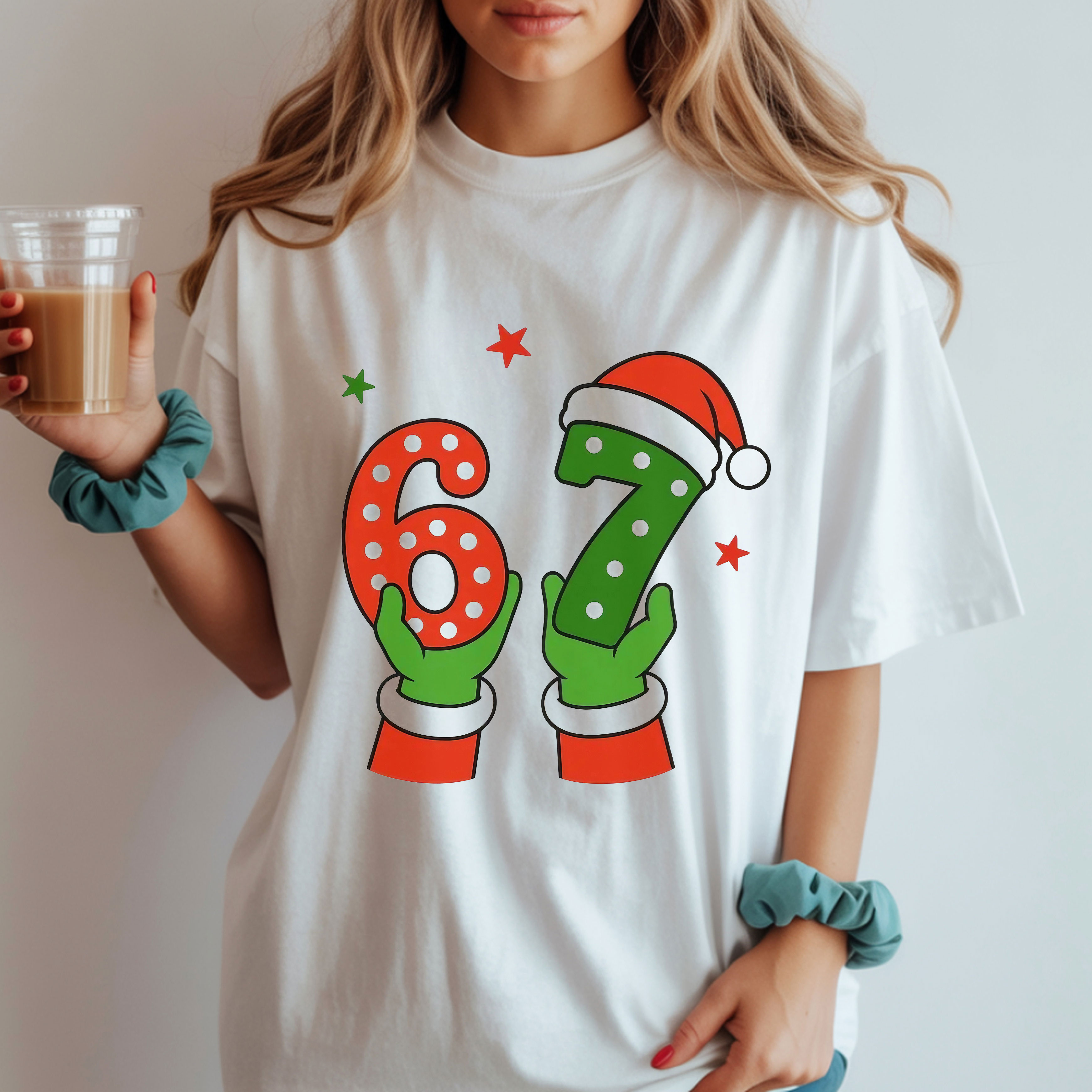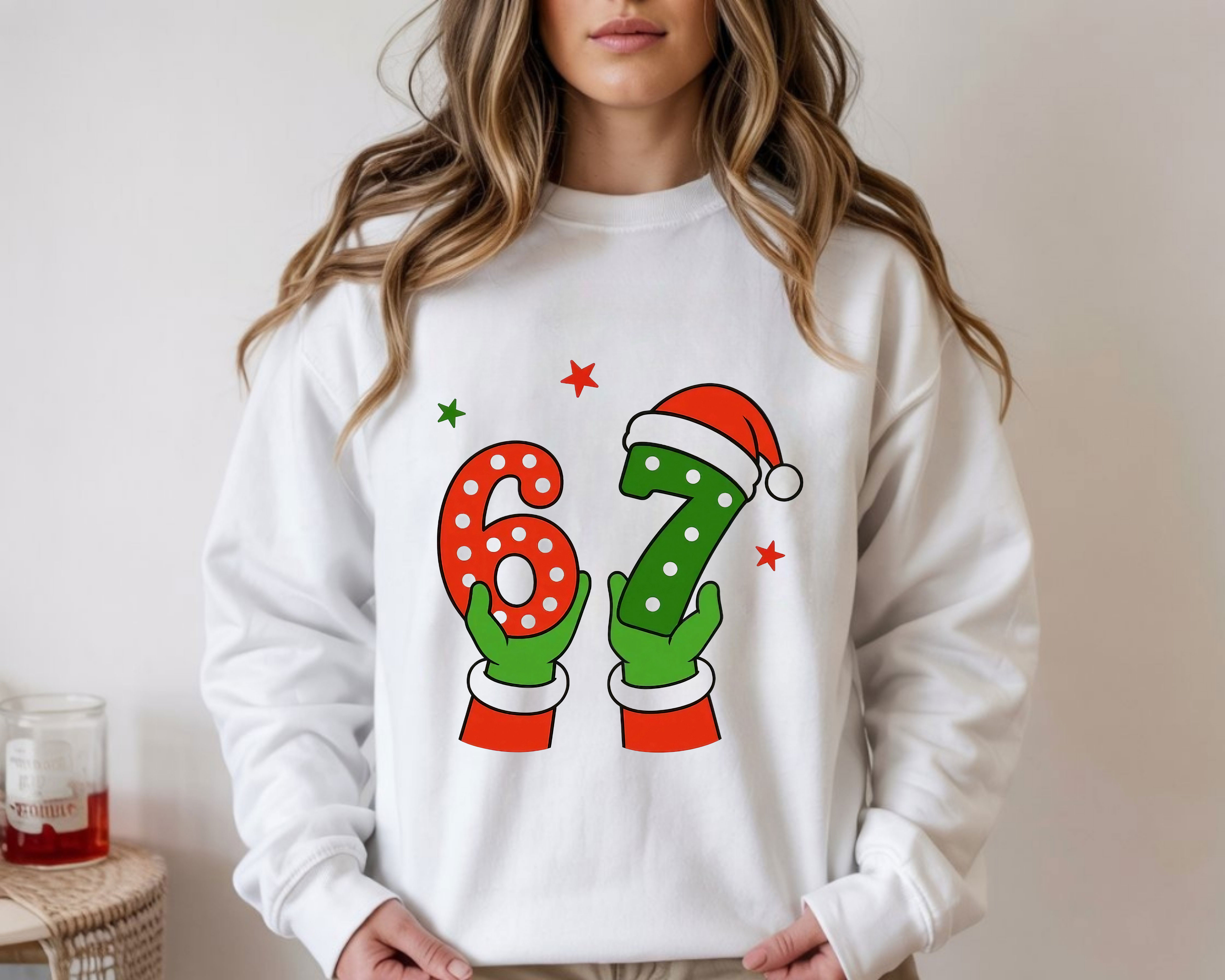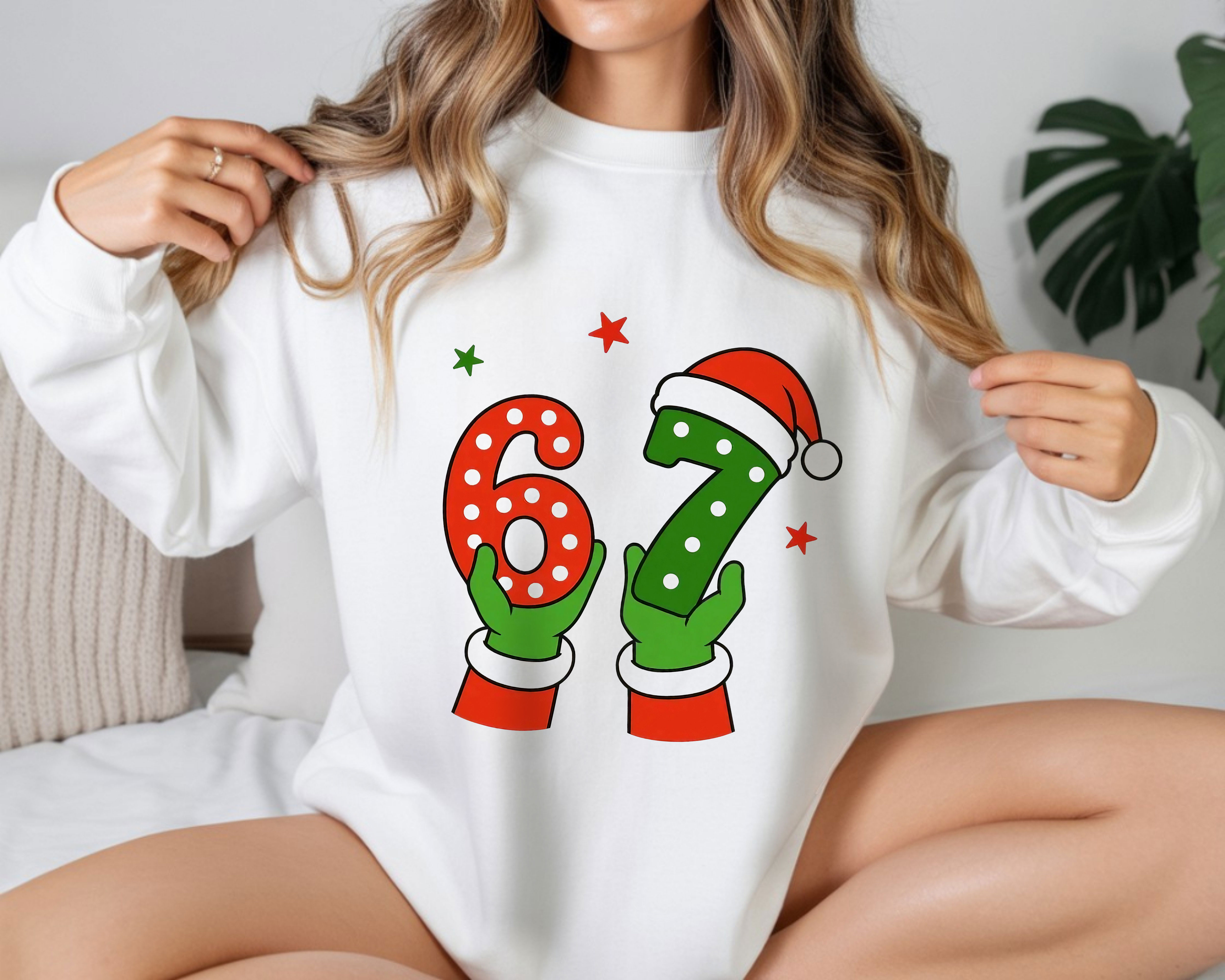 Santa Hands 6 7 Number Art Design Christmas Minimalist Cute T-Shirt, Hoodie & Sweatshirt