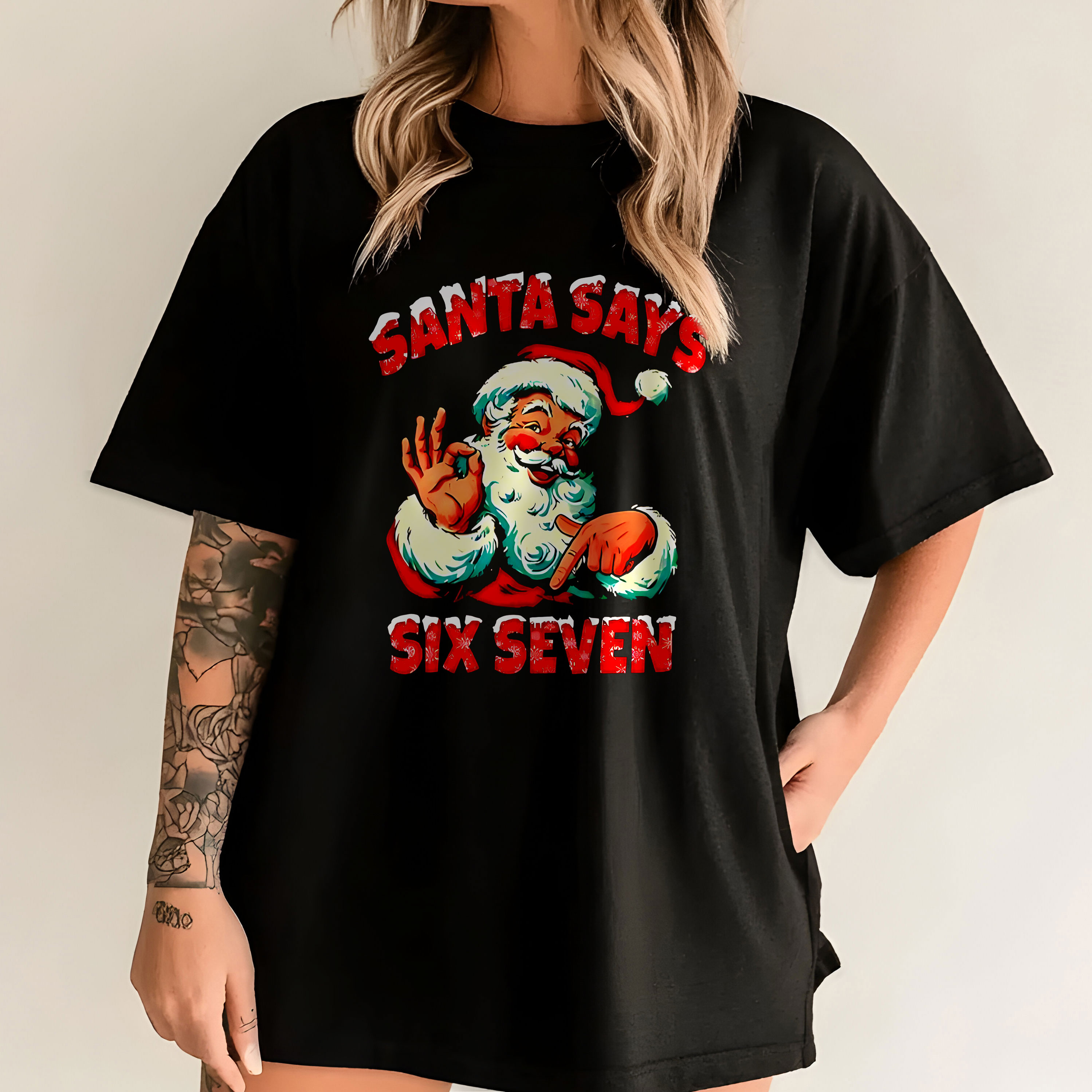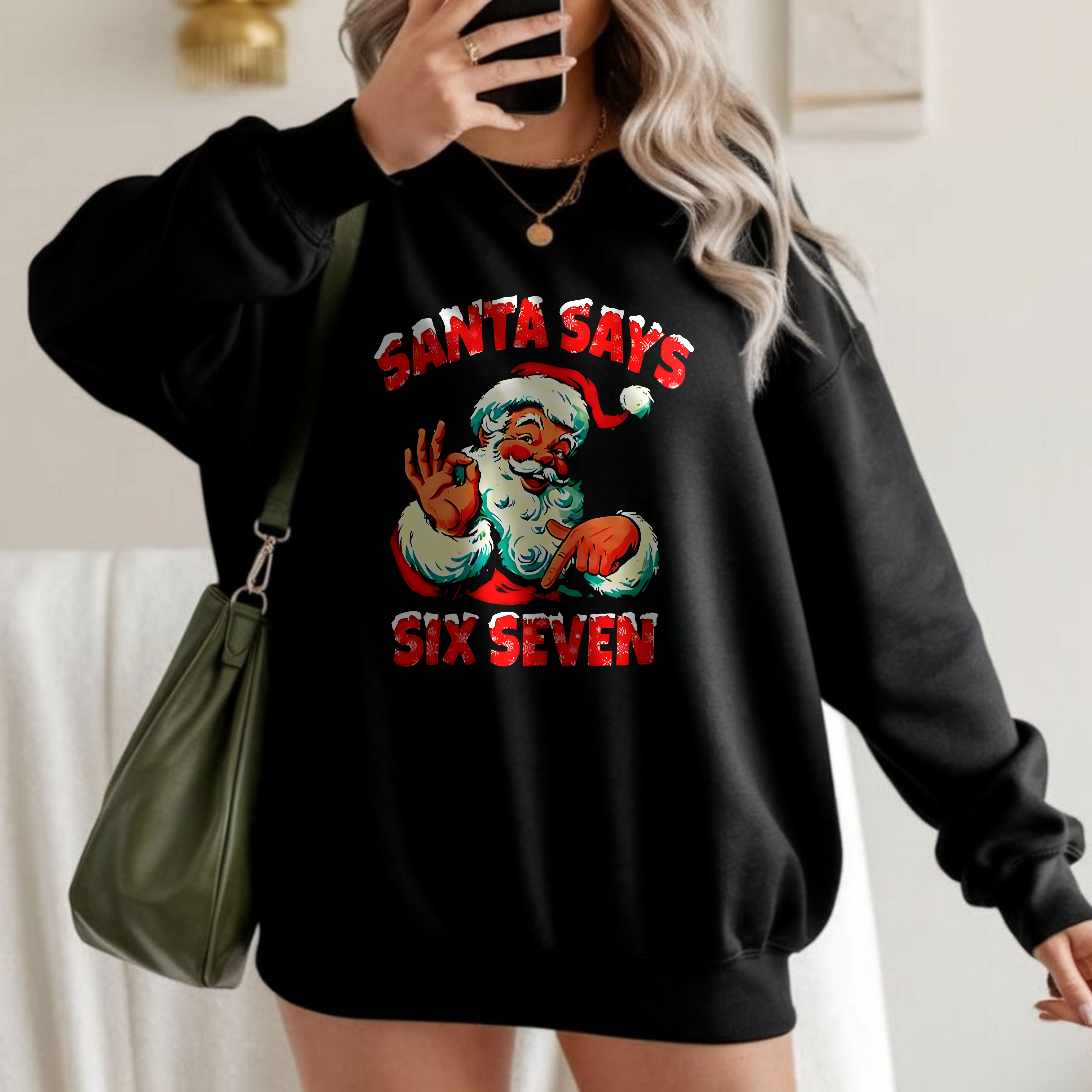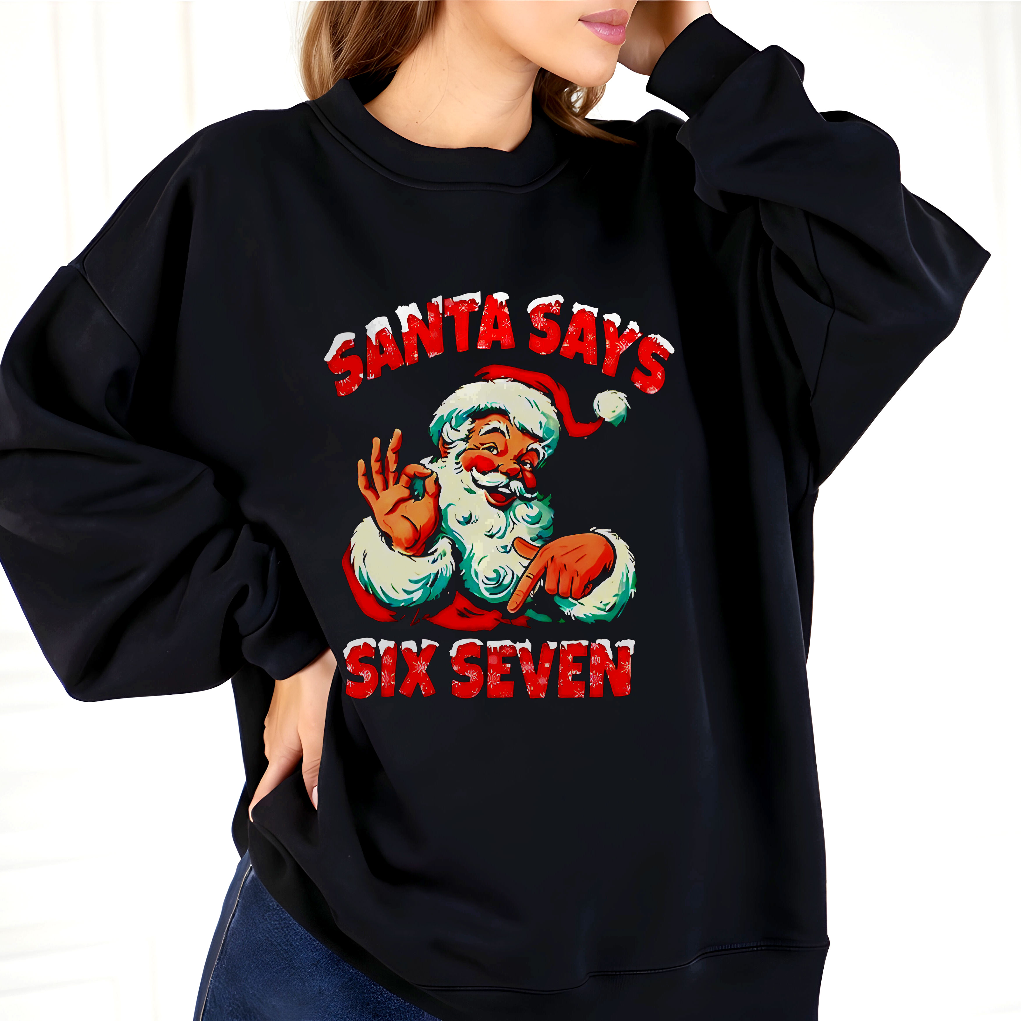 Santa Says Six Seven Funny Gesture Design Christmas Holiday Vintage T-Shirt, Hoodie & Sweatshirt