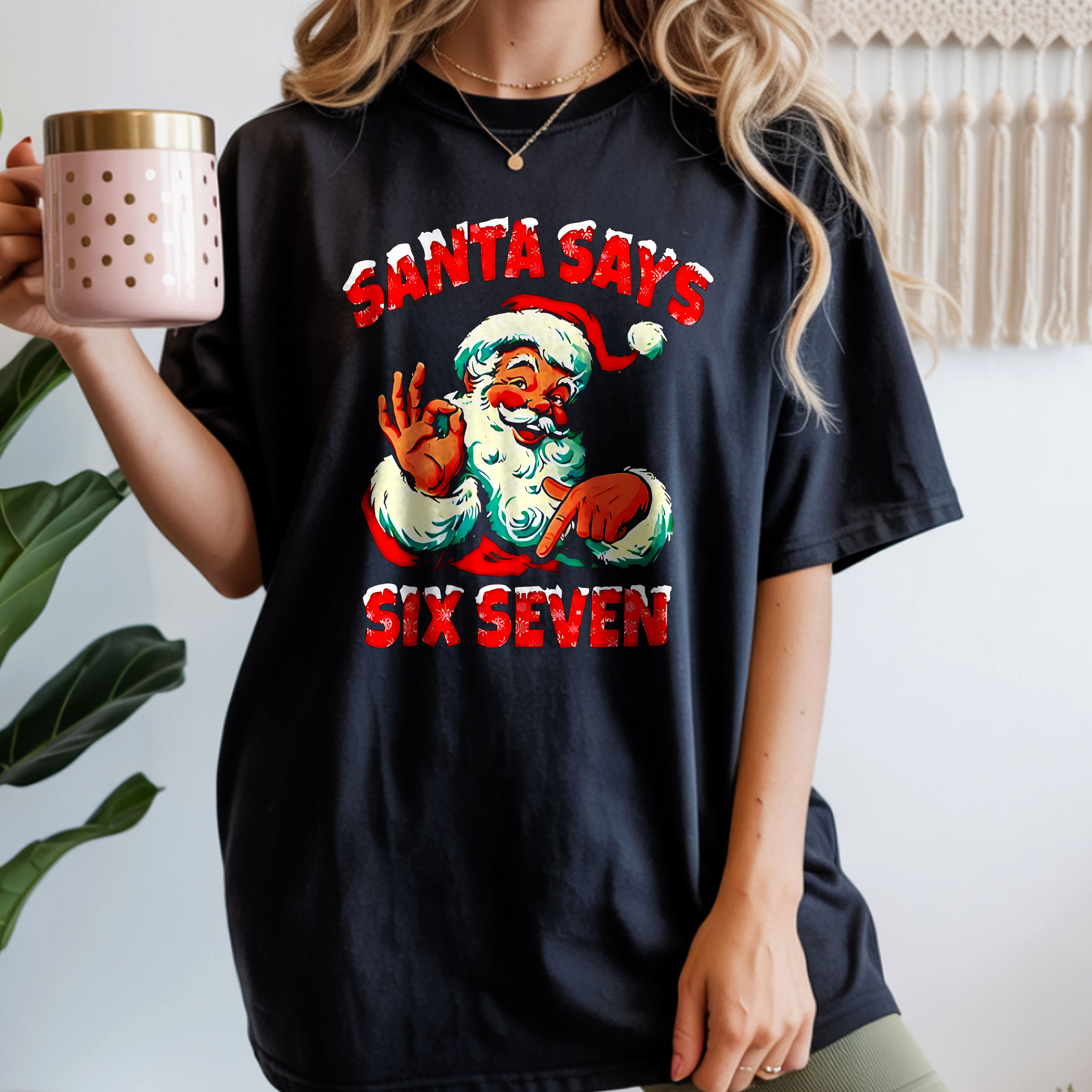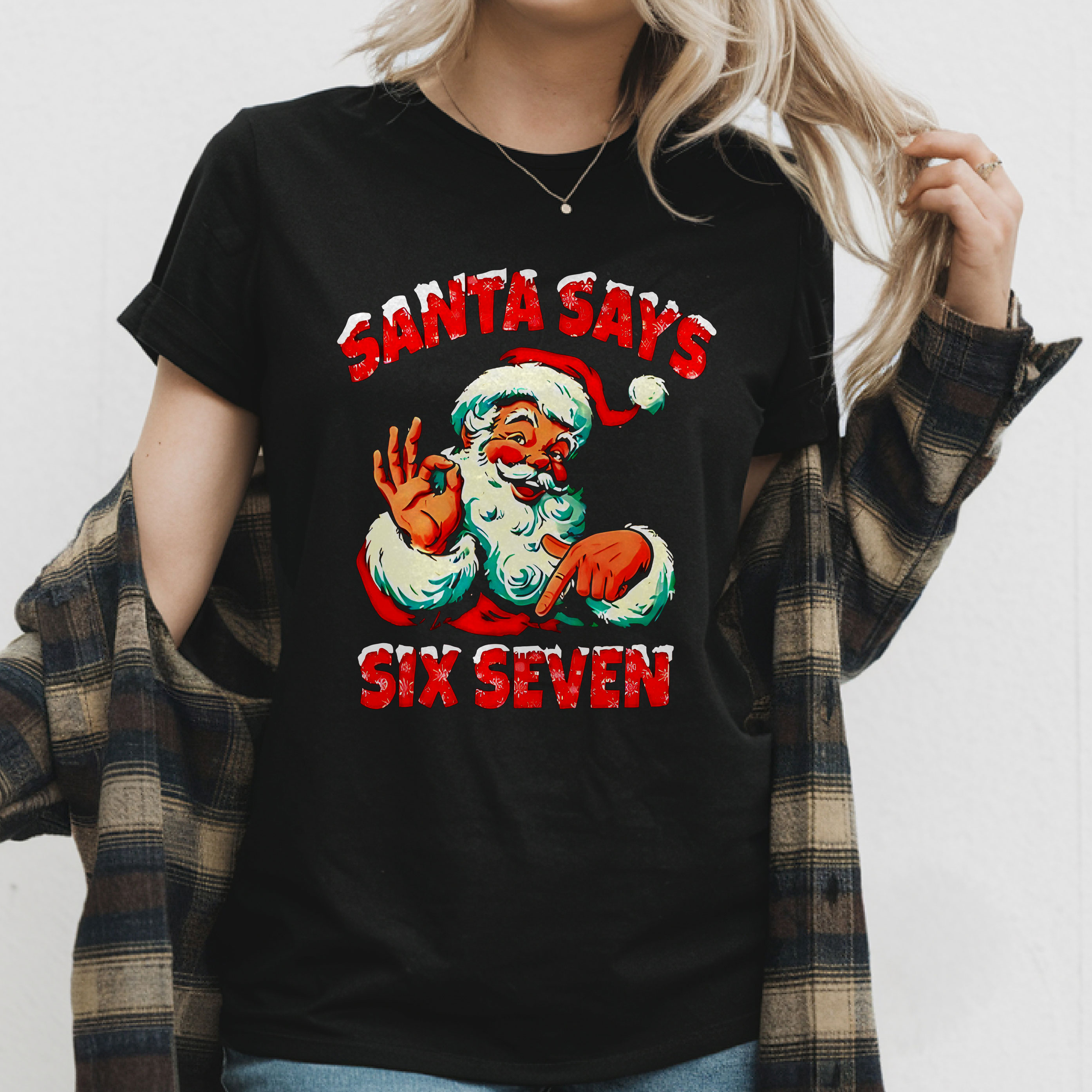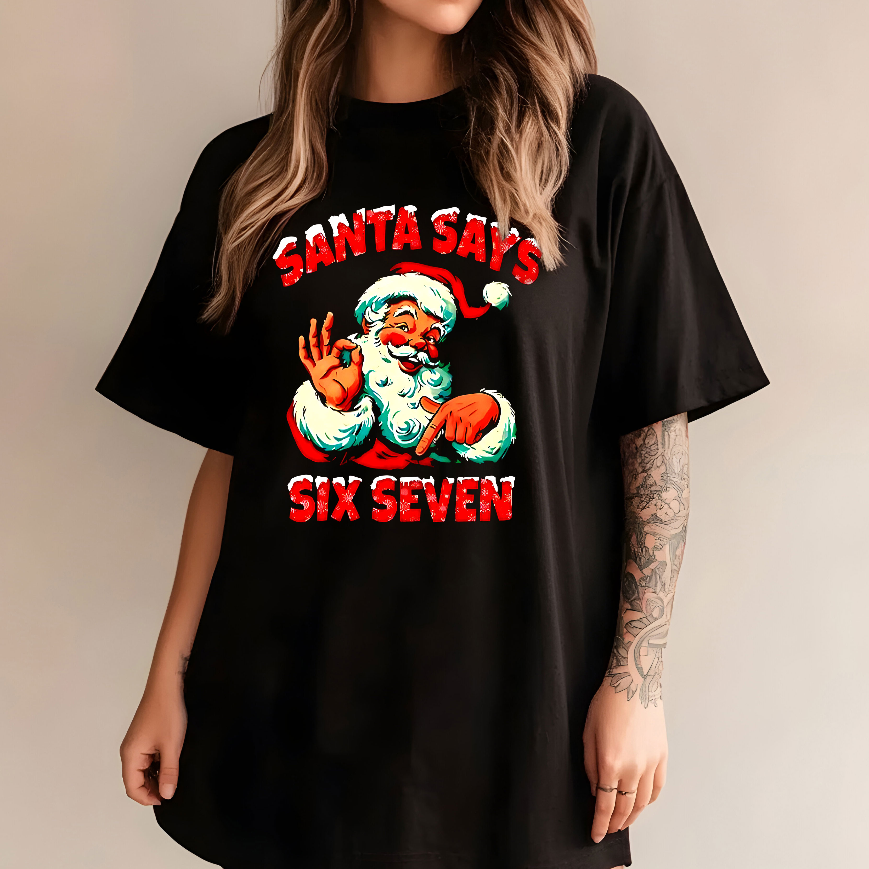 Santa Says Six Seven Funny Gesture Design Christmas Holiday Vintage T-Shirt, Hoodie & Sweatshirt
