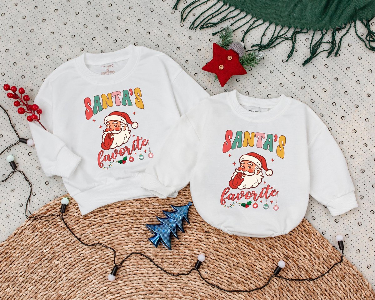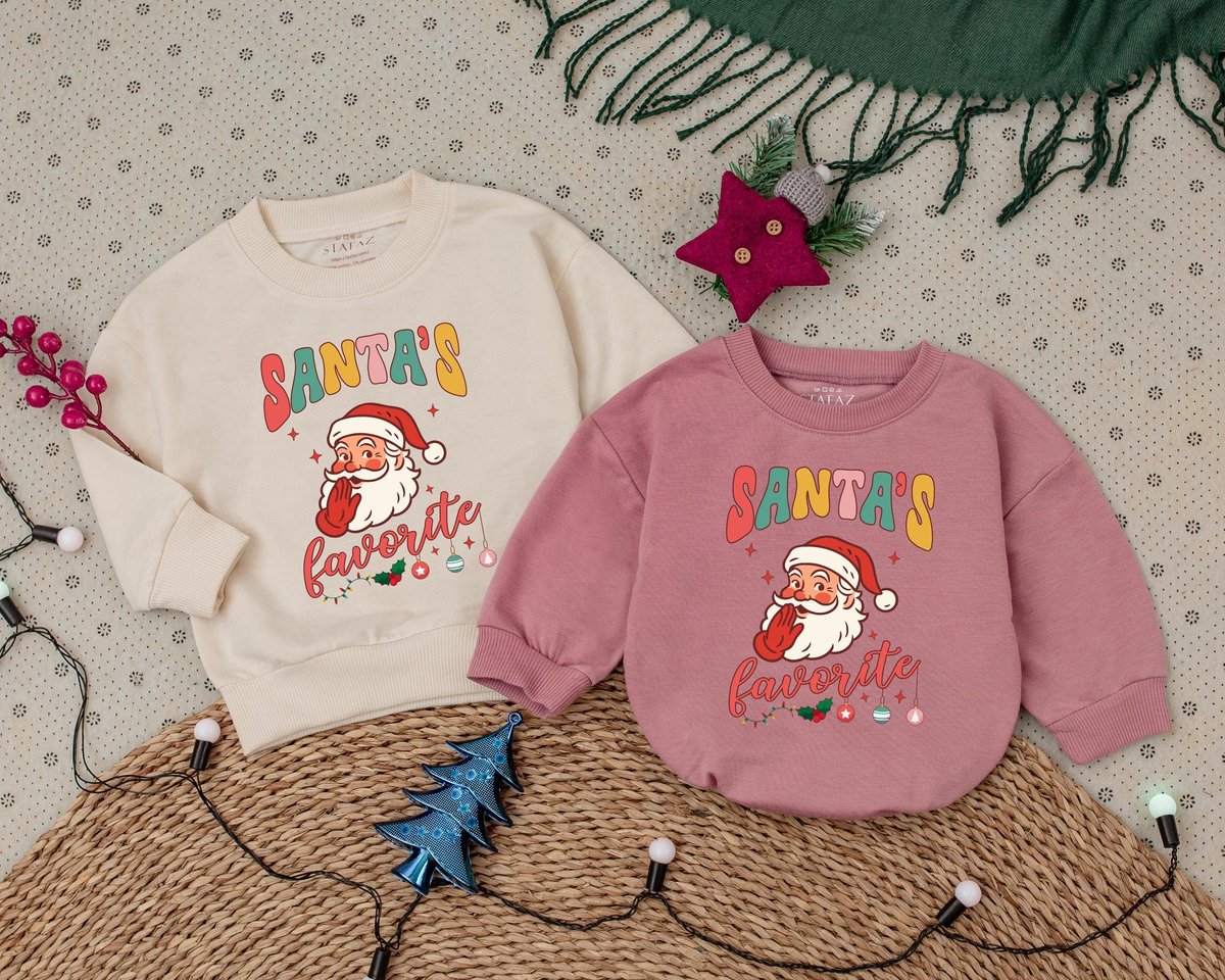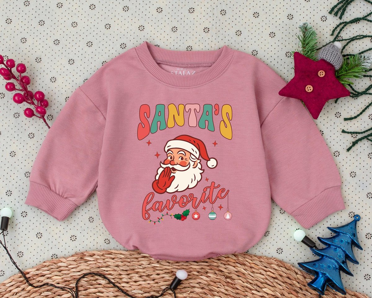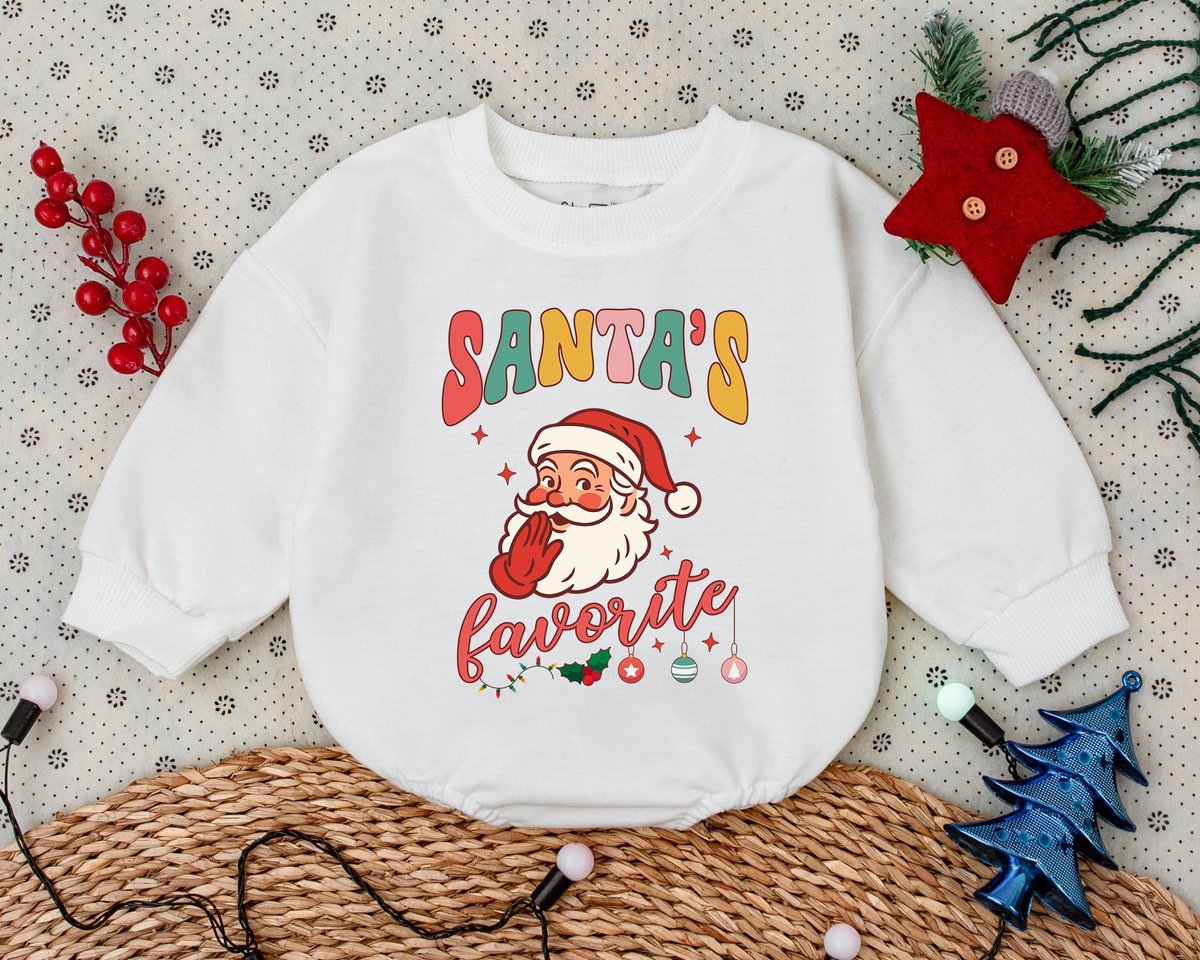 Santa’s Favorite Bubble Romper Christmas baby Santa Outfit Retro First Christmas Babysuit Cute Holi