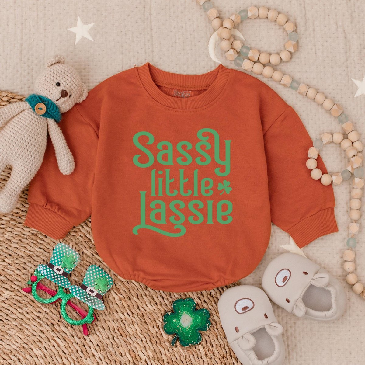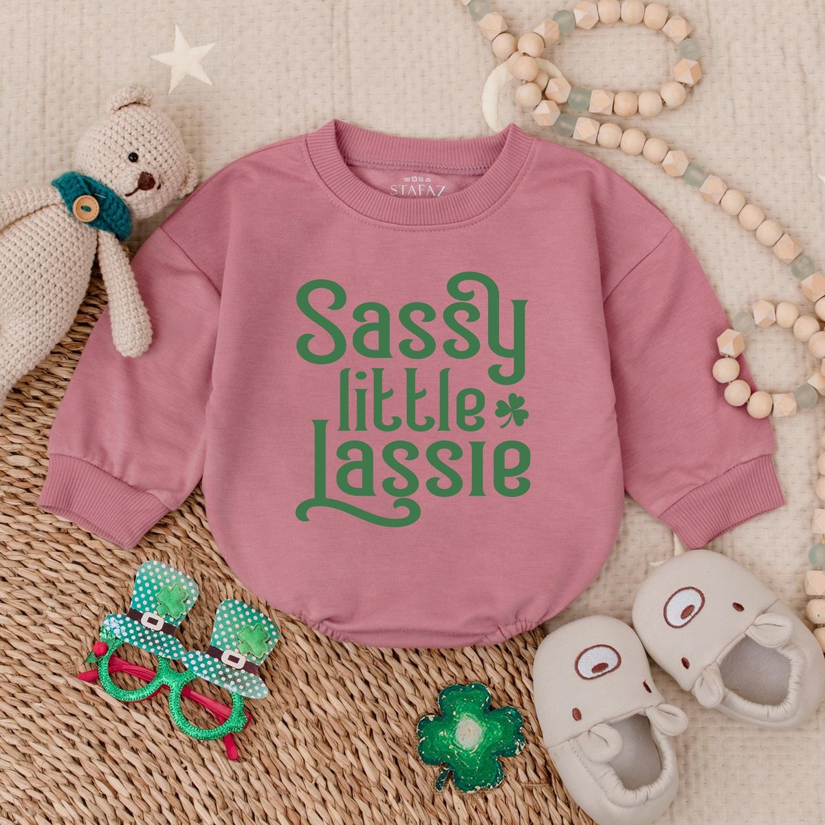 Sassy Little Lassie Baby Romper St Patrick’s Day Bodysuit Irish Baby Outfit Light Mauve Baby