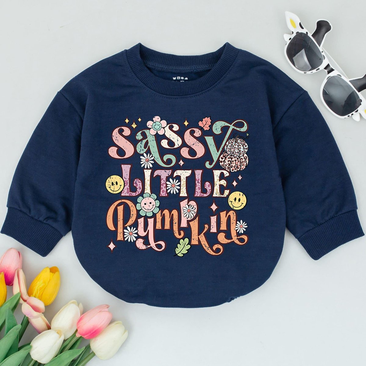 Sassy Little Pumpkin Baby Romper Halloween Bodysuit Sweatshirt Halloween Baby Outfit Fall Baby Cloth 178