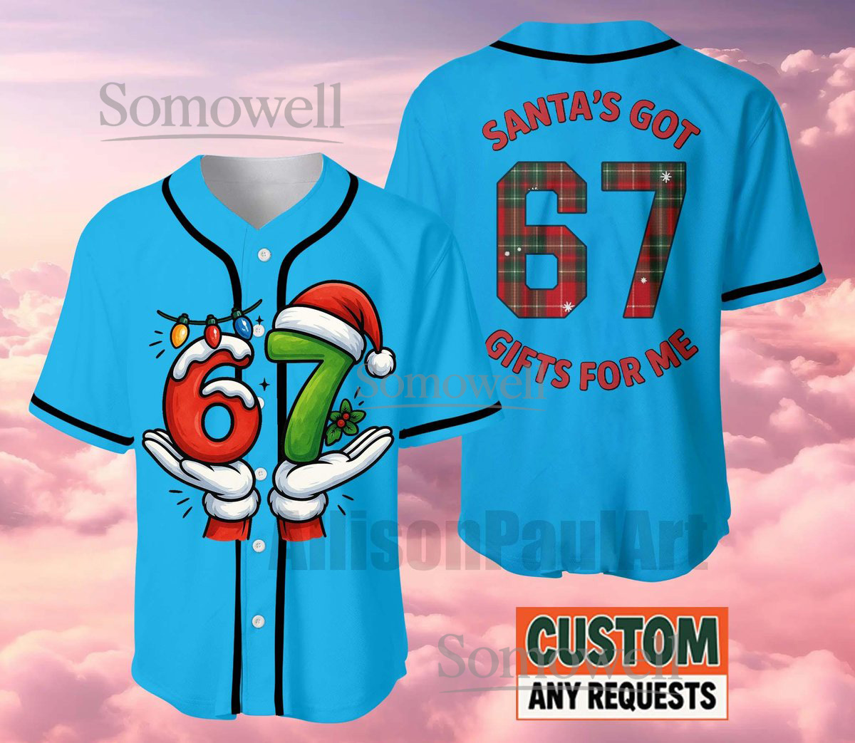 Six Seven Christmas Baseball Jersey Santa Gift Edition Available in Multiple Colors