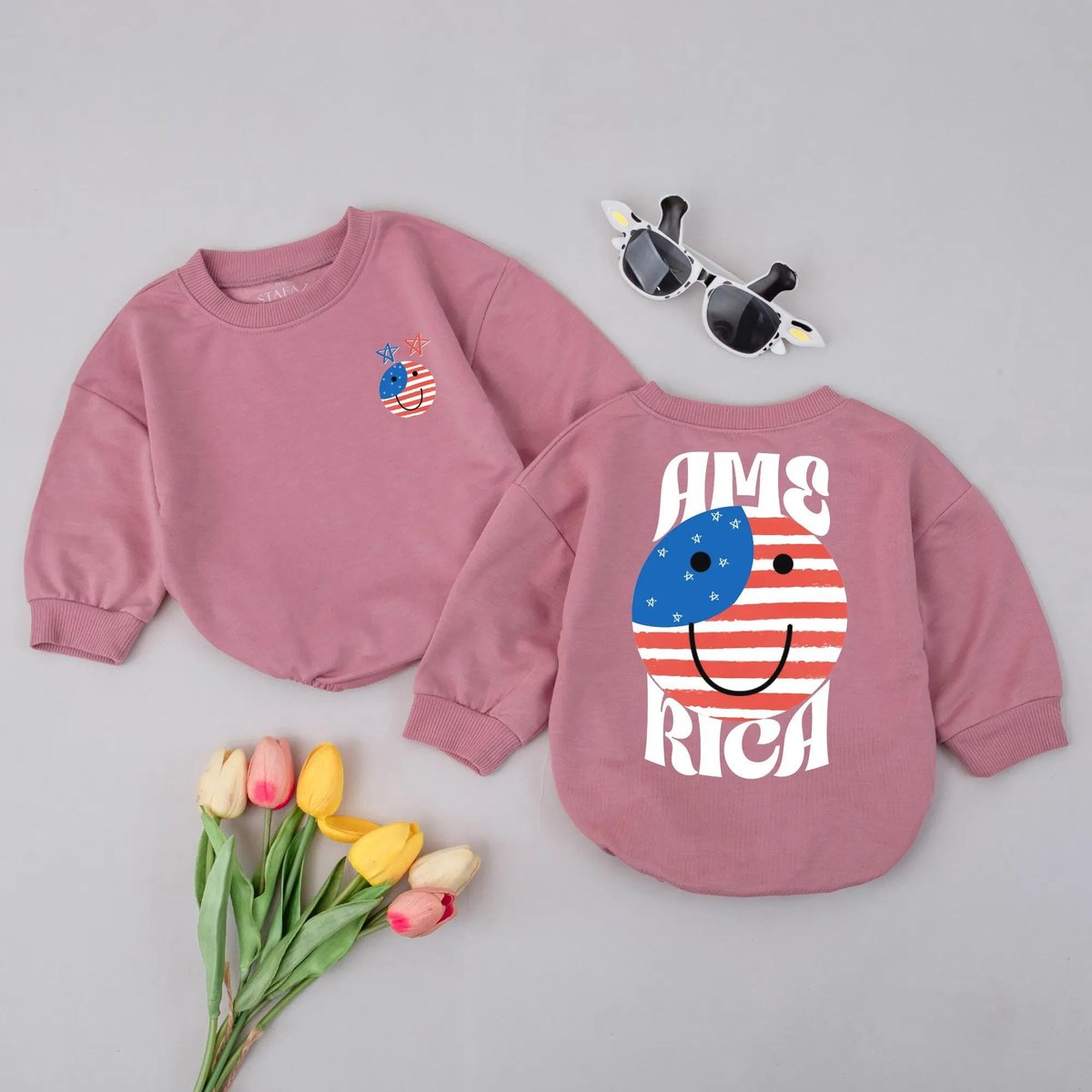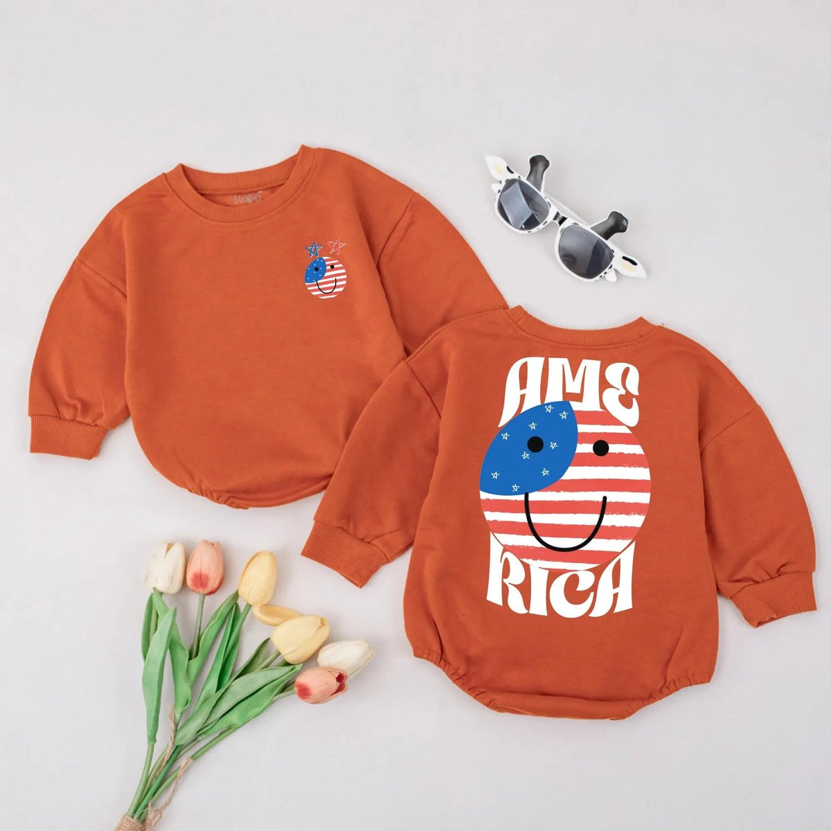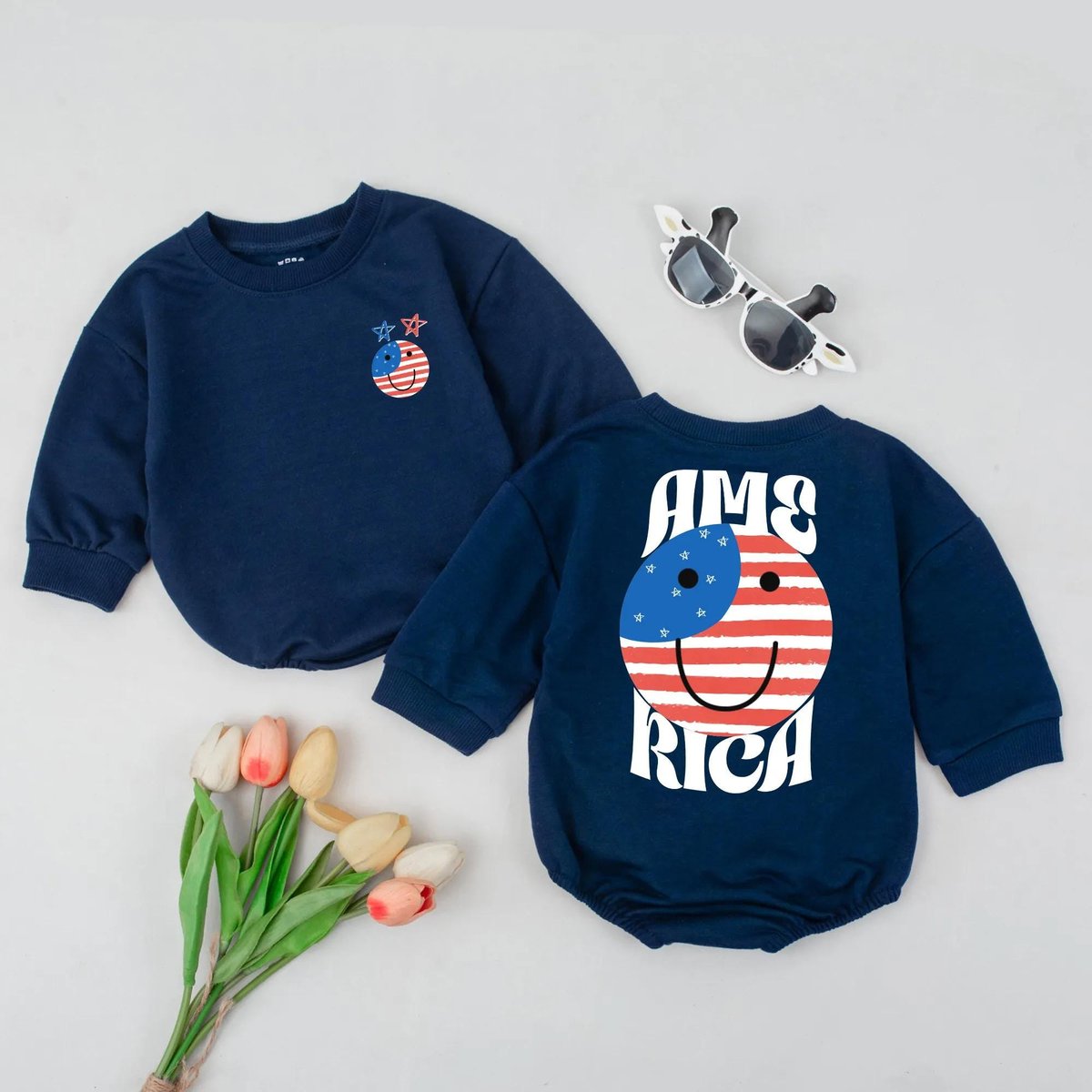 Smiley Face USA Bubble Romper Retro 4th of July Baby Outfit Aesthetic Patriotic Romper Baby Boy Girl 431