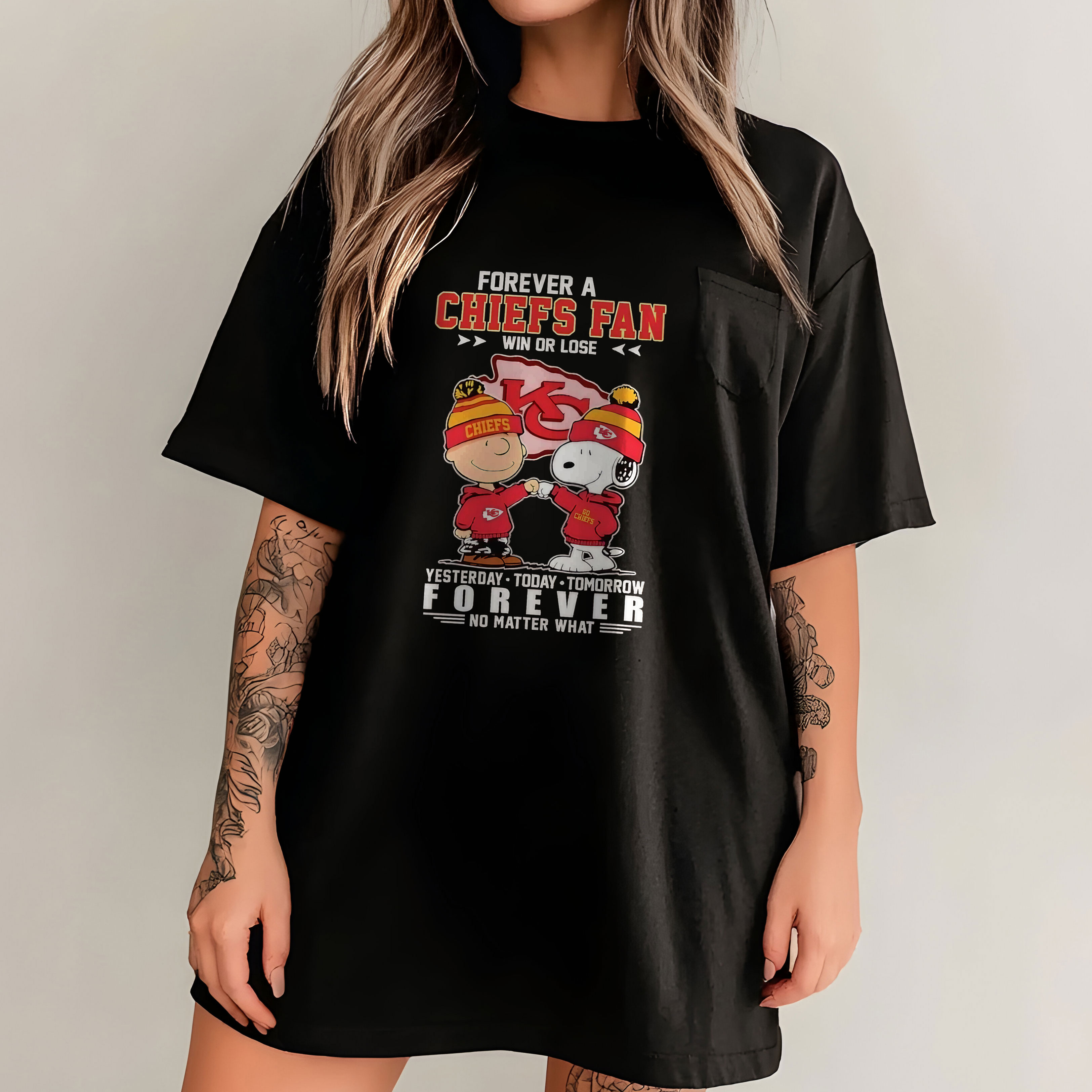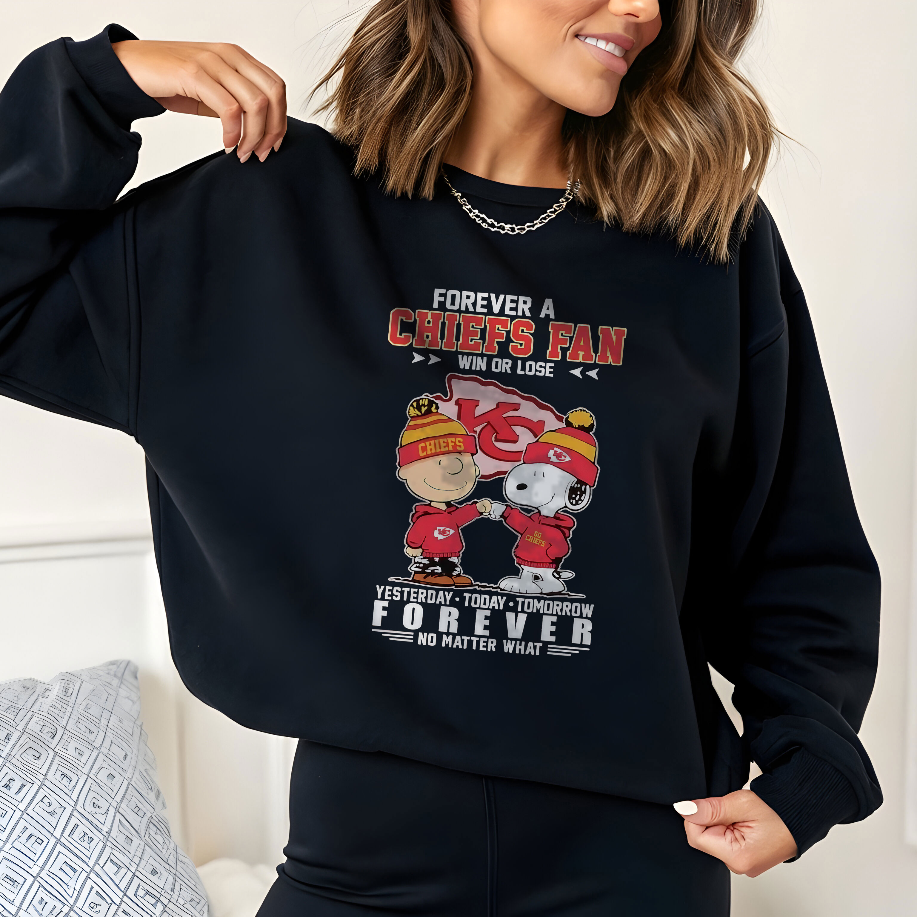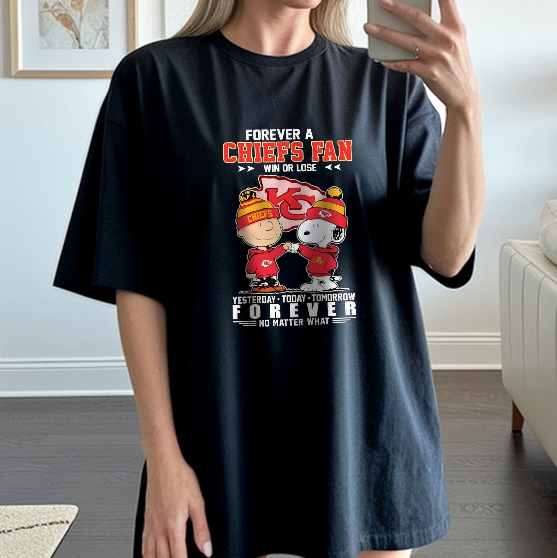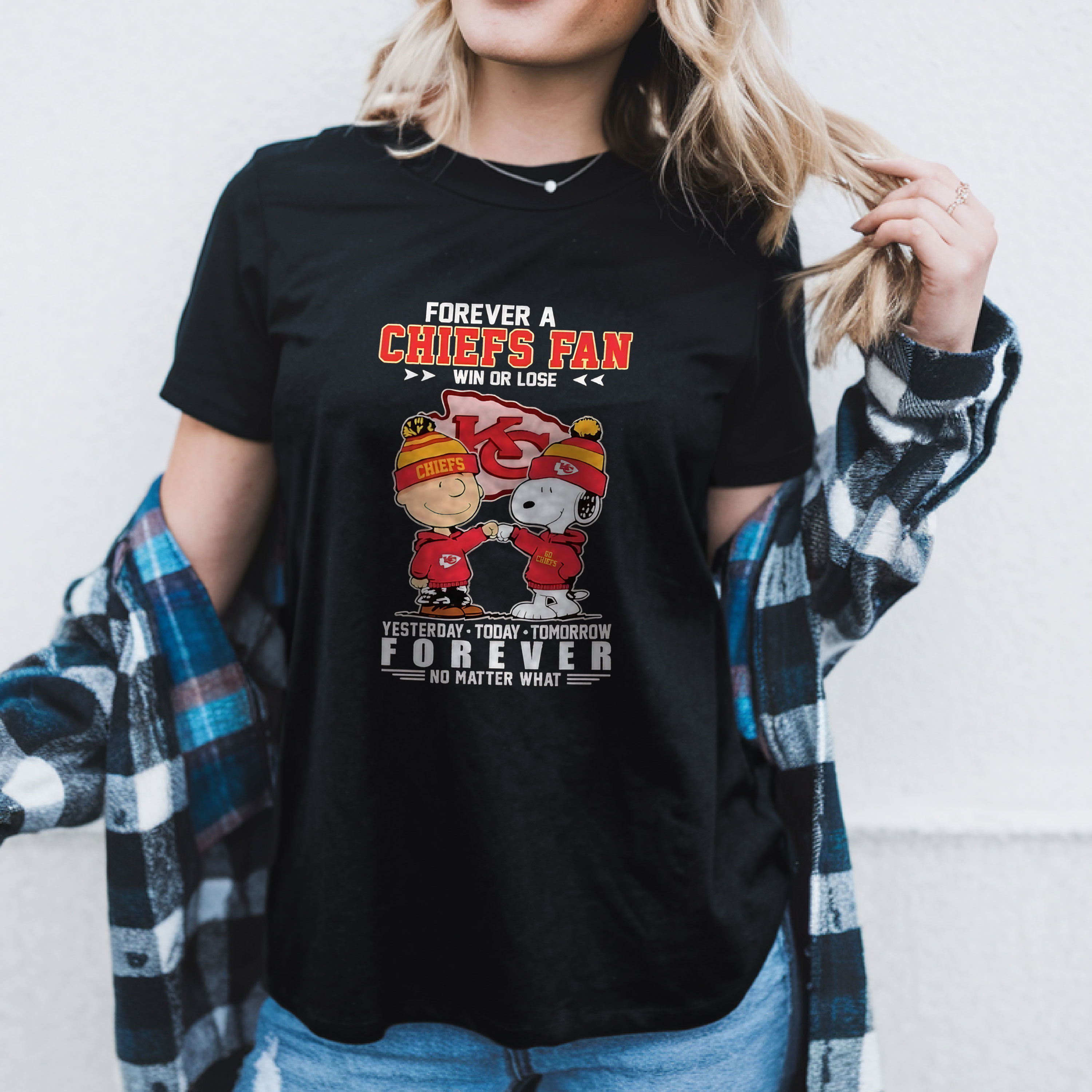 Snoopy Forever a Kansas City Chiefs Fan Win or Lose Yesterday Today Tomorrow Forever No Matter What NFL Football Team Apparel – T-Shirt, Hoodie & Sweatshirt