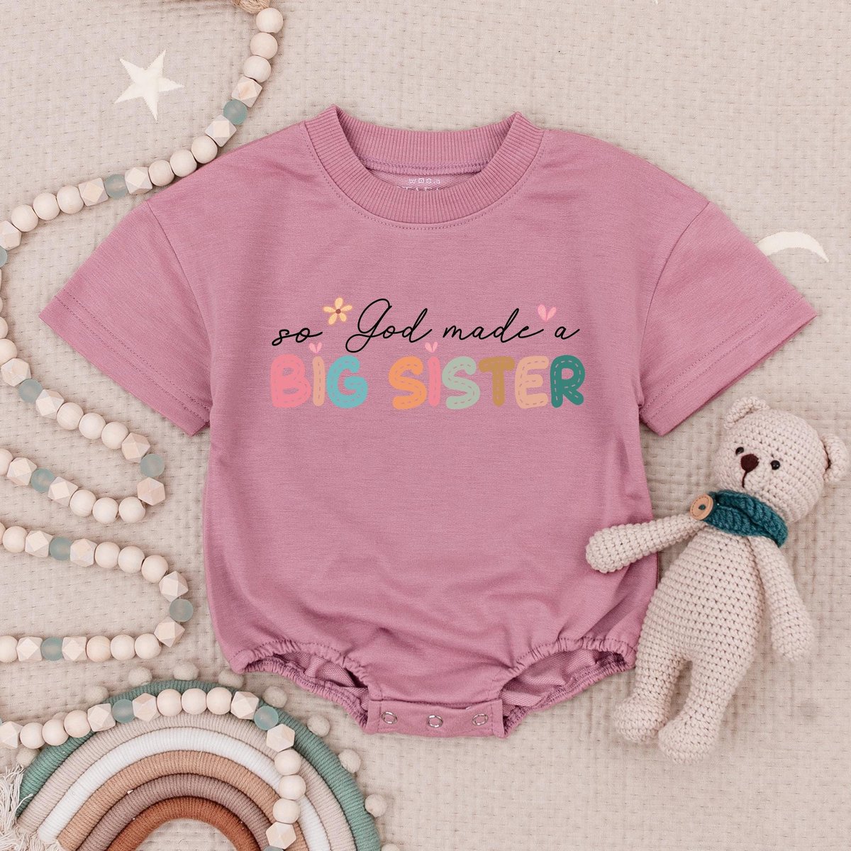 So God Made A Big Sister Baby Romper Baby Announcement Big Sister Gift Pregnancy Reveal Cute Vintage