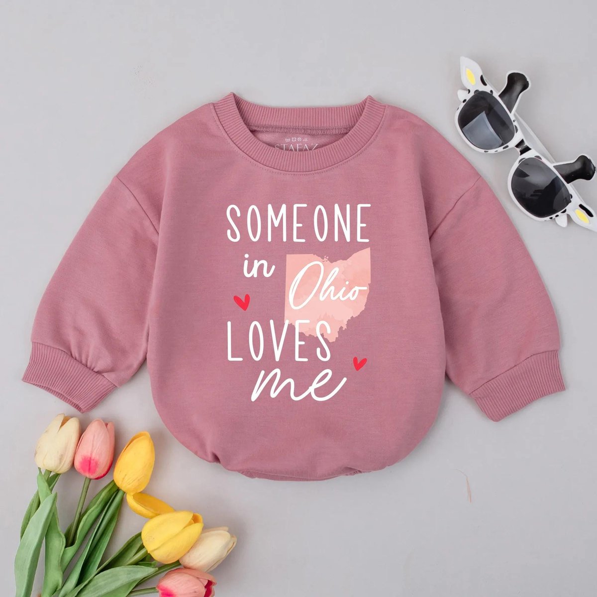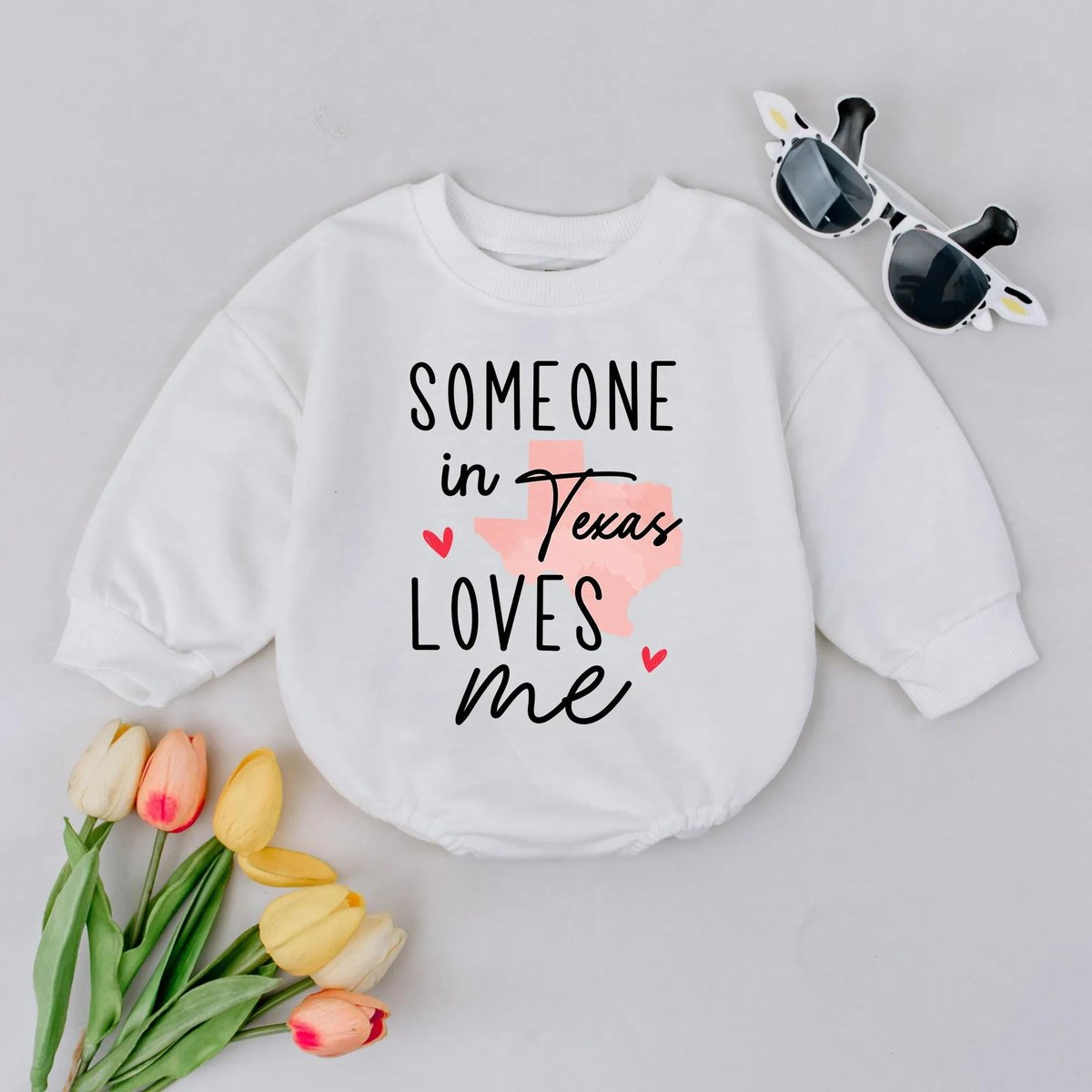 Someone in Texas Loves Me Bubble Romper Custom State Baby Outfit Cute Baby Shower Gift Personalized 436