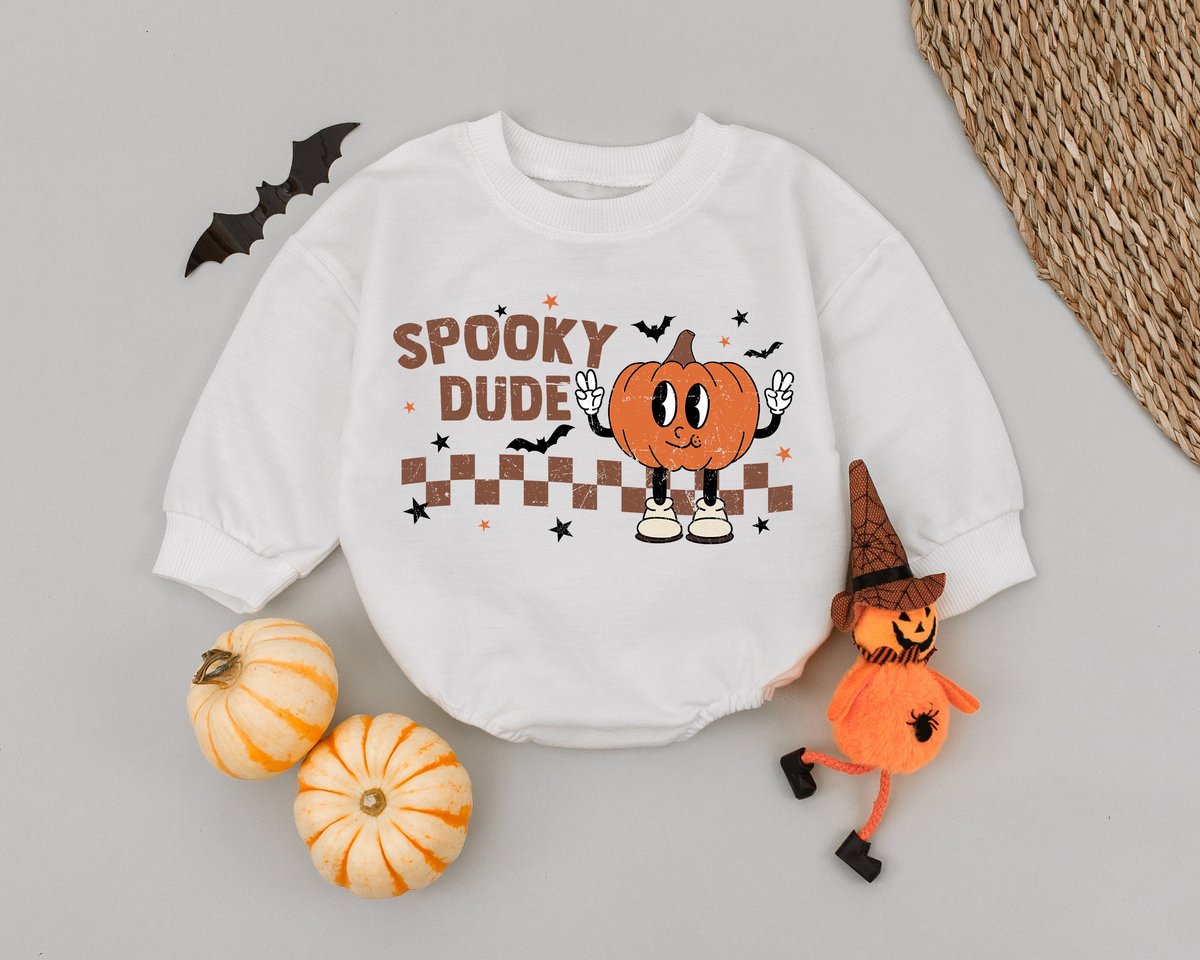 Spooky Dude Baby Romper Halloween Baby Boys Girls Outfit First Halloween Outfit Retro Autumn Romper
