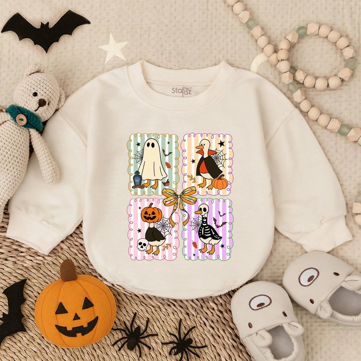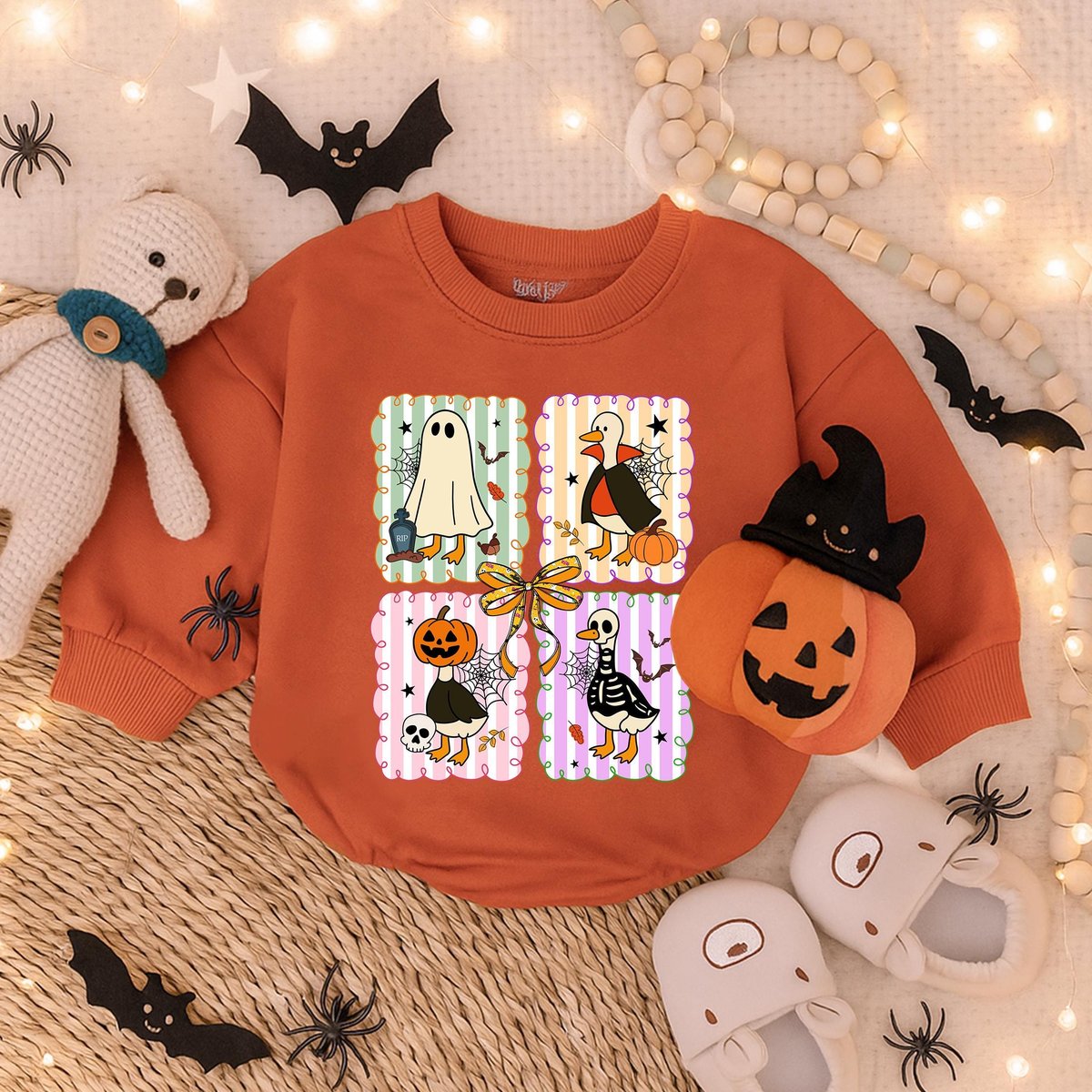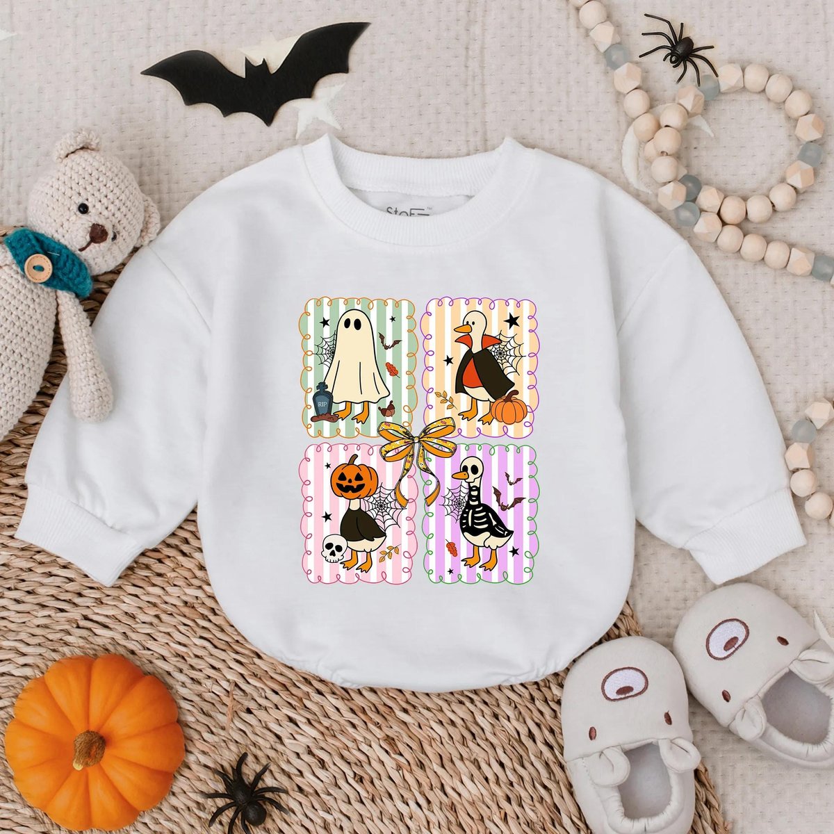 Spooky Goose Baby Romper Sweatshirt Halloween Baby Outfit Funny Goose Costume Fall Baby Clothes Todd