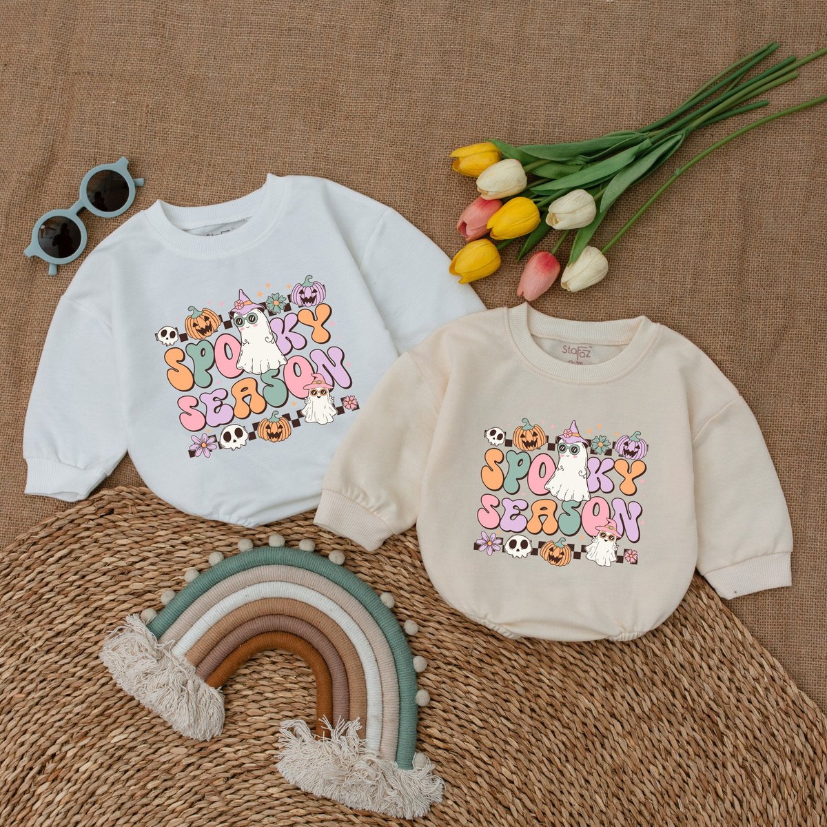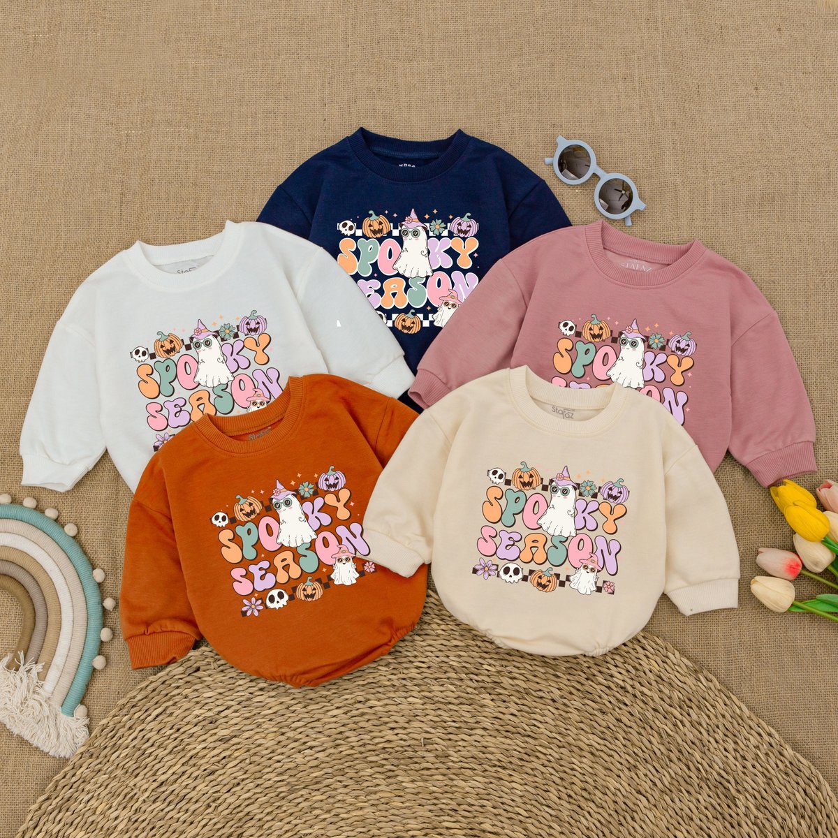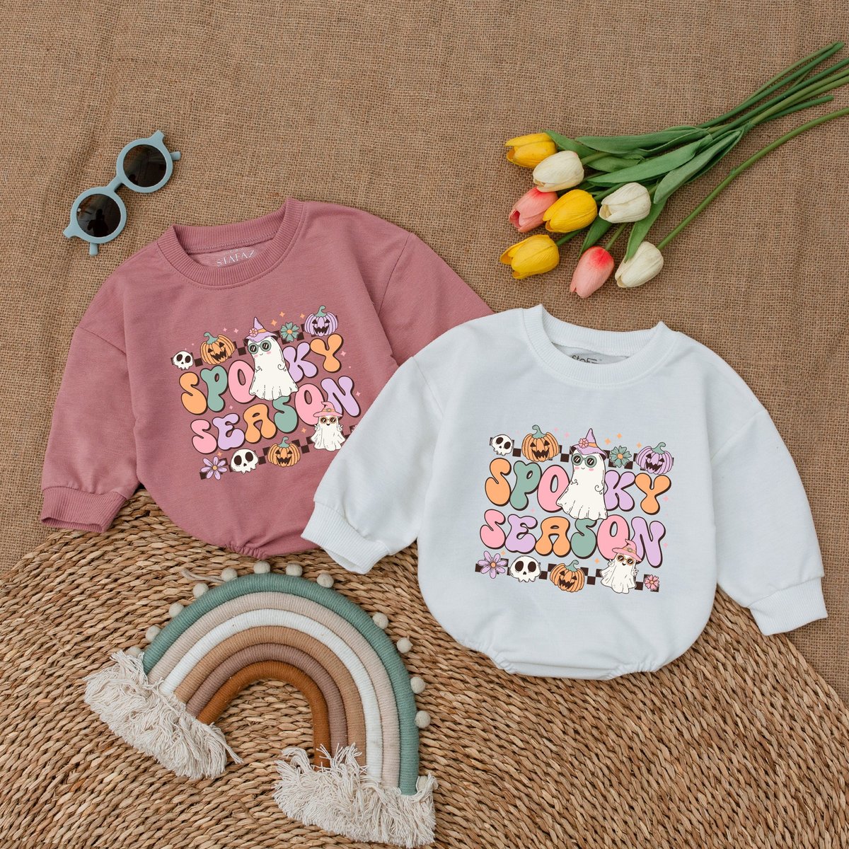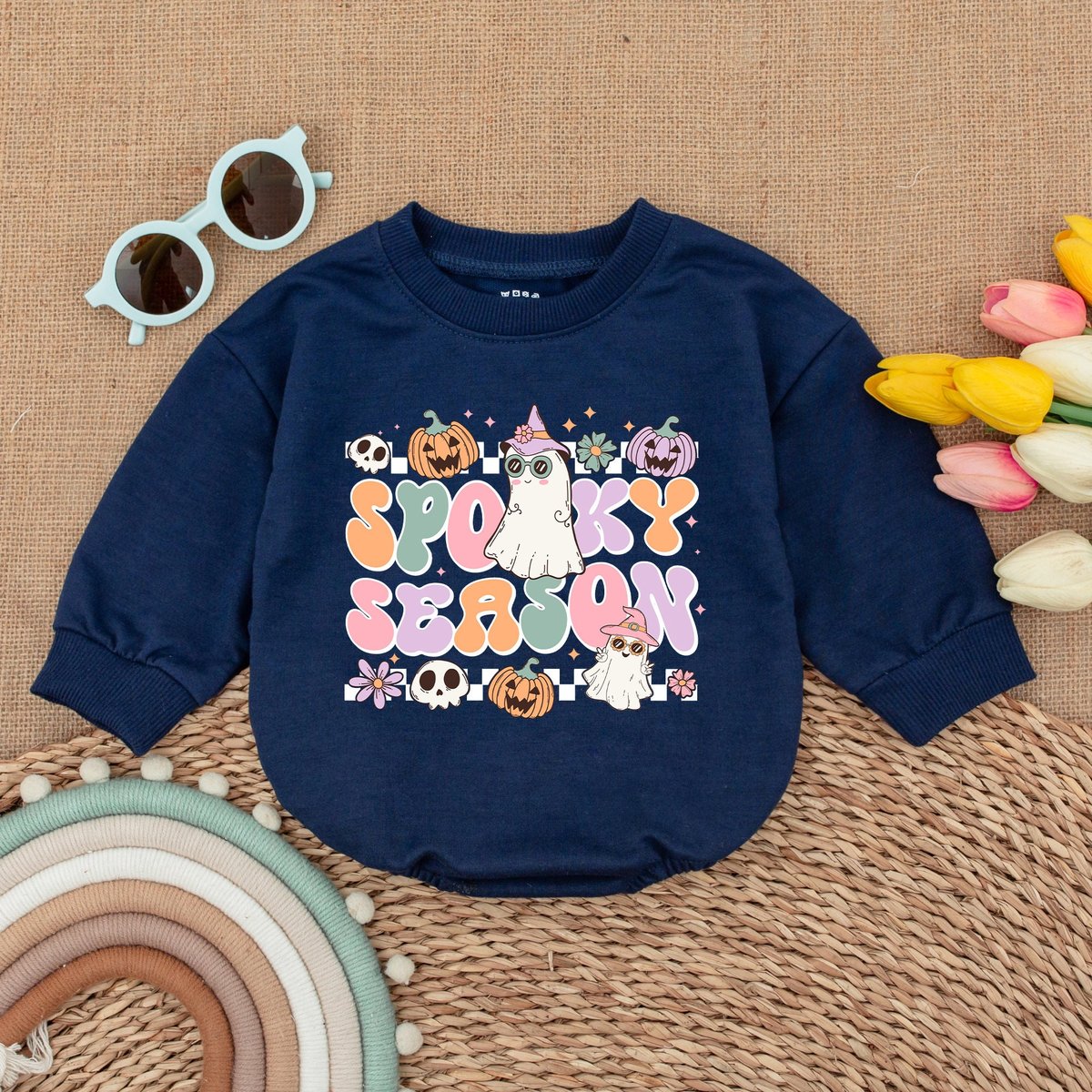 Spooky Season Baby Romper Cute Ghost Halloween Ghost Bodysuit Fall Baby Outfit Halloween Baby Shower 173