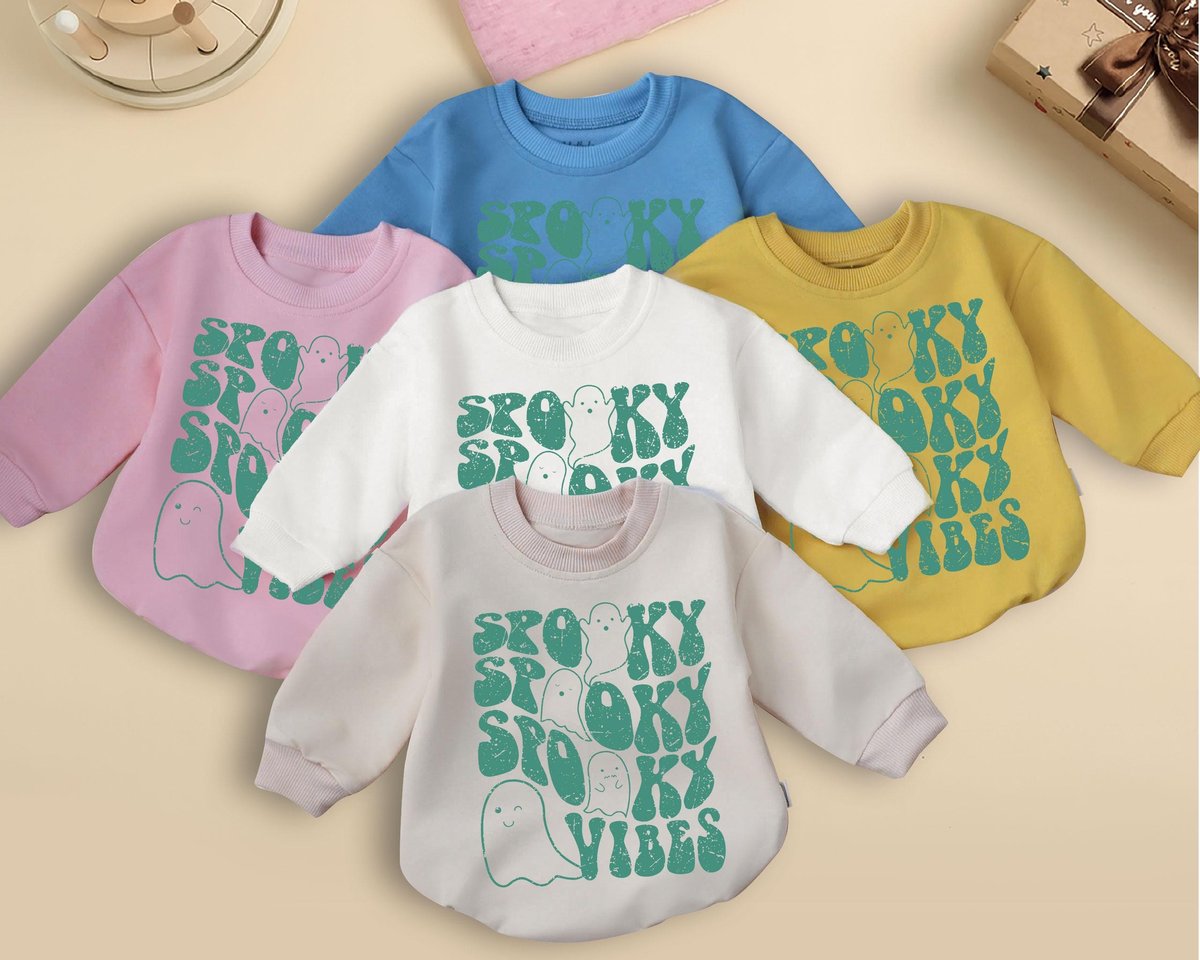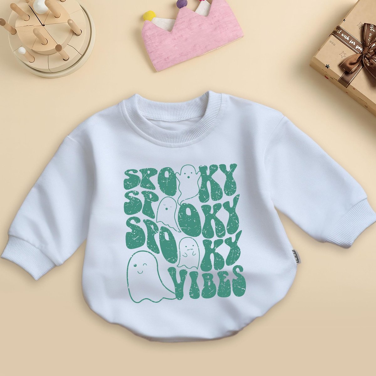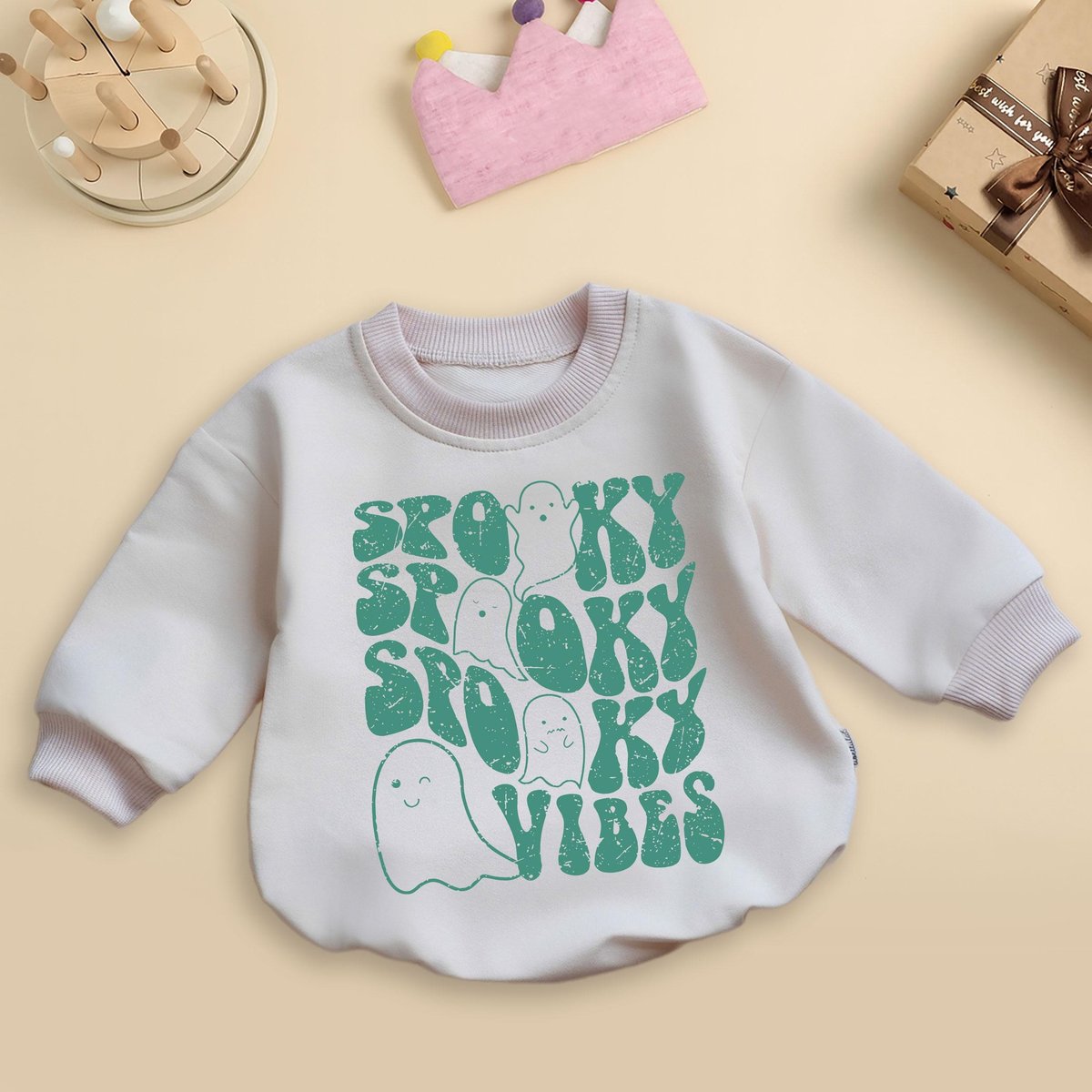 Spooky Vibe Romper Halloween Baby Boys Girls Outfit Halloween Costume Vintage Pumpkin First Hallowee 436