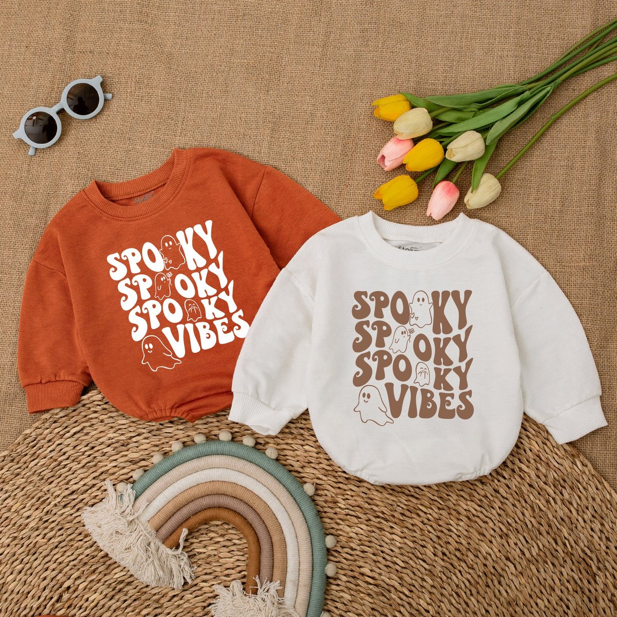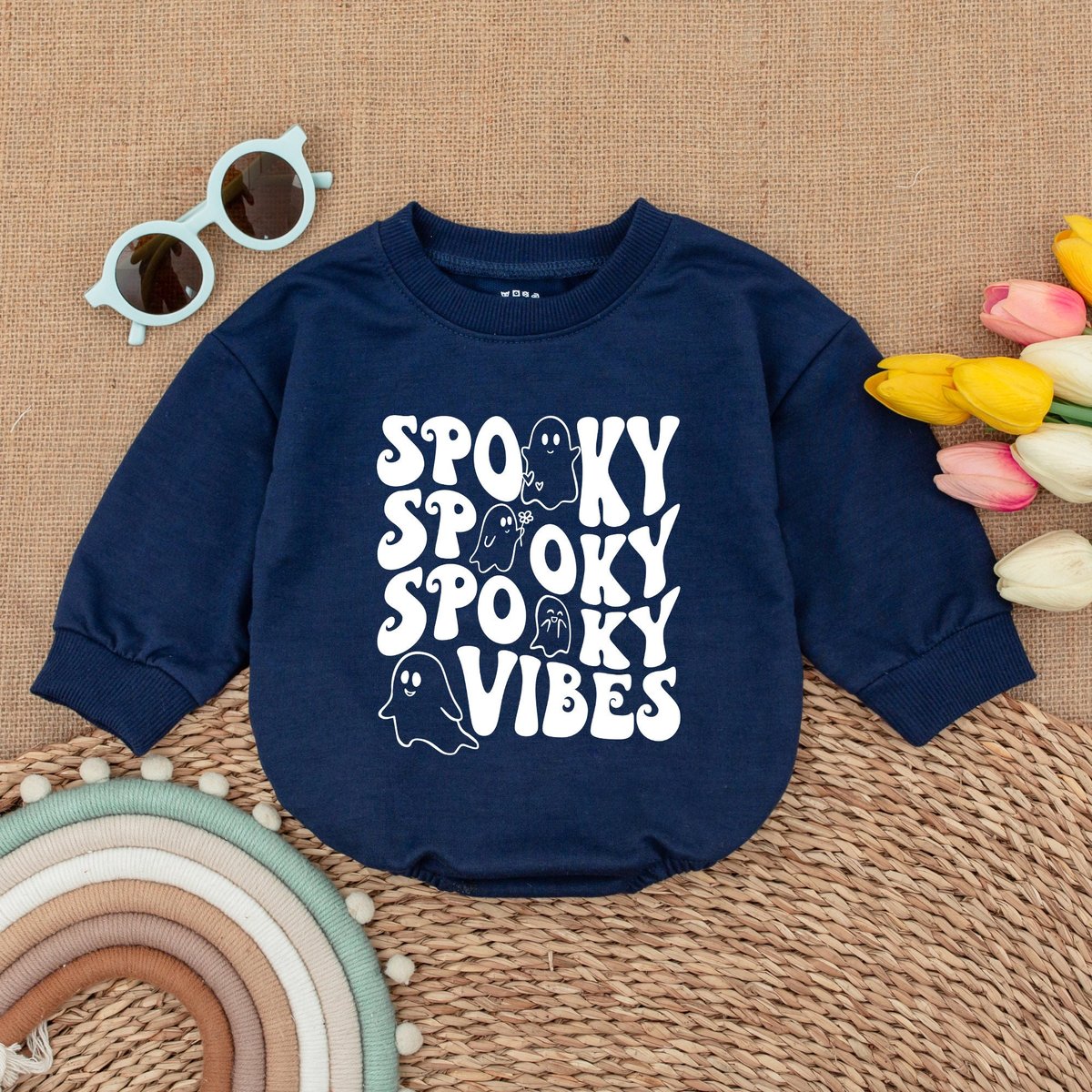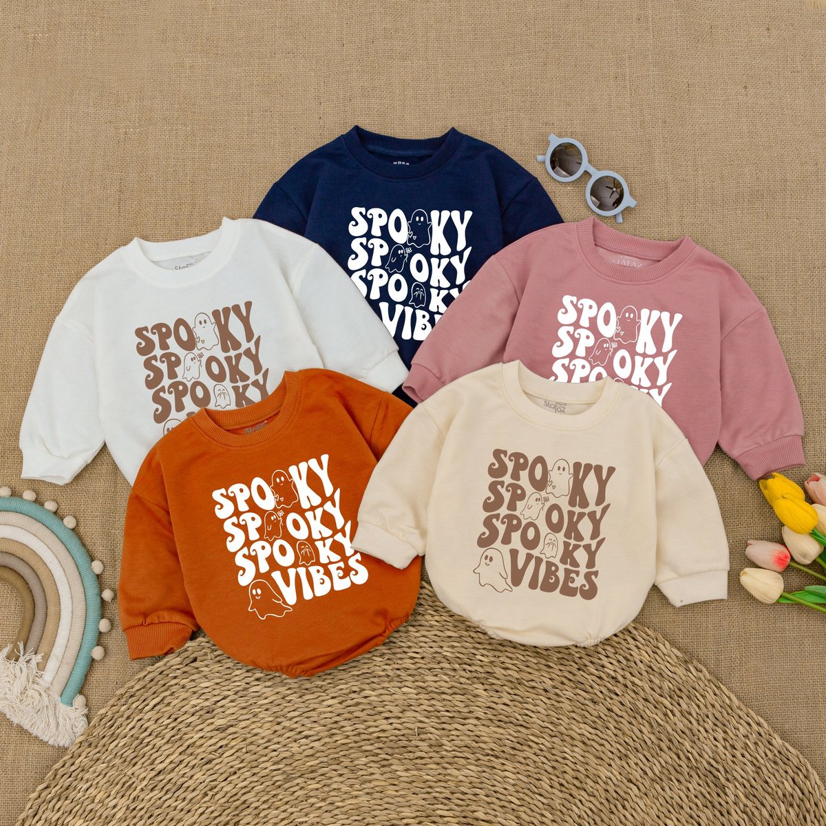 Spooky Vibes Baby Romper Retro Ghost Halloween Ghost Bodysuit Fall Baby Outfit Halloween Baby Shower 173