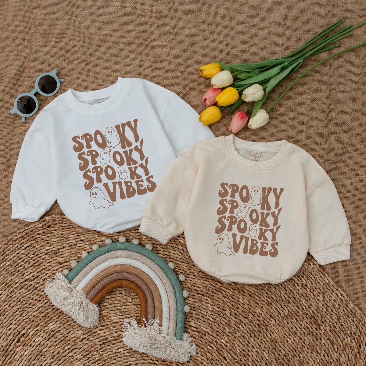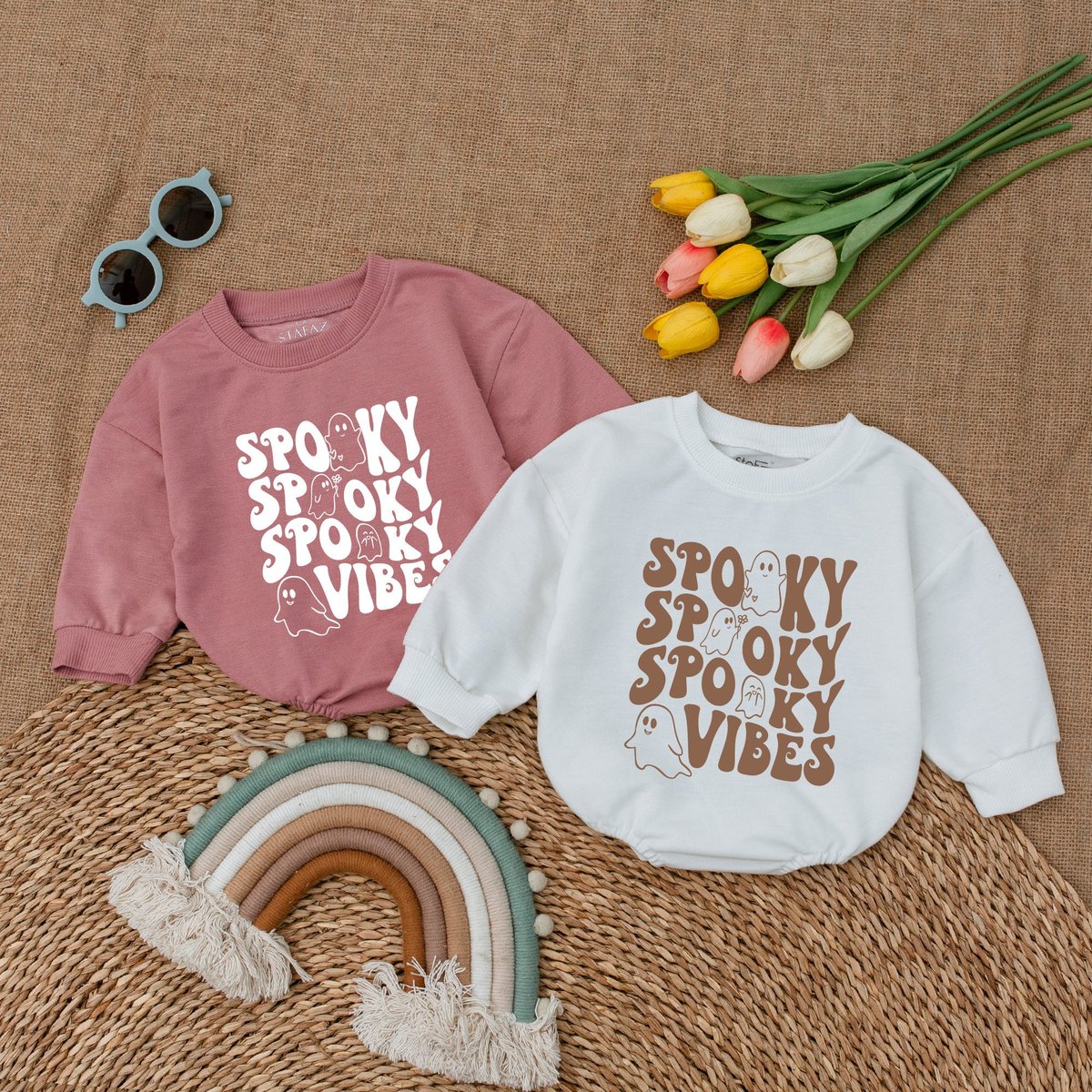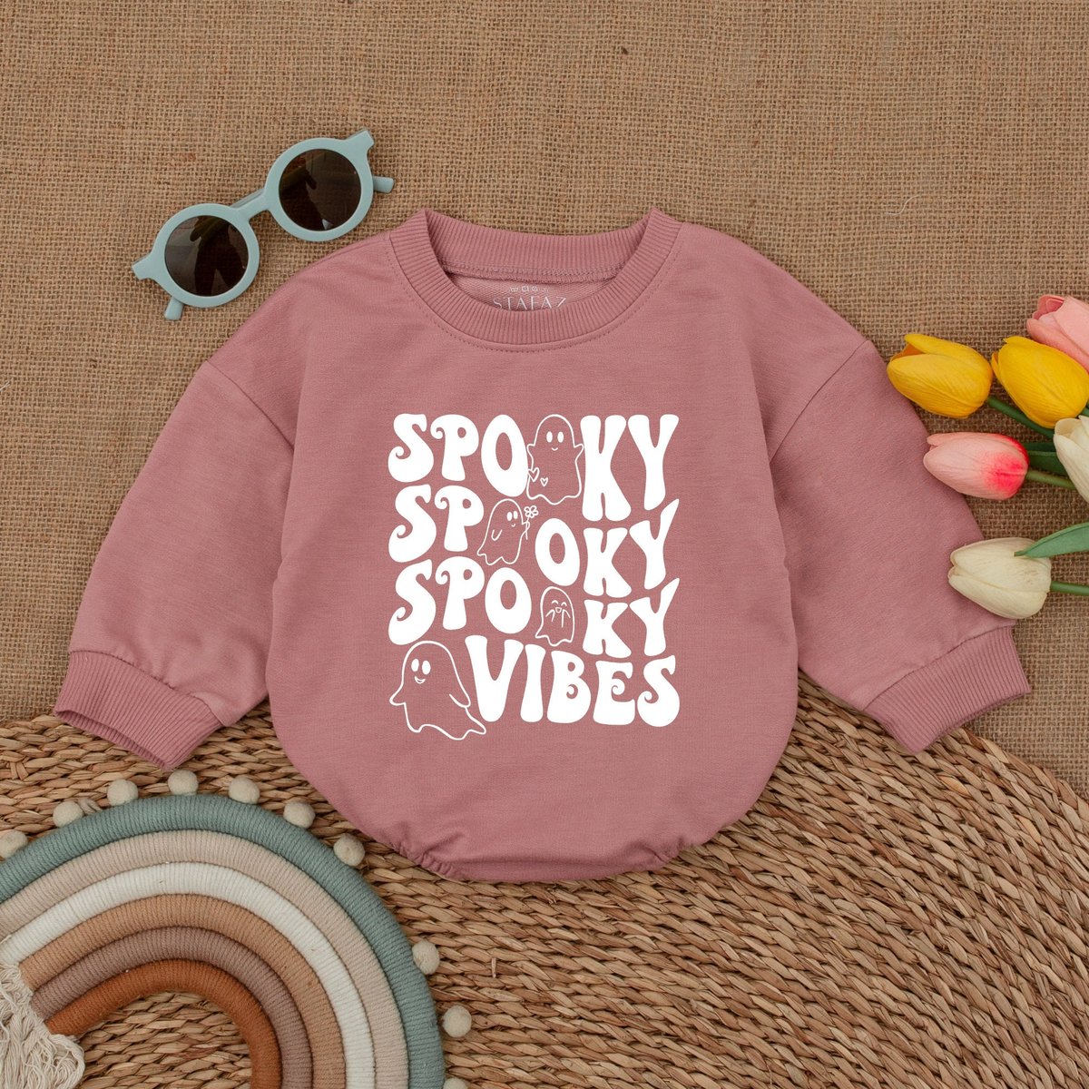 Spooky Vibes Baby Romper Retro Ghost Halloween Ghost Bodysuit Fall Baby Outfit Halloween Baby Shower 173