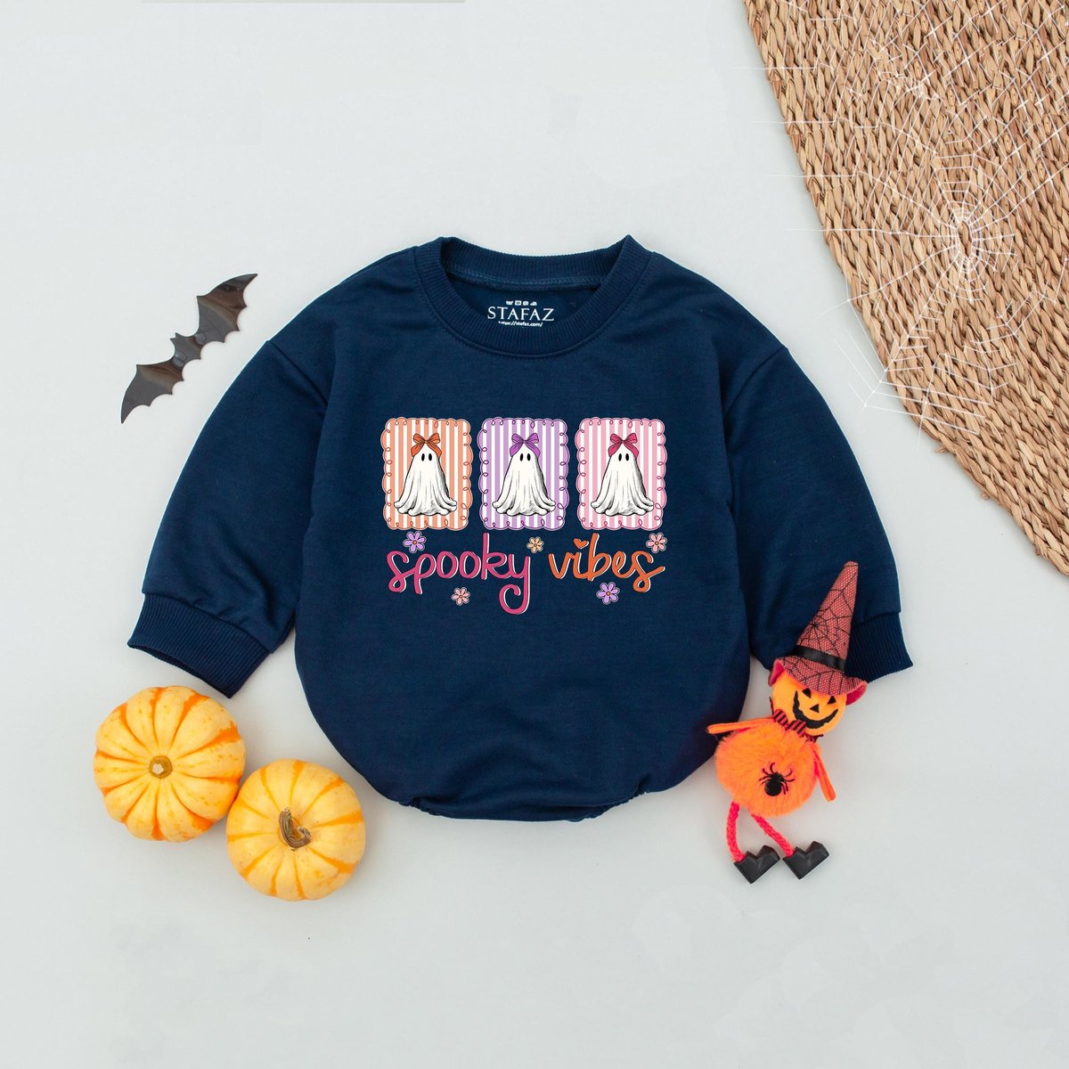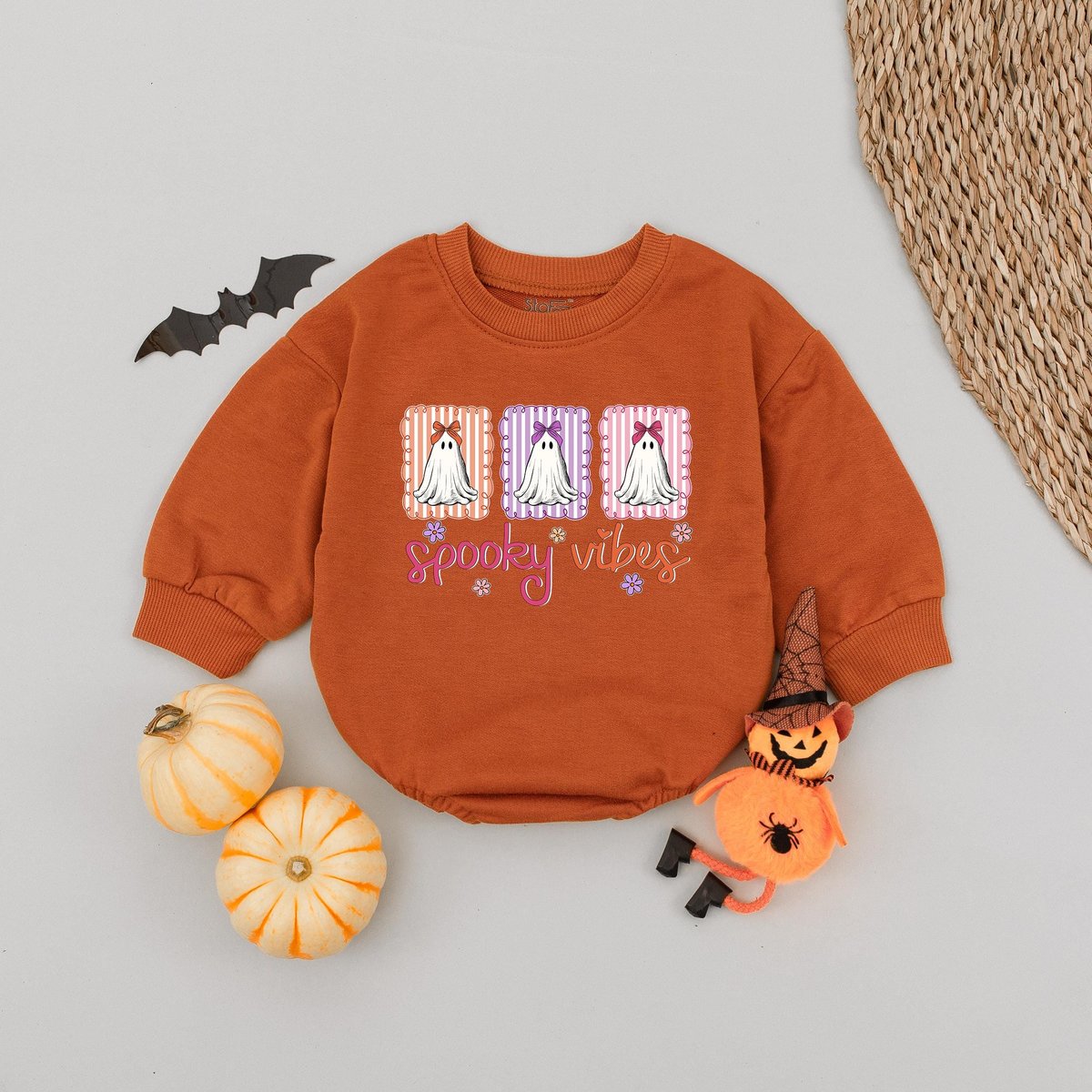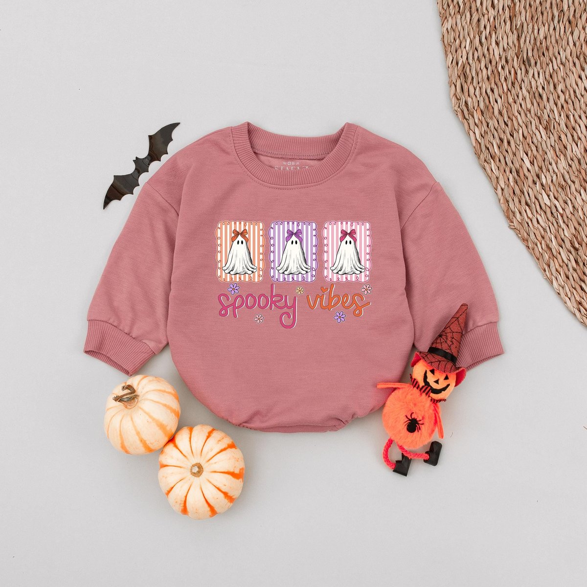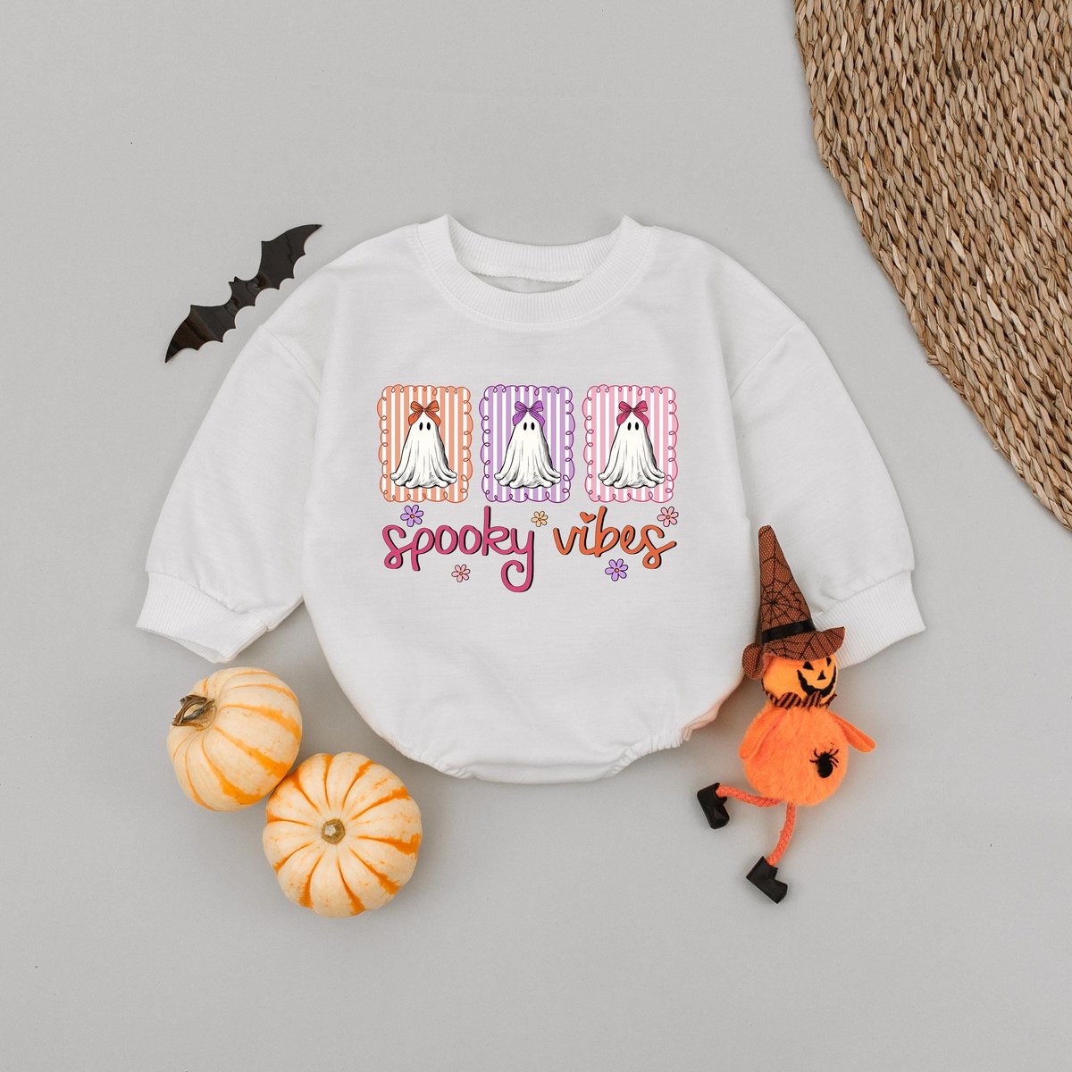 Spooky Vibes Ghost Bubble Romper Cute Halloween Bow Baby Romper Spooky Vibes Pastel Girly Ghost Baby