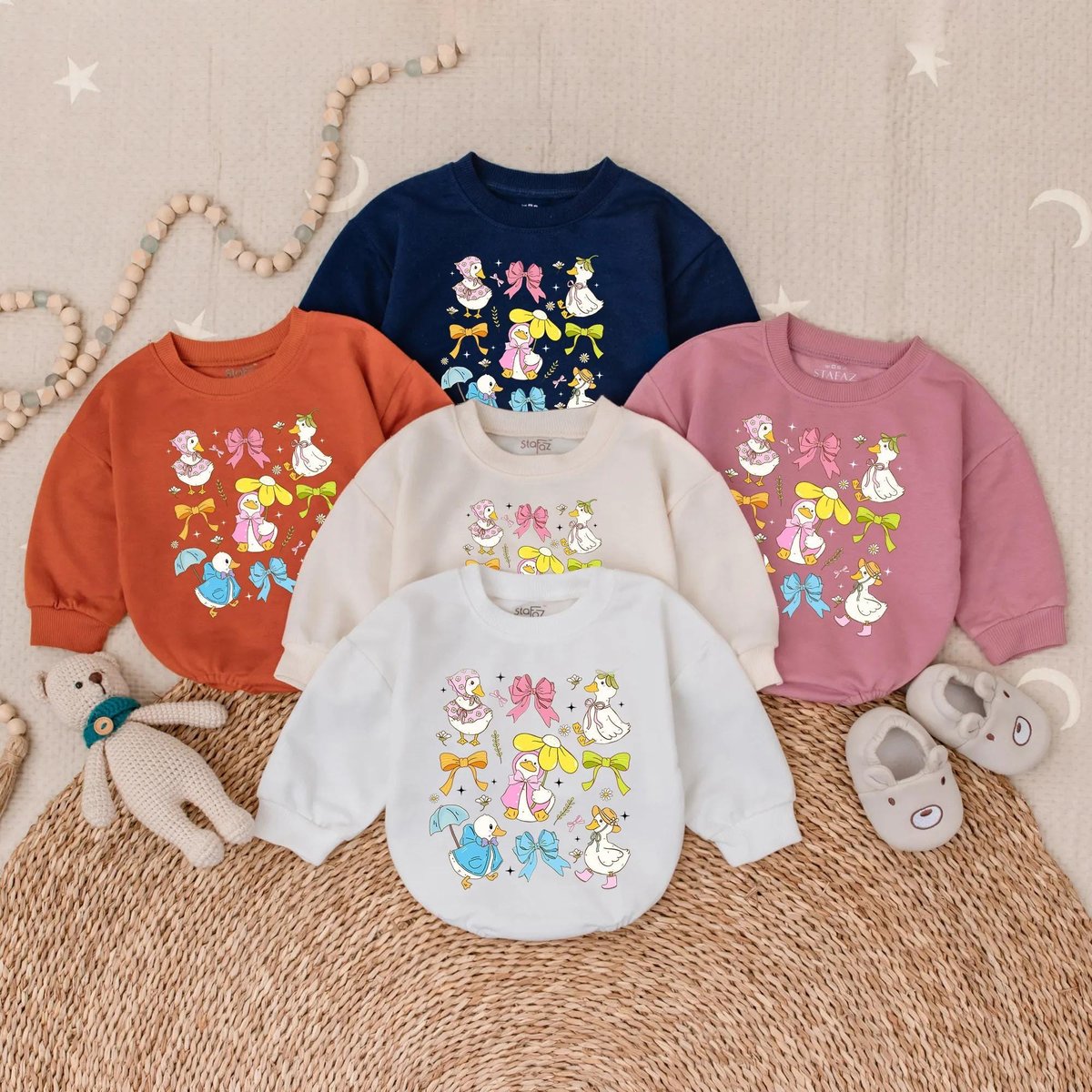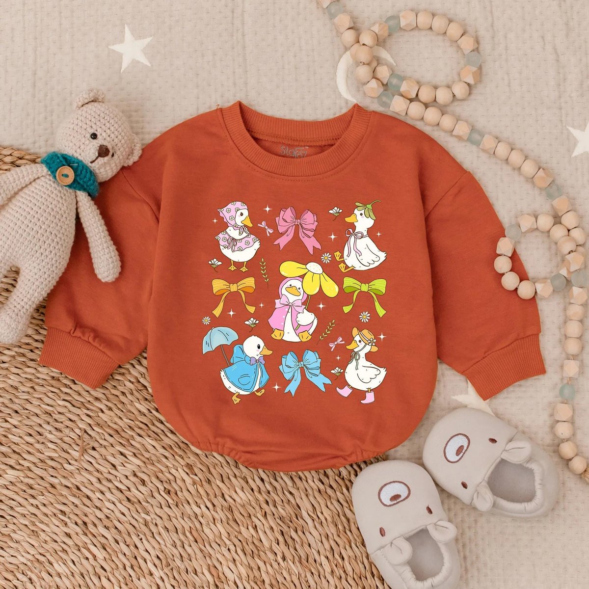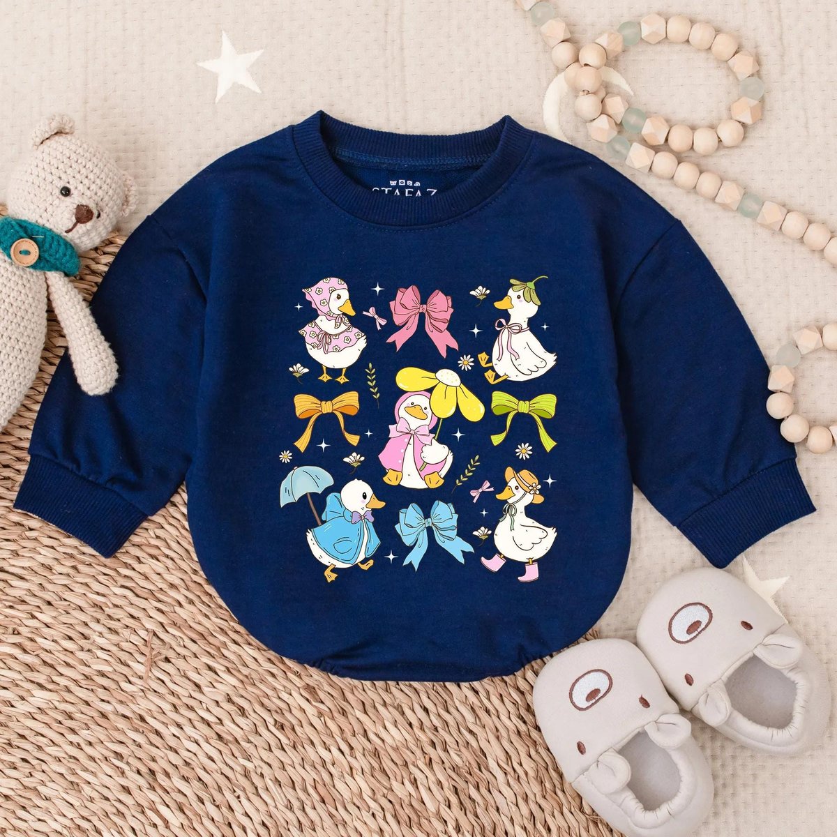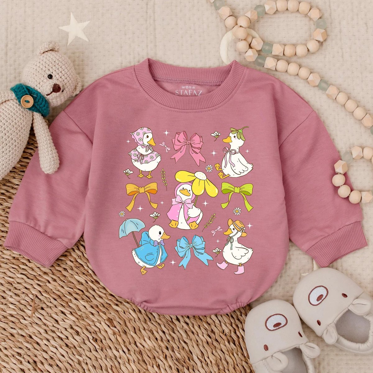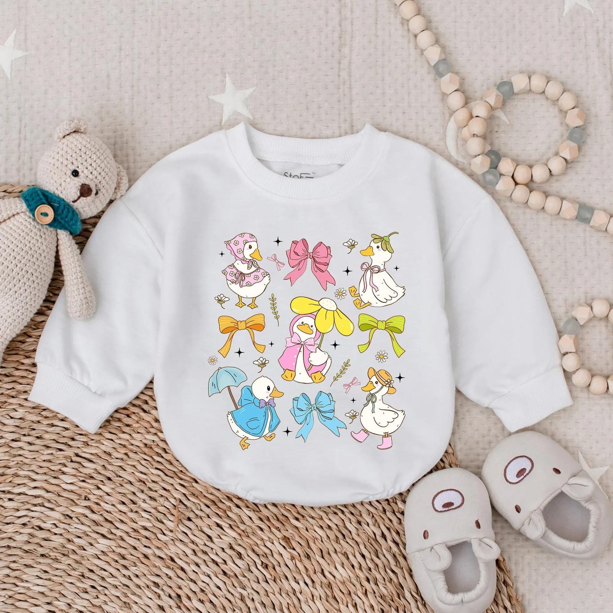 Spring Floral Goose Bubble Romper for Baby Girl Cute Farm Animal Outfit Easter Baby Clothes Ruffle I