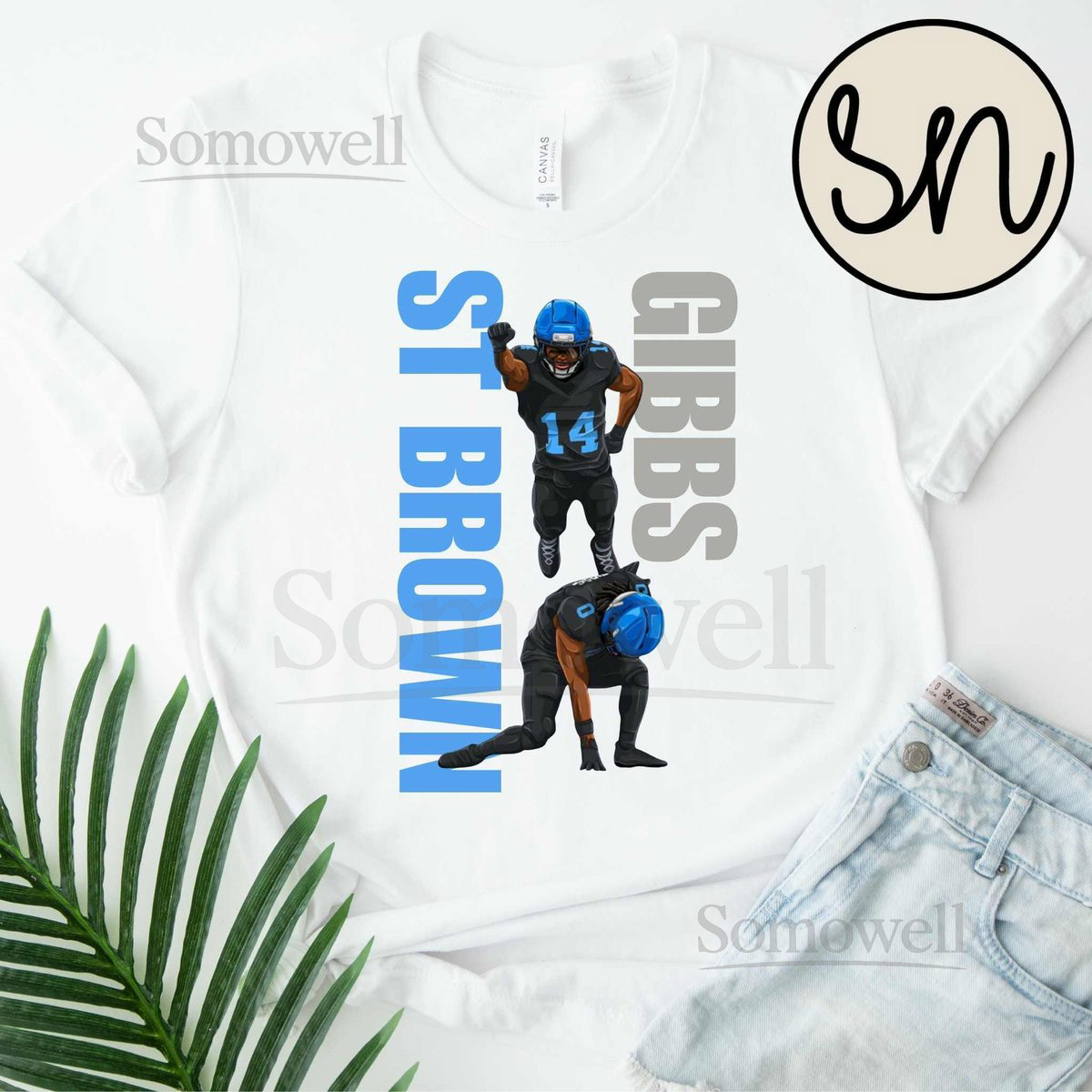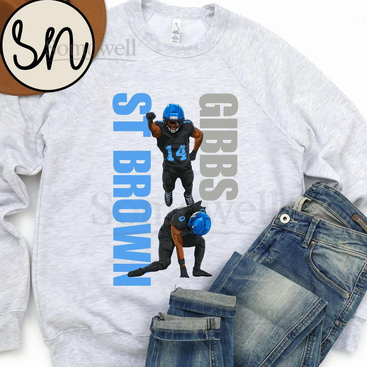 St Brown Gibbs Detroit Lions Football- Tee- Crewneck- Hoodie – Youth and Adult Sizing_653