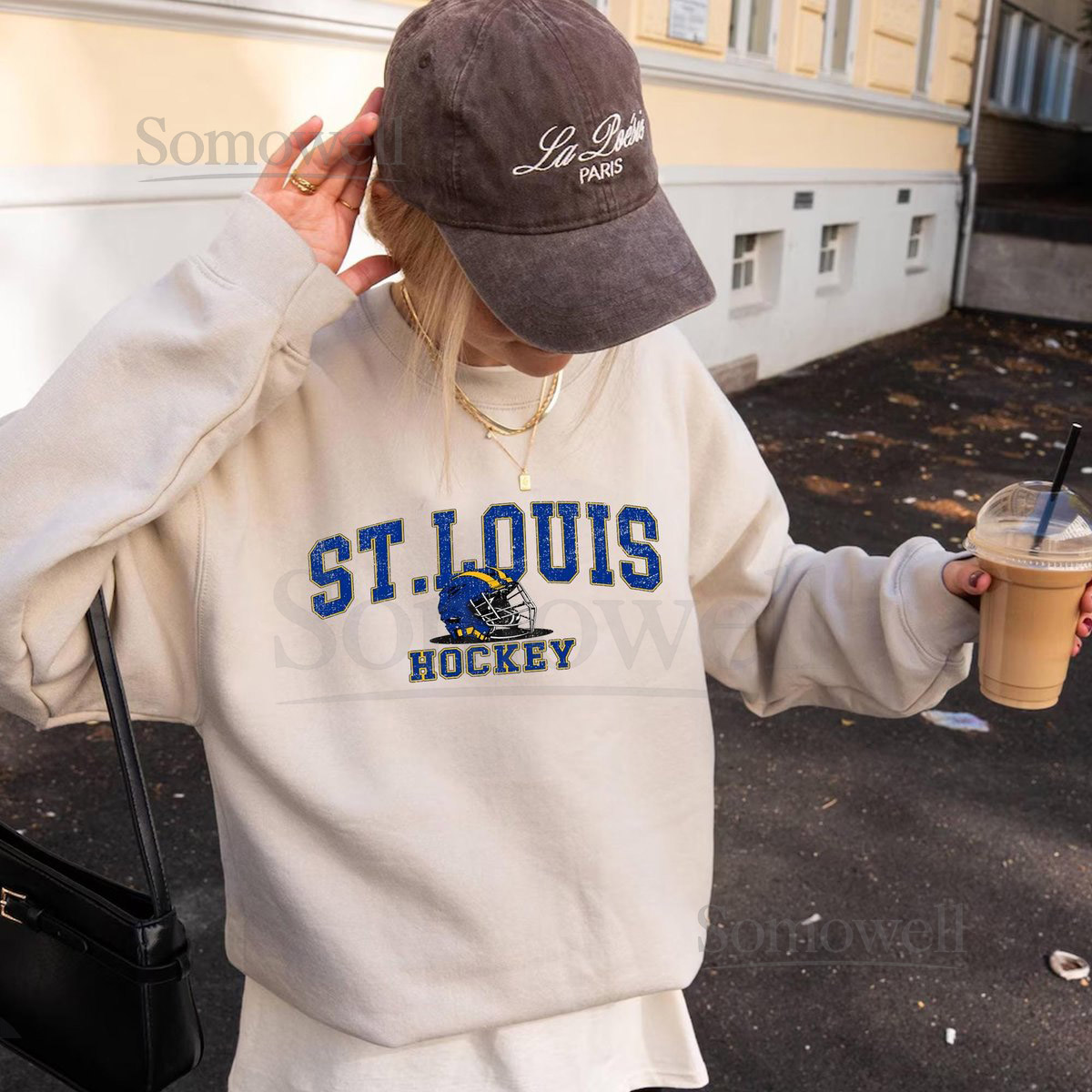 St. Louis Hockey Sweatshirt T-Shirt Vintage Game Day Crewneck Retro Unisex Pullover Classic Fan Everyday Wear_531