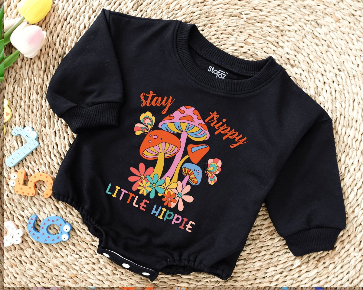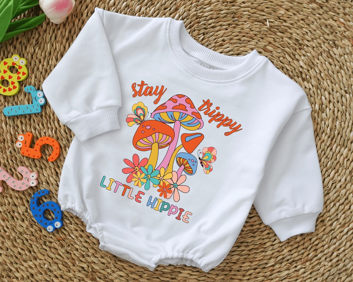 Stay Trippie Little Hippie Kids Baby Romper Retro Natural Infant Romper Toddler Youth SweatshirtHipp