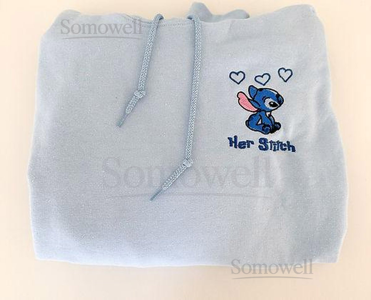 Stitch And Angel Embroidered Sweatshirt Disney Couple Cartoon Shirt Her Stitch His Angel Couple Embroidered Hoodies Anniversary Gift_153