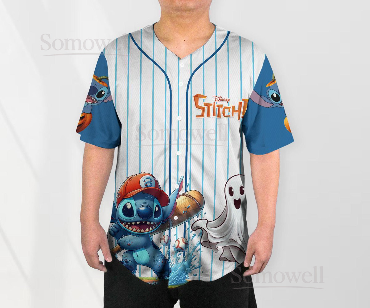 Stitch Baseball Jersey Ghost Halloween Baseball Shirt Halloween Jersey Shirt Gift