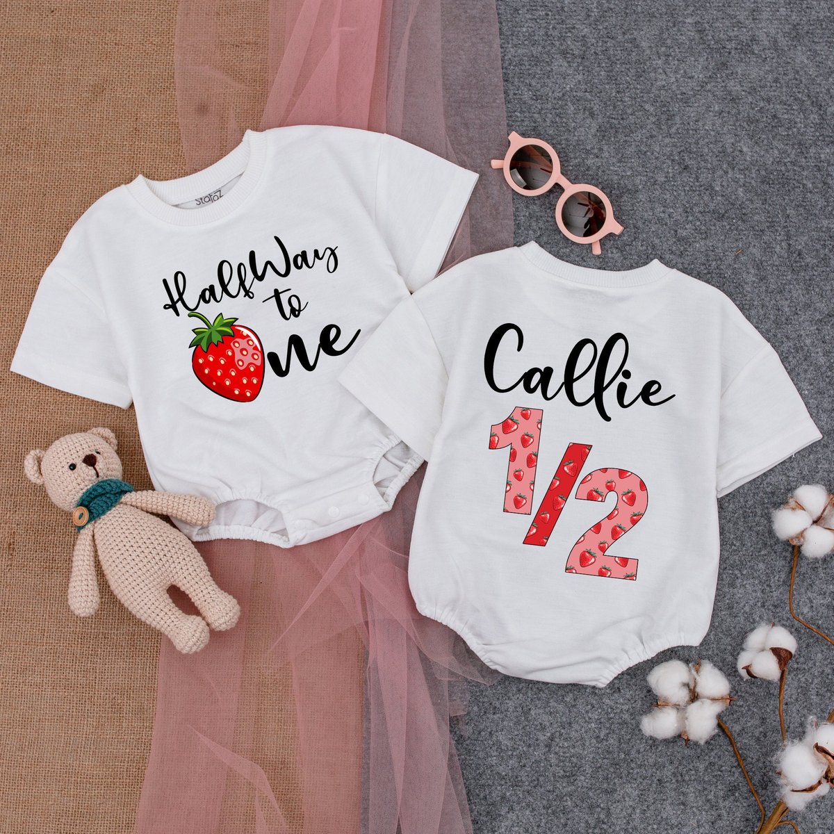 Strawberry Halfway to One Romper12 Berry Birthday Bodysuit Girls Boho Birthday Shirt Cute Personaliz 177