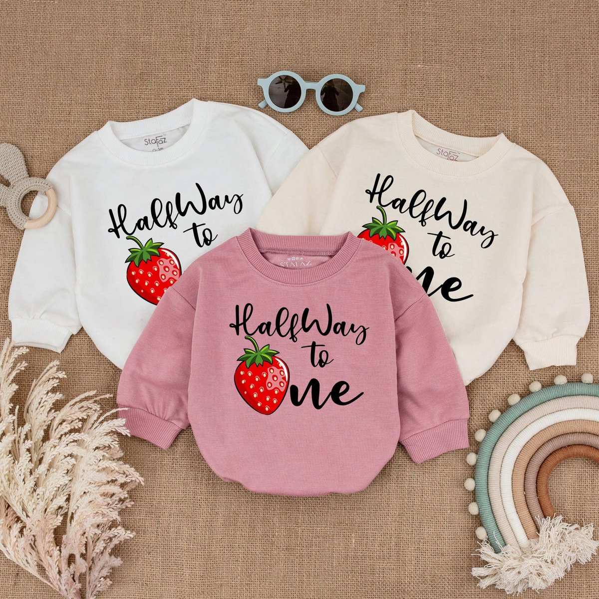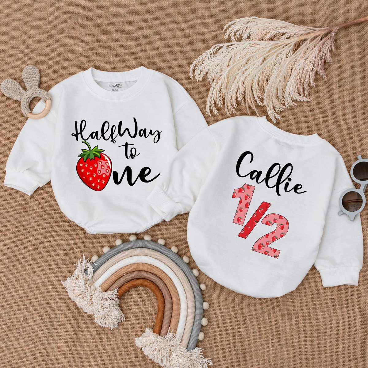 Strawberry Halfway to One Romper12 Berry Birthday Bodysuit Girls Boho Birthday ShirtCute Personalize 179