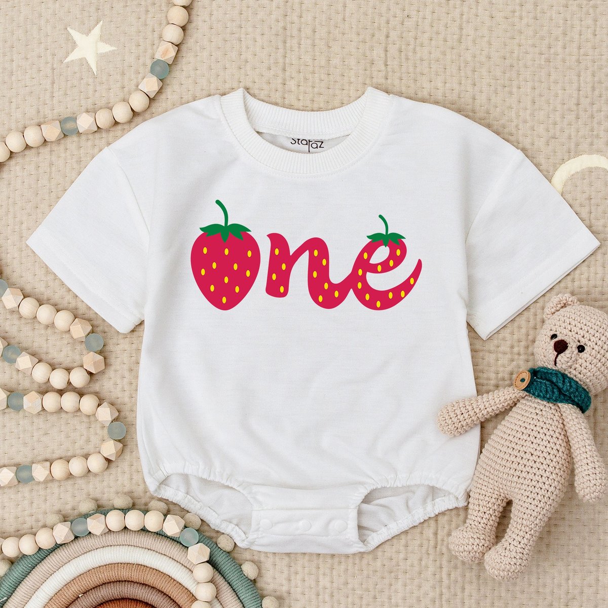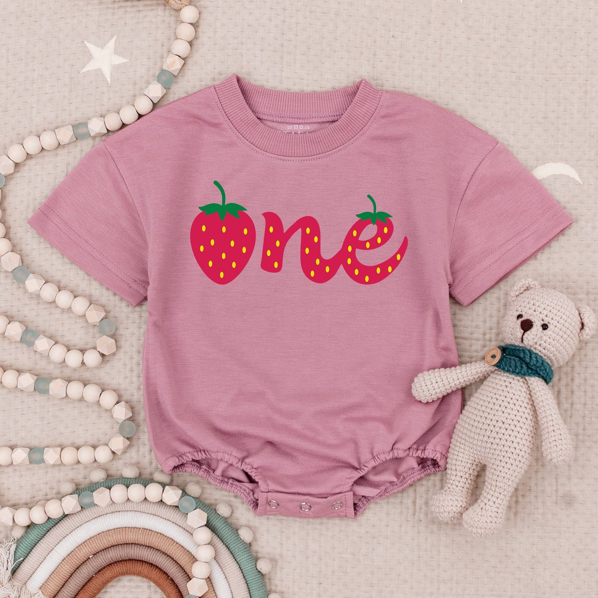 Strawberry One Baby Romper Berry First Birthday Romper Strawberry Baby OutfitPersonalized 1st Birthd