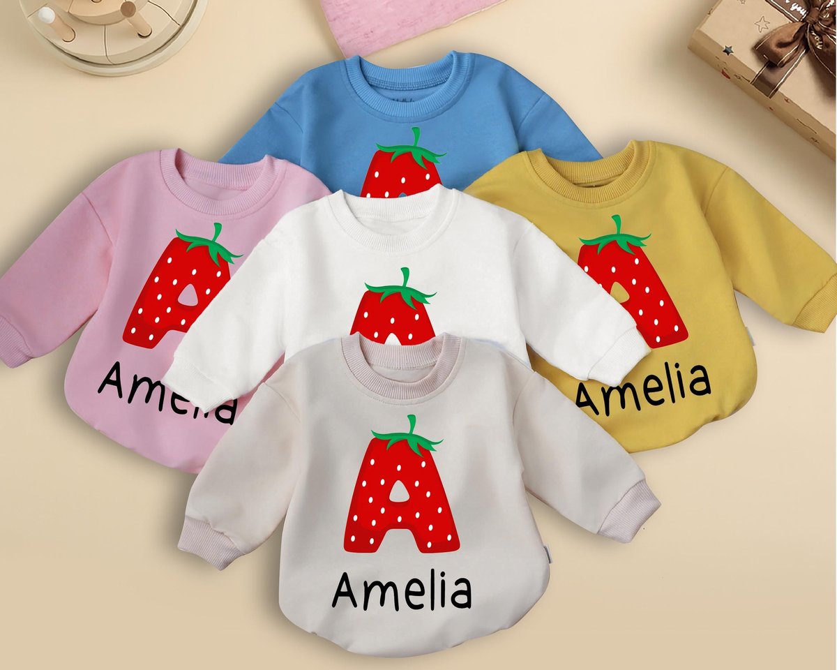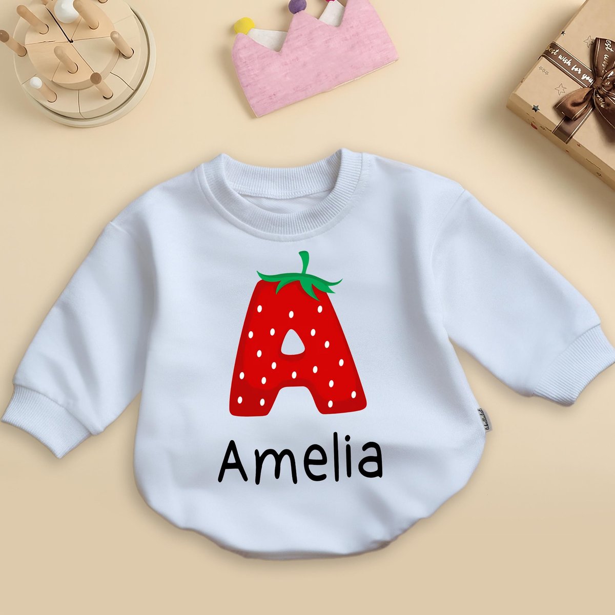Strawberry Personalized Name Baby Romper Cute Fruit Initial Name Girls Baby Bodysuit Gift For Girl B 436