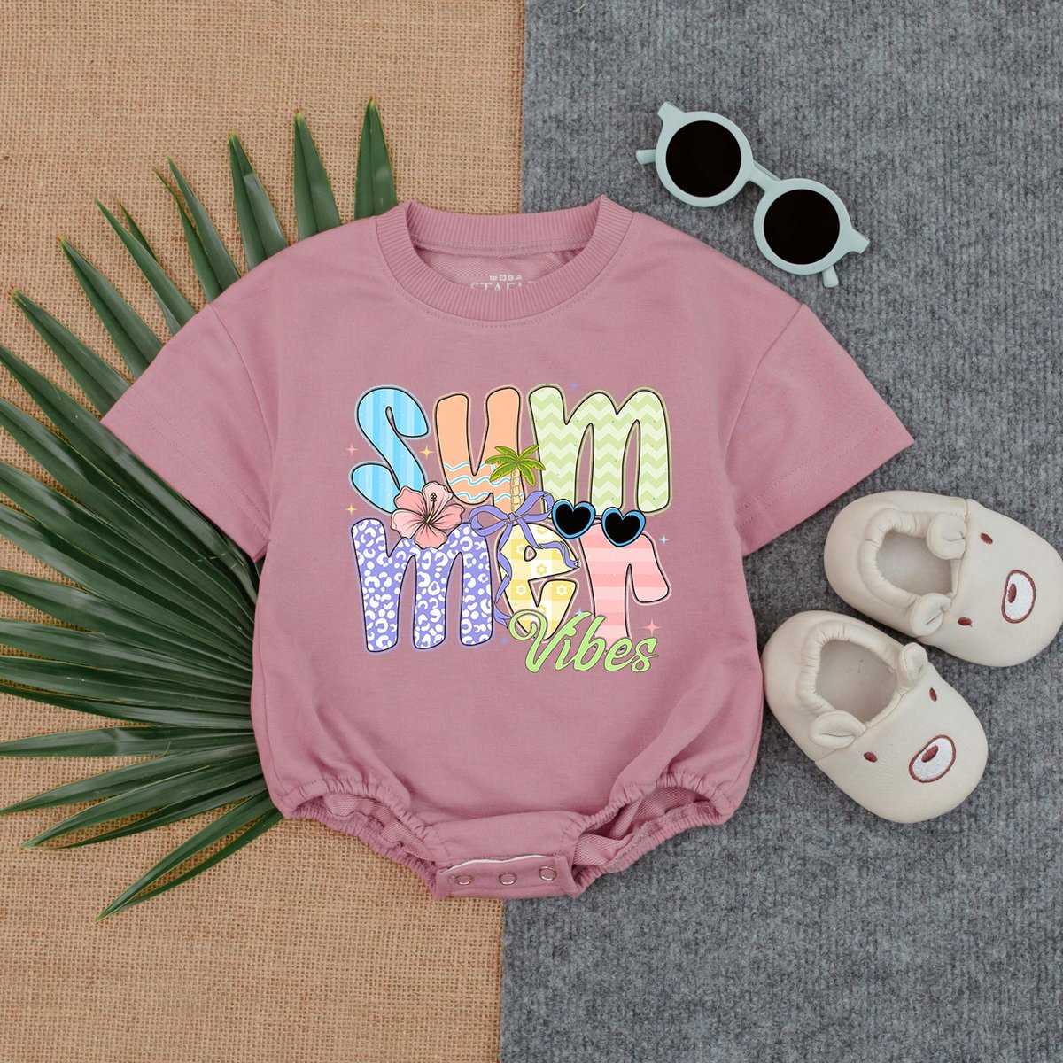 Summer Vibes T shirt Bubble Romper Toddler Summer Outfit Beach Day T shirt Bubble Vacation Baby Romp 430