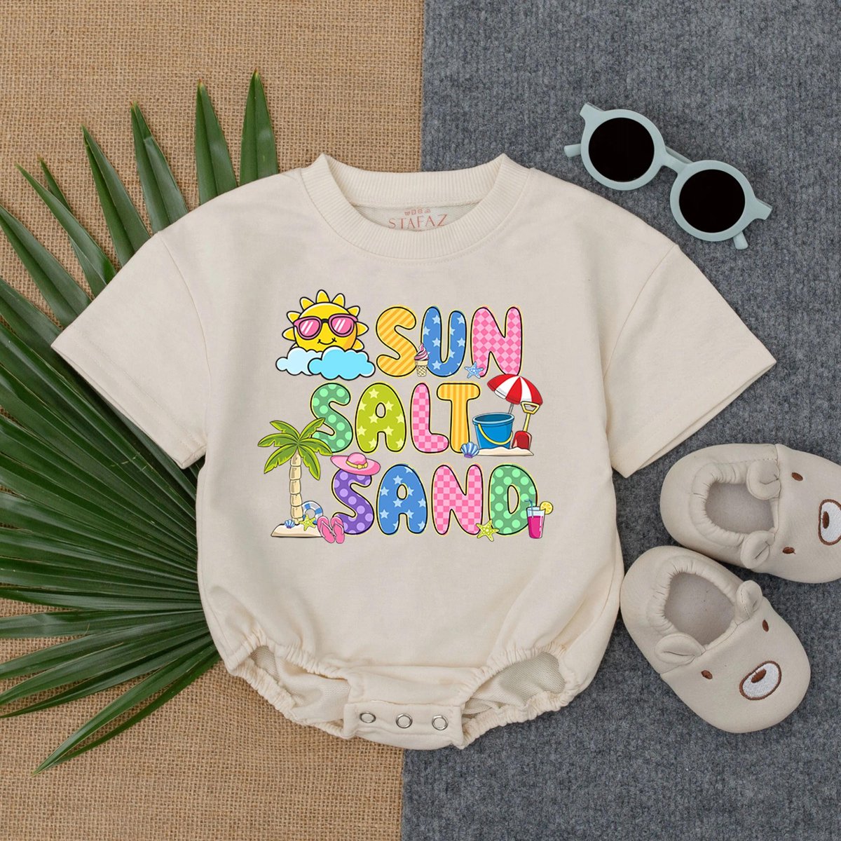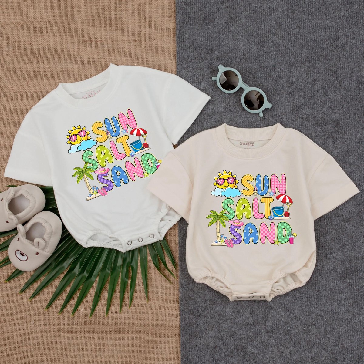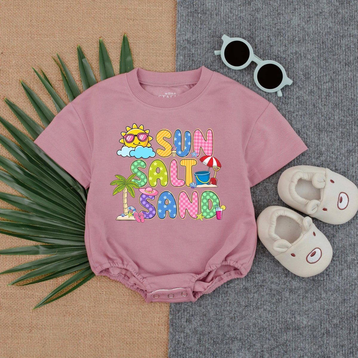 Sun Salt Sand Baby T shirt Bubble Romper Retro Summer Outfit Boho Girl Clothes Cute Kid Summer Cloth 430