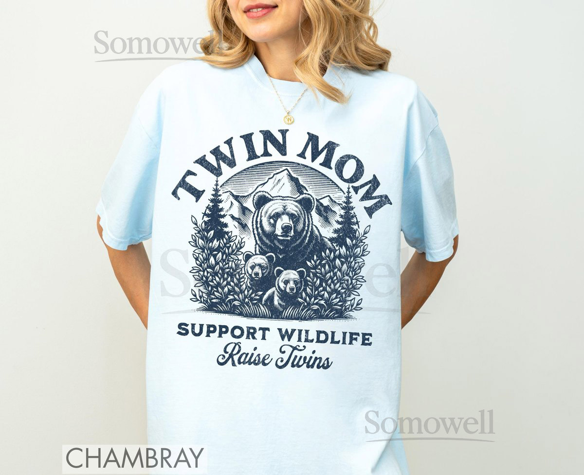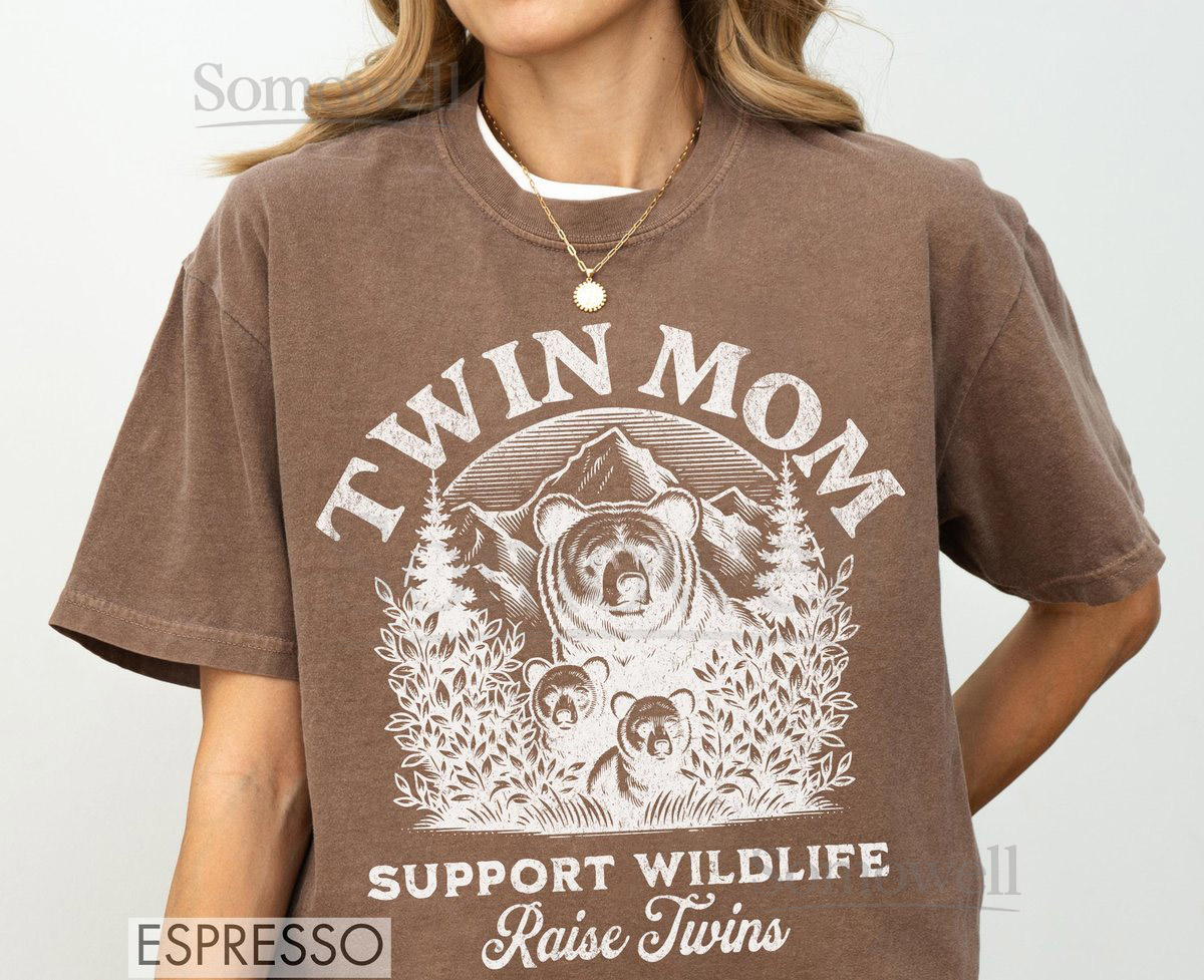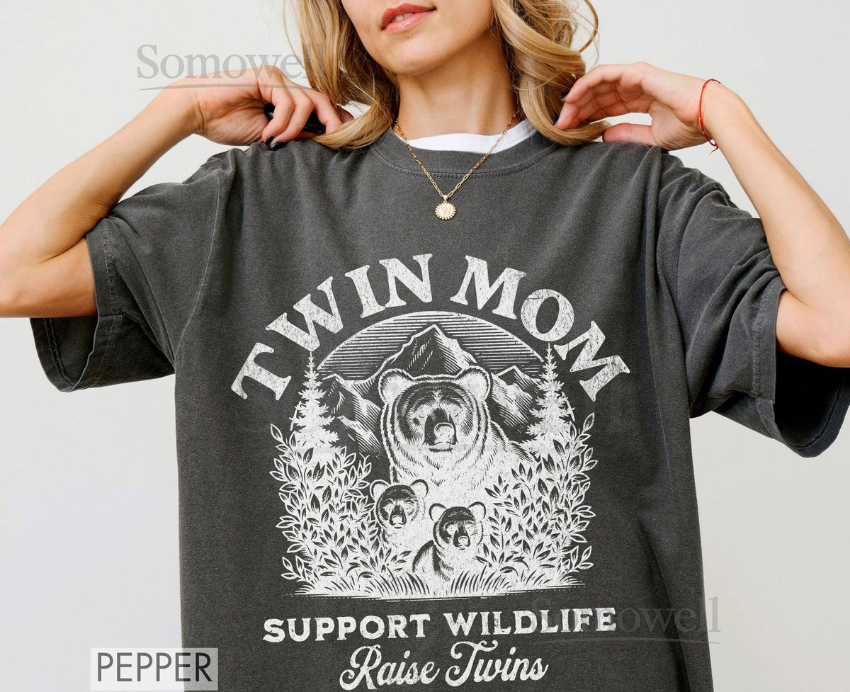 Support Wildlife Raise Twins Shirt Twin Mom Shirt Mother’s Day Gift Camping Shirt For Women Mom Hiking Shirt Mountain Mama Twin Mama_779