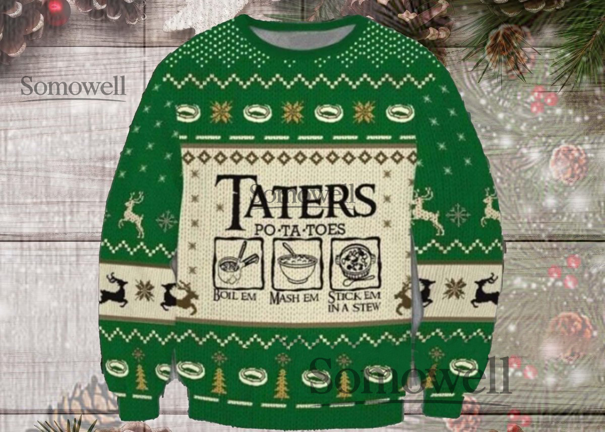 Taters Potatoes Christmas Sweater Fun Holiday Sweater with Potato Theme in Many Colors