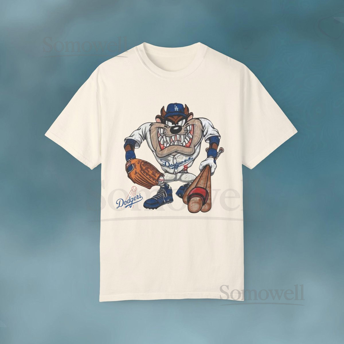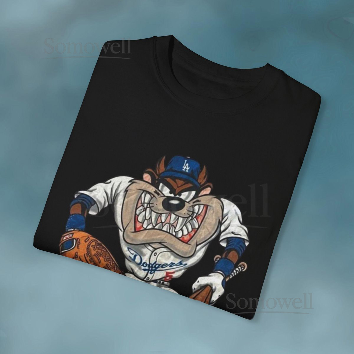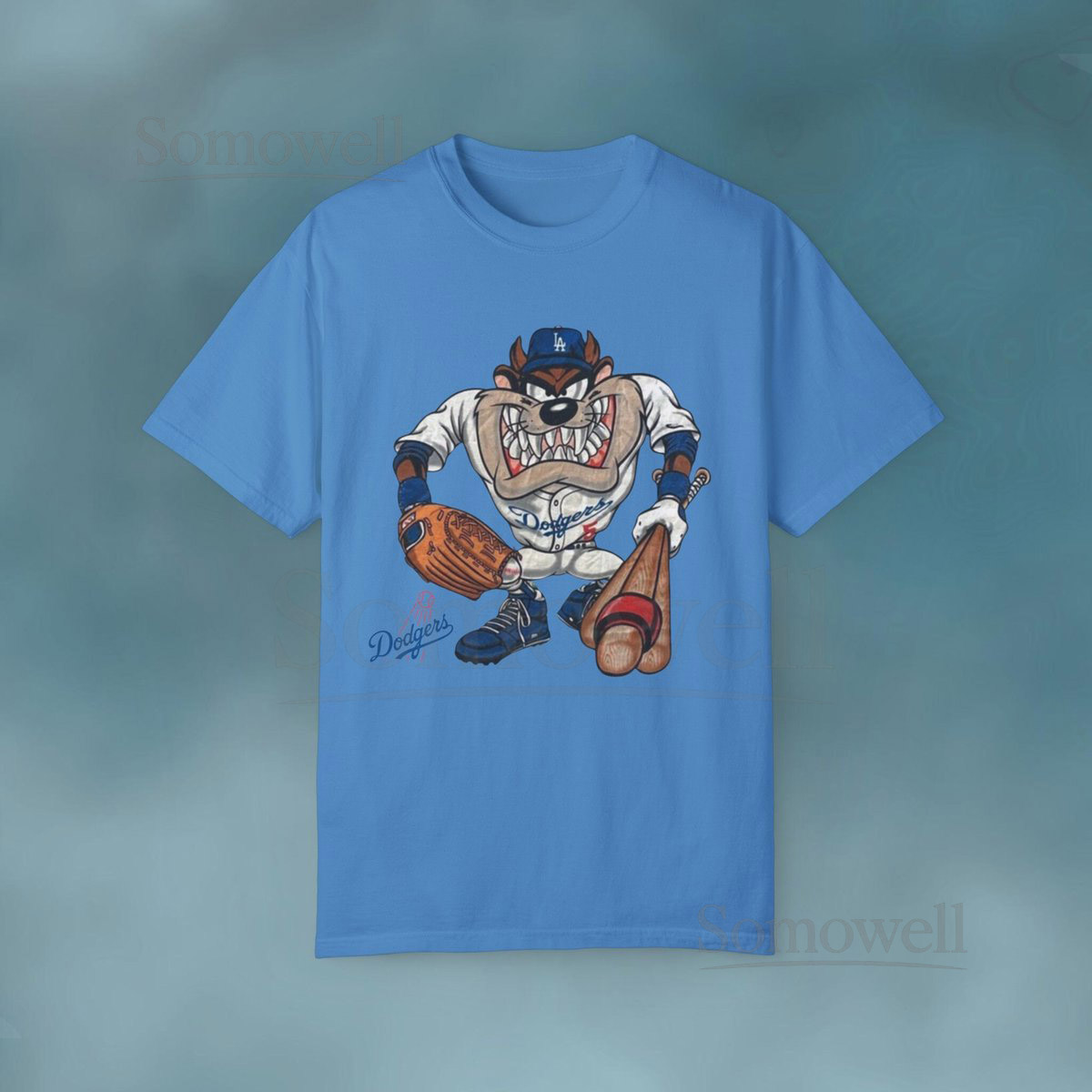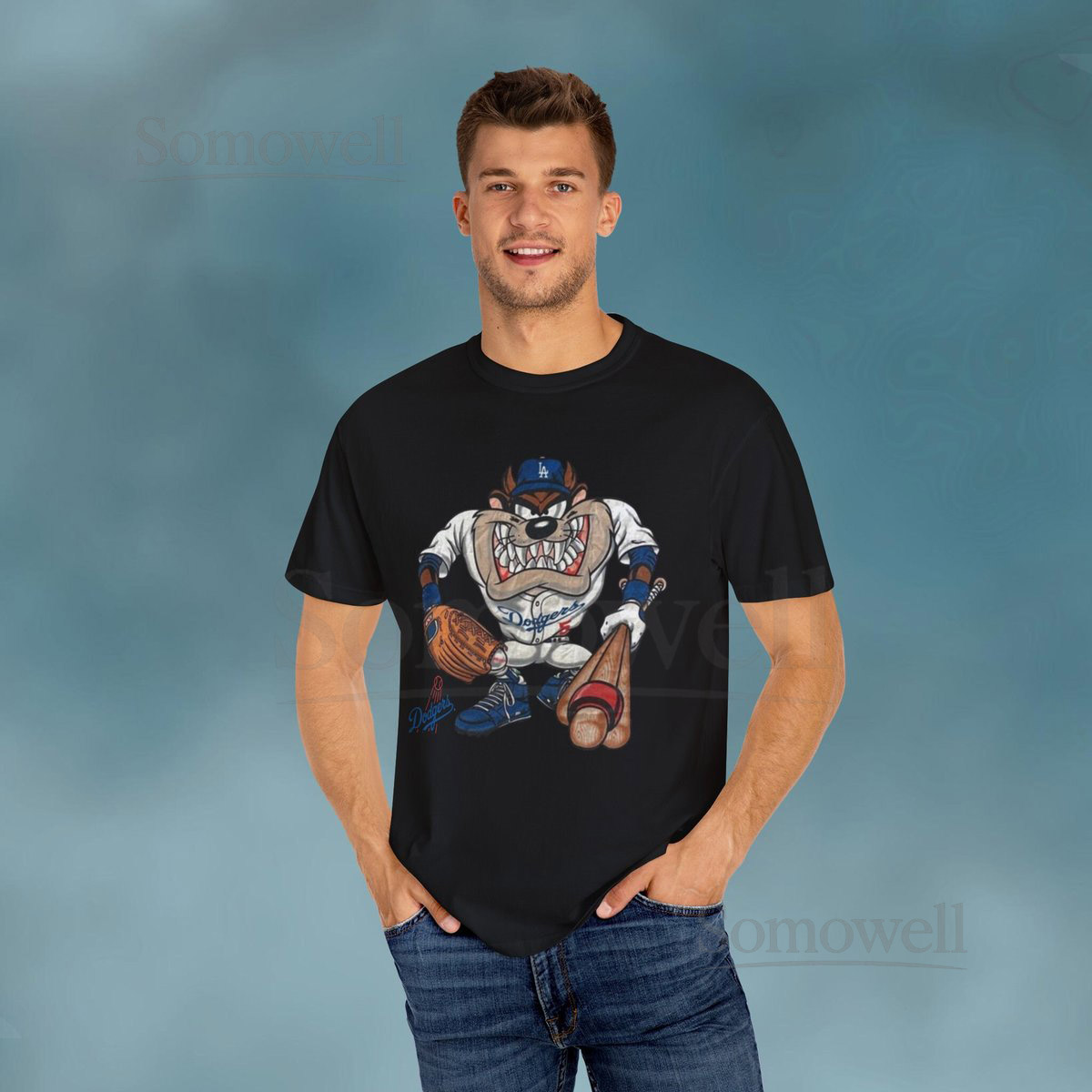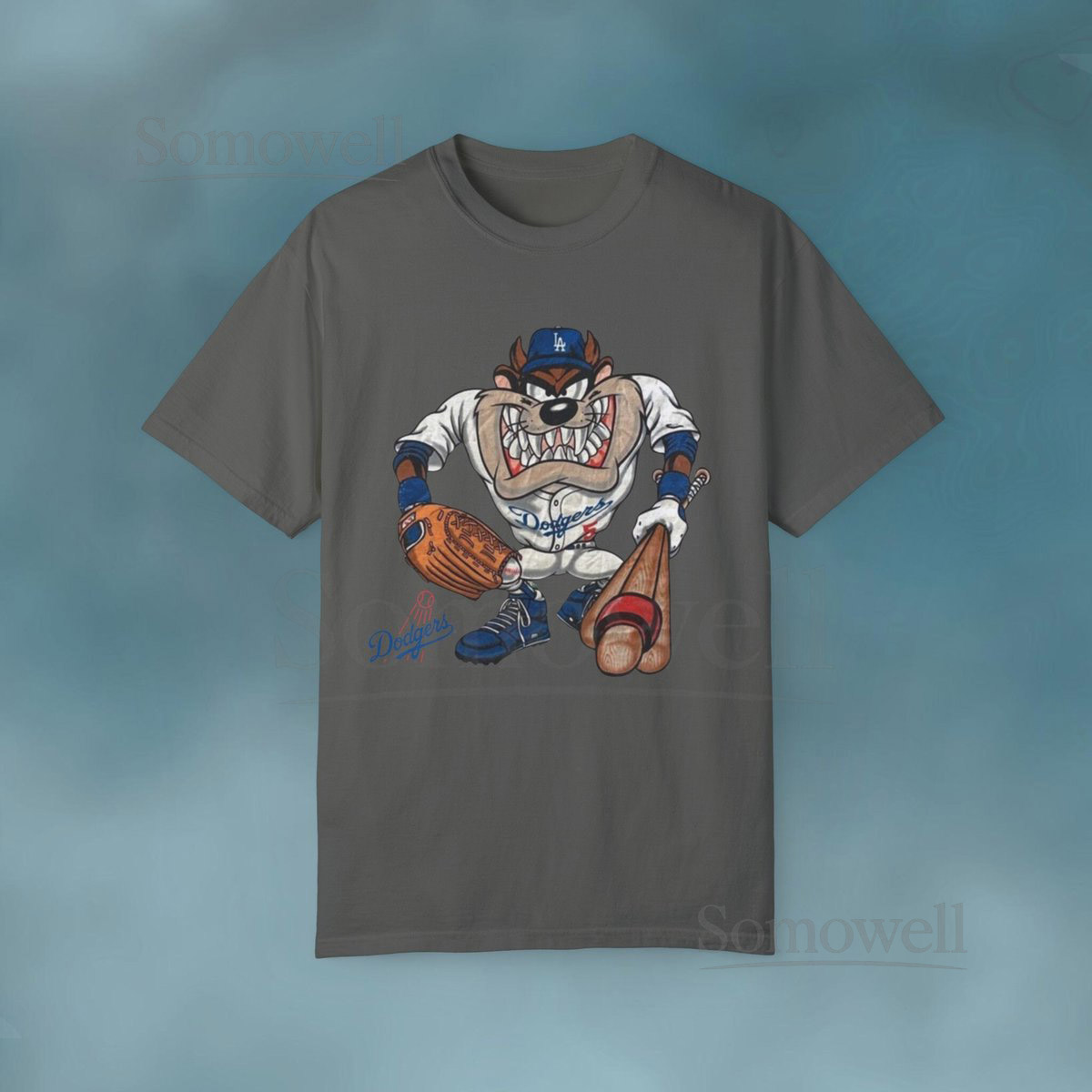 Taz LA Dodgers – Unisex Garment-Dyed T-shirt Comfort Colors Los Angeles Baseball Baseball Lover Tasmanian Devil Looney Tunes_797