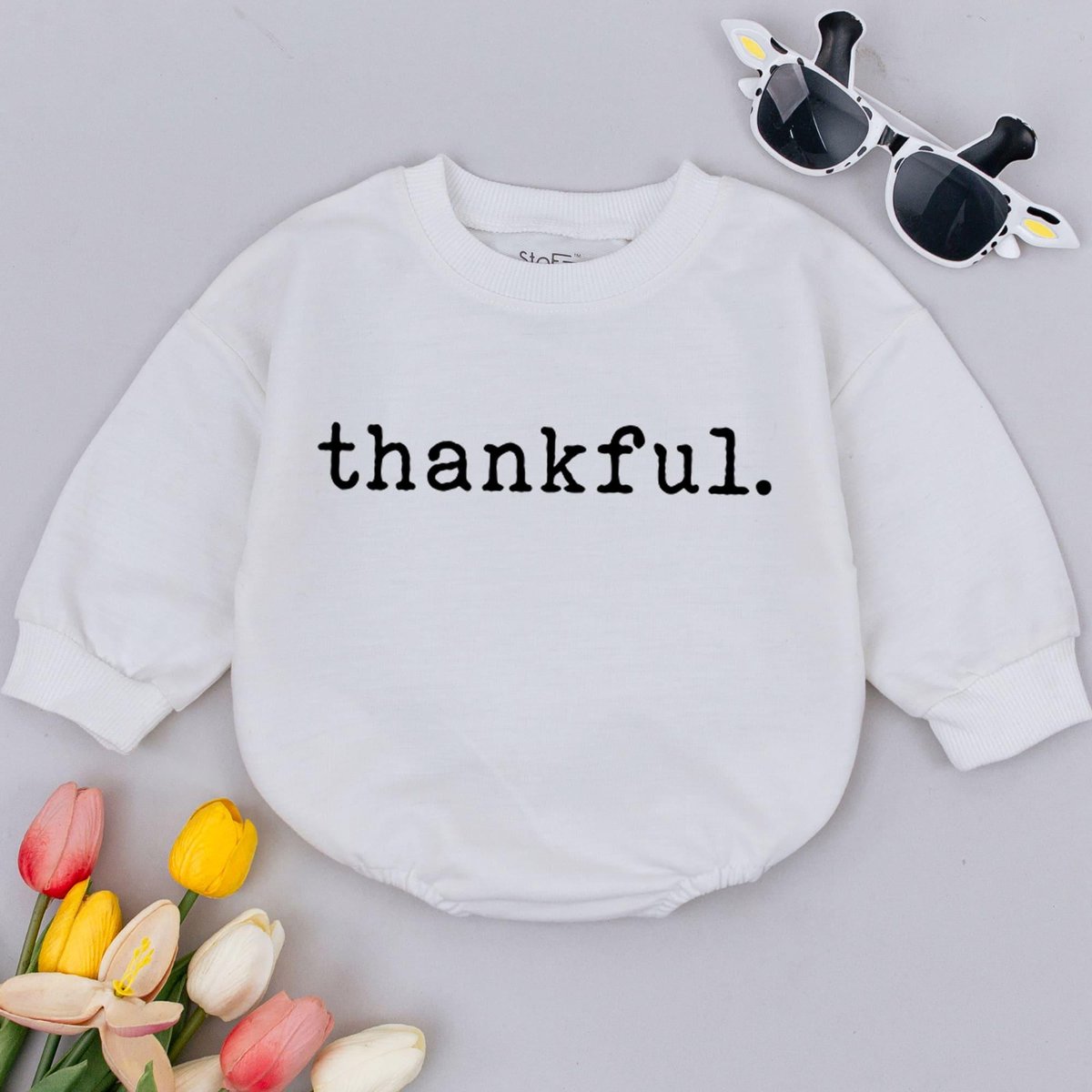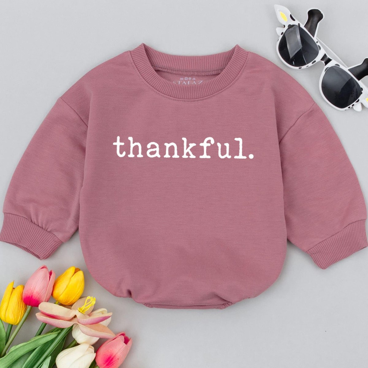 Thankful Baby Romper Thanksgiving Baby Outfit Pumpkin Baby Romper Baby Sweatshirt Romper First Thank 176