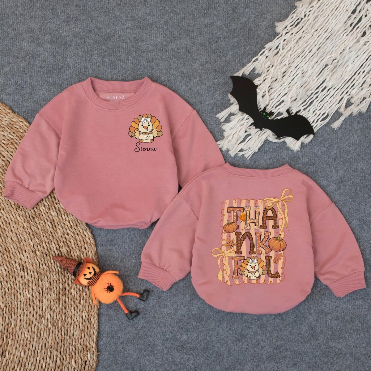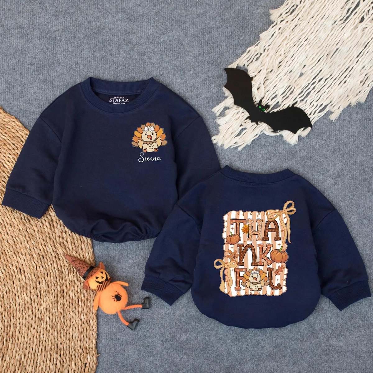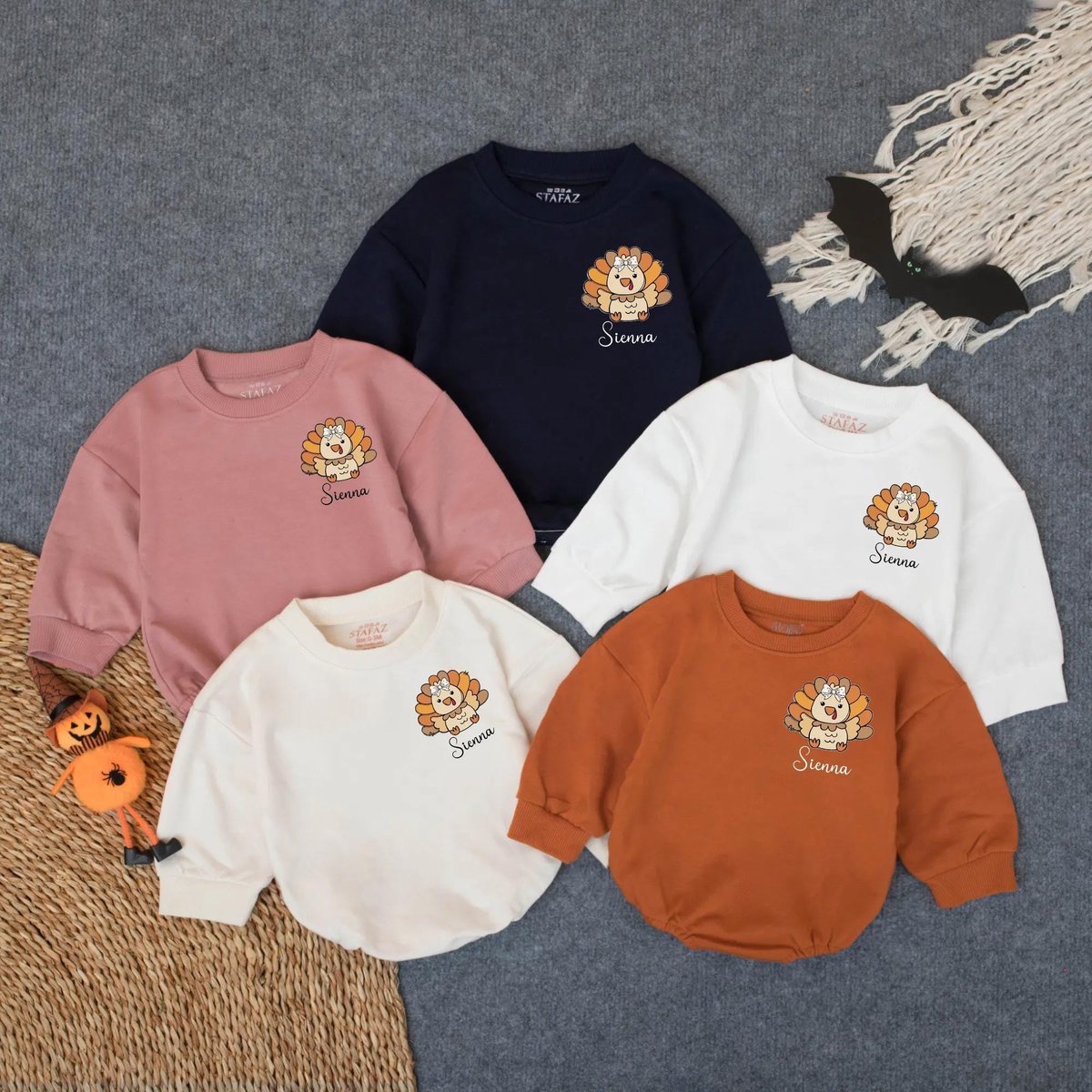 Thankful Fall Turkey Bubble Romper for Baby Girl Personalized Thanksgiving Outfit Cute Custom Autumn 432