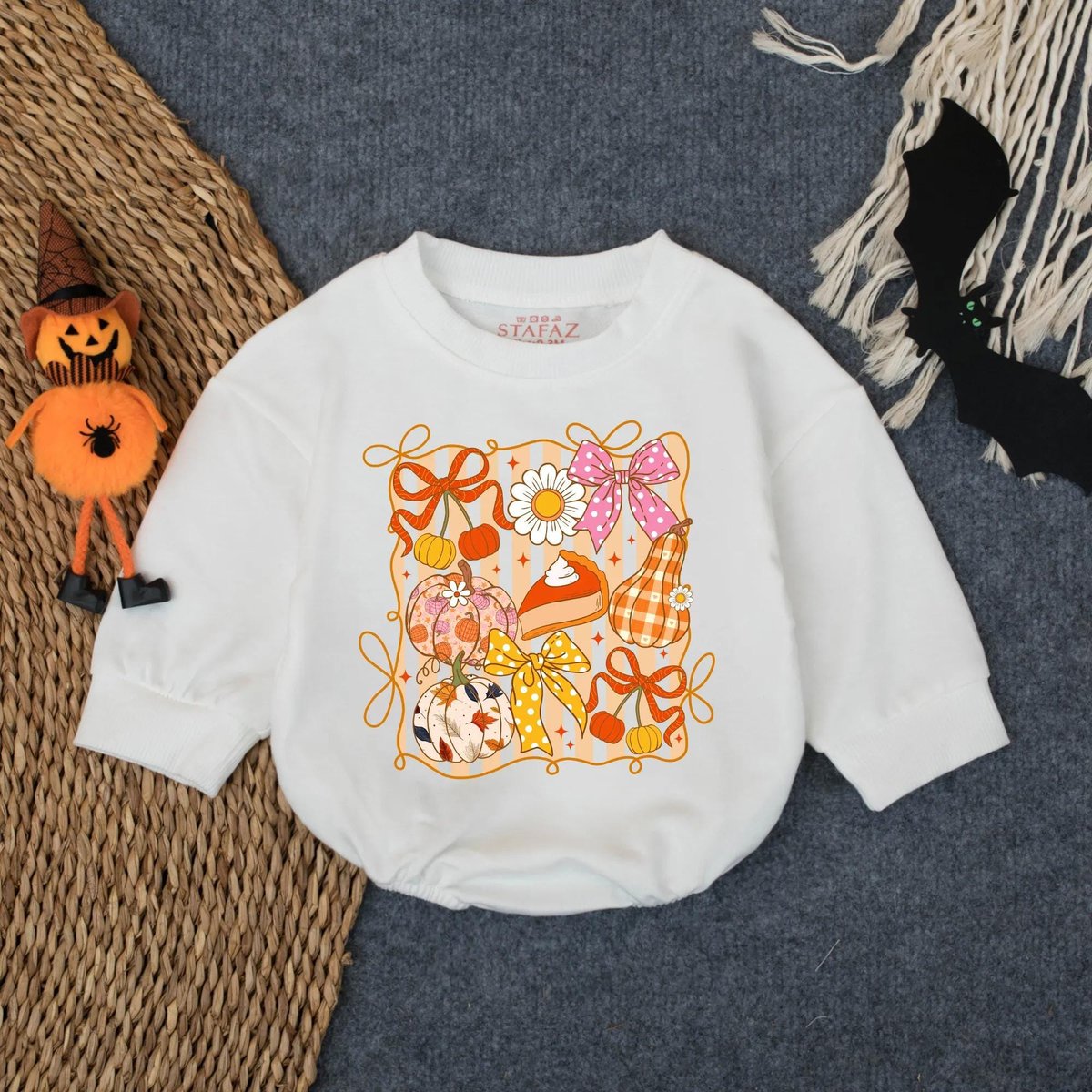 Thanksgiving Pumpkin Floral Glitter Bubble Romper Baby Girl Fall Harvest Outfit Autumn Thanksgiving 433