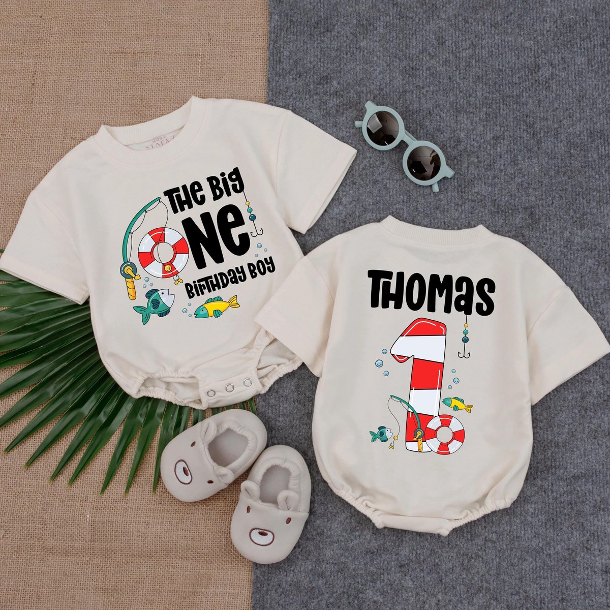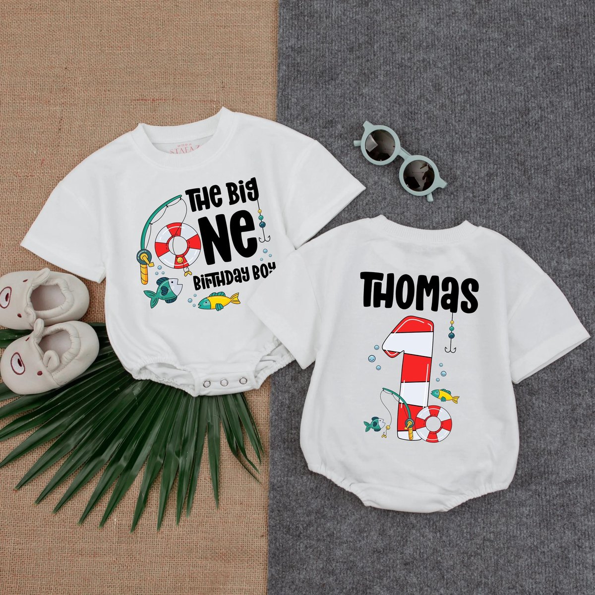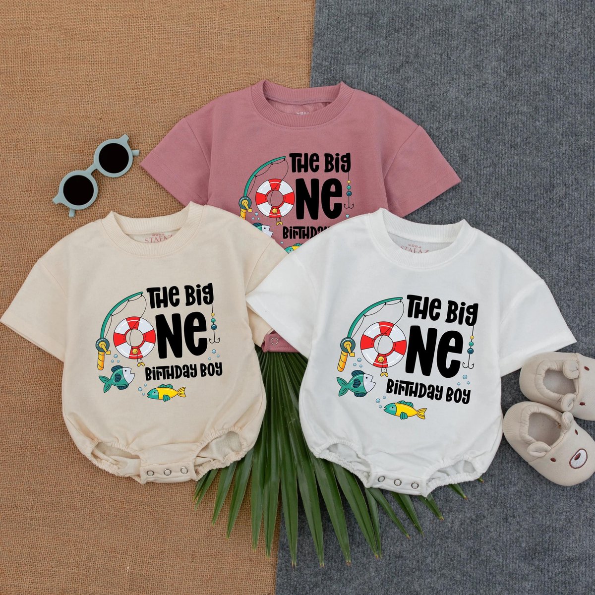 The Big One Fishing Boy 1st Birthday Bubble Romper First Birthday Fishing Outfit for Boy Nautical Bi 432