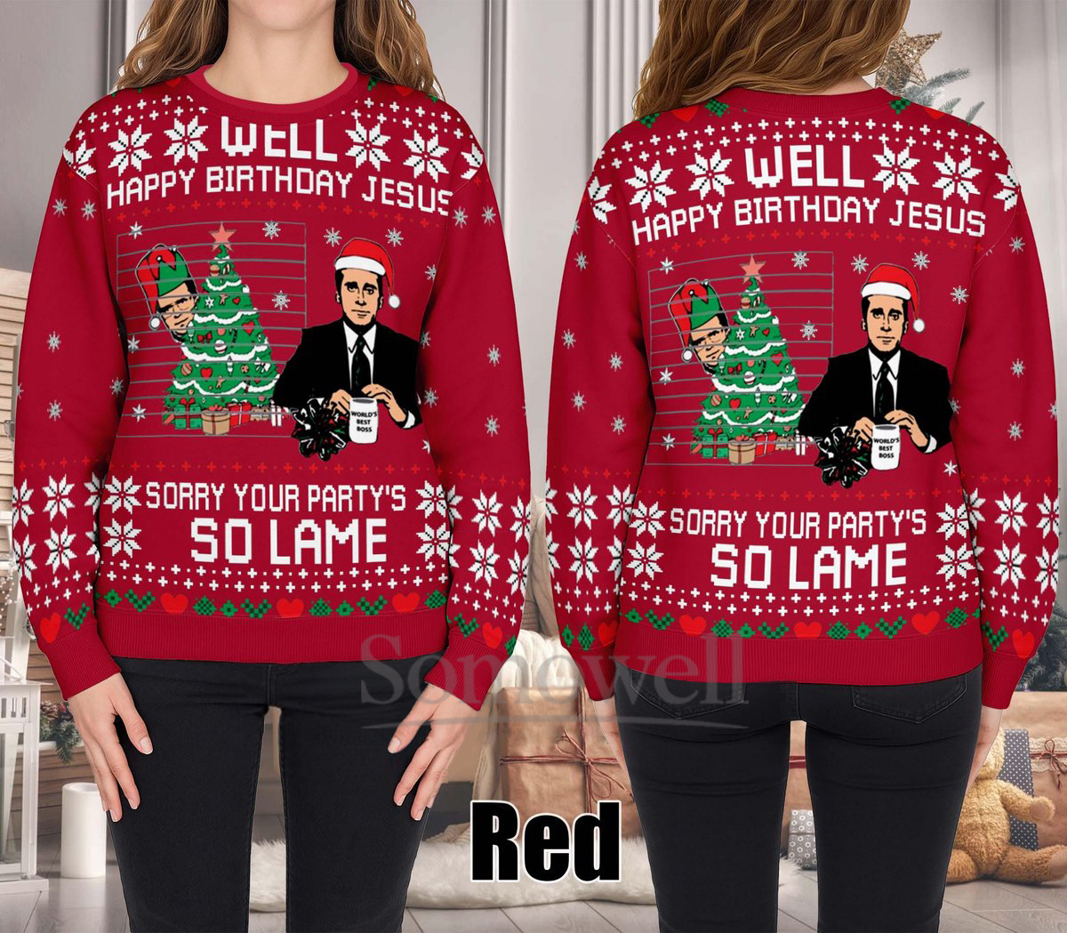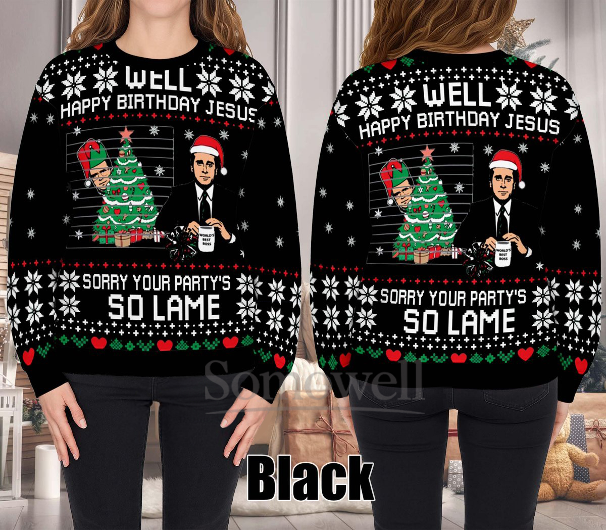 Be the first to review “The Office Happy Birthday Jesus Ugly Christmas Sweater Funny Navy Holiday Knit Jumper”