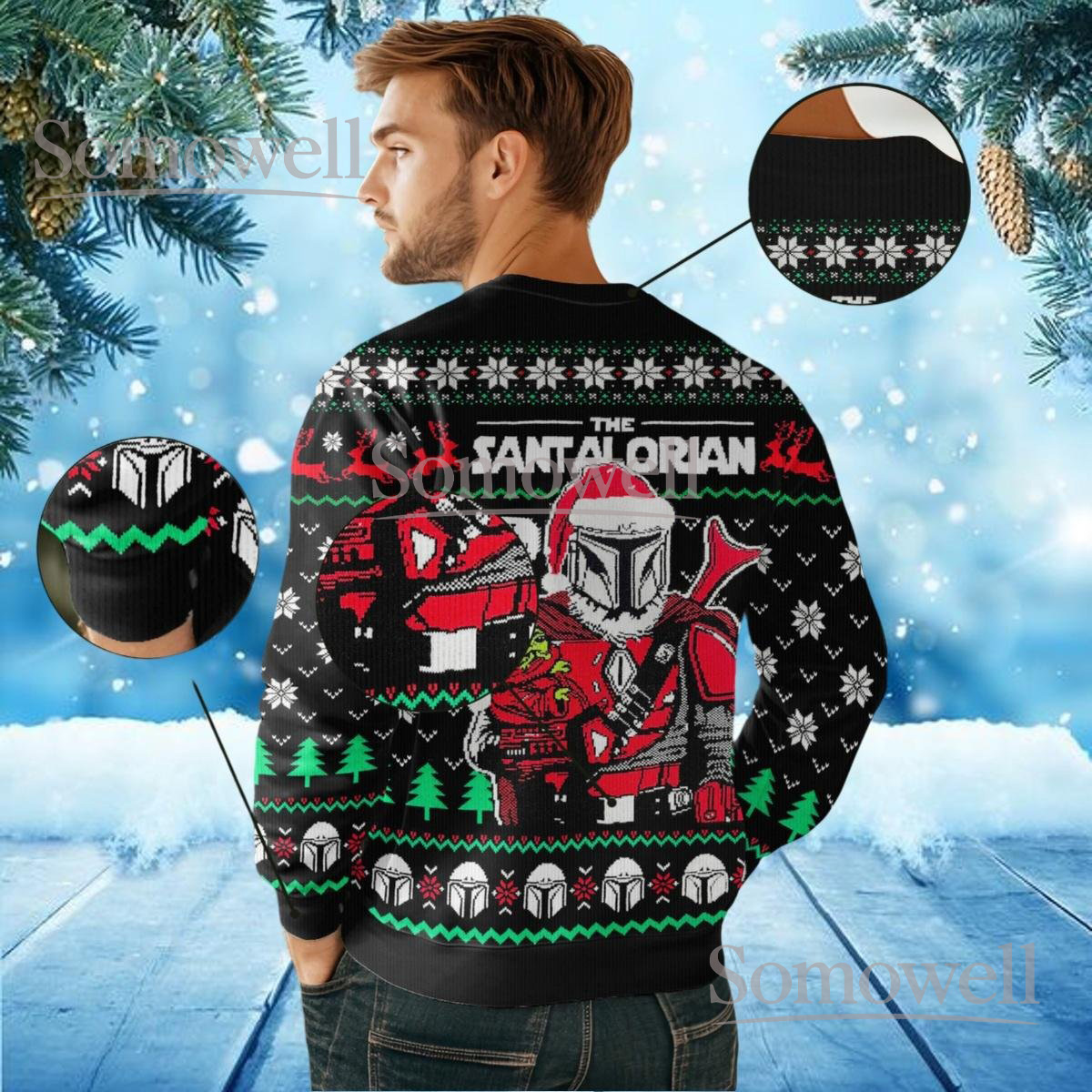 The Santalorian Ugly Christmas Sweater Funny Baby Yoda Star Wars Parody Holiday Knit Jumper Gift