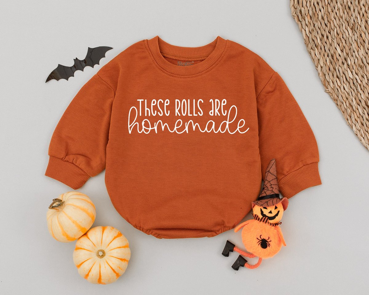 These Rolls Are Homemade Baby RomperFirst Thanksgiving Baby OutfitNewborn ThanksgivingFall Baby Clot