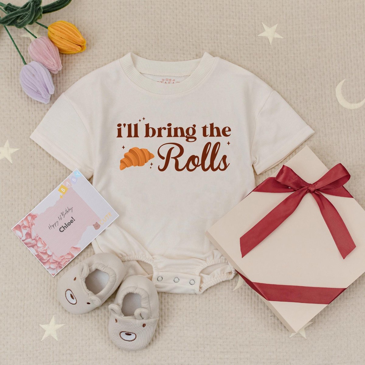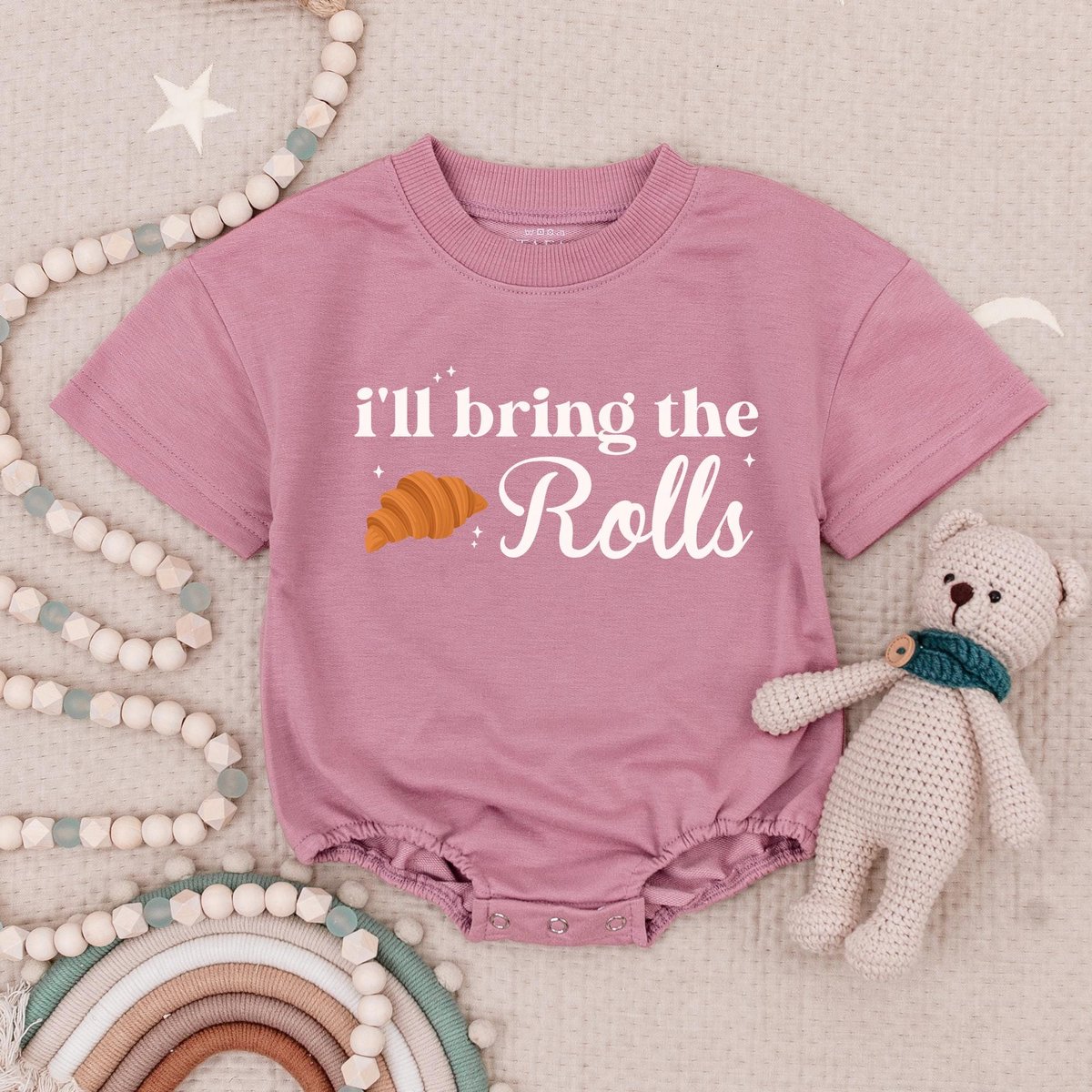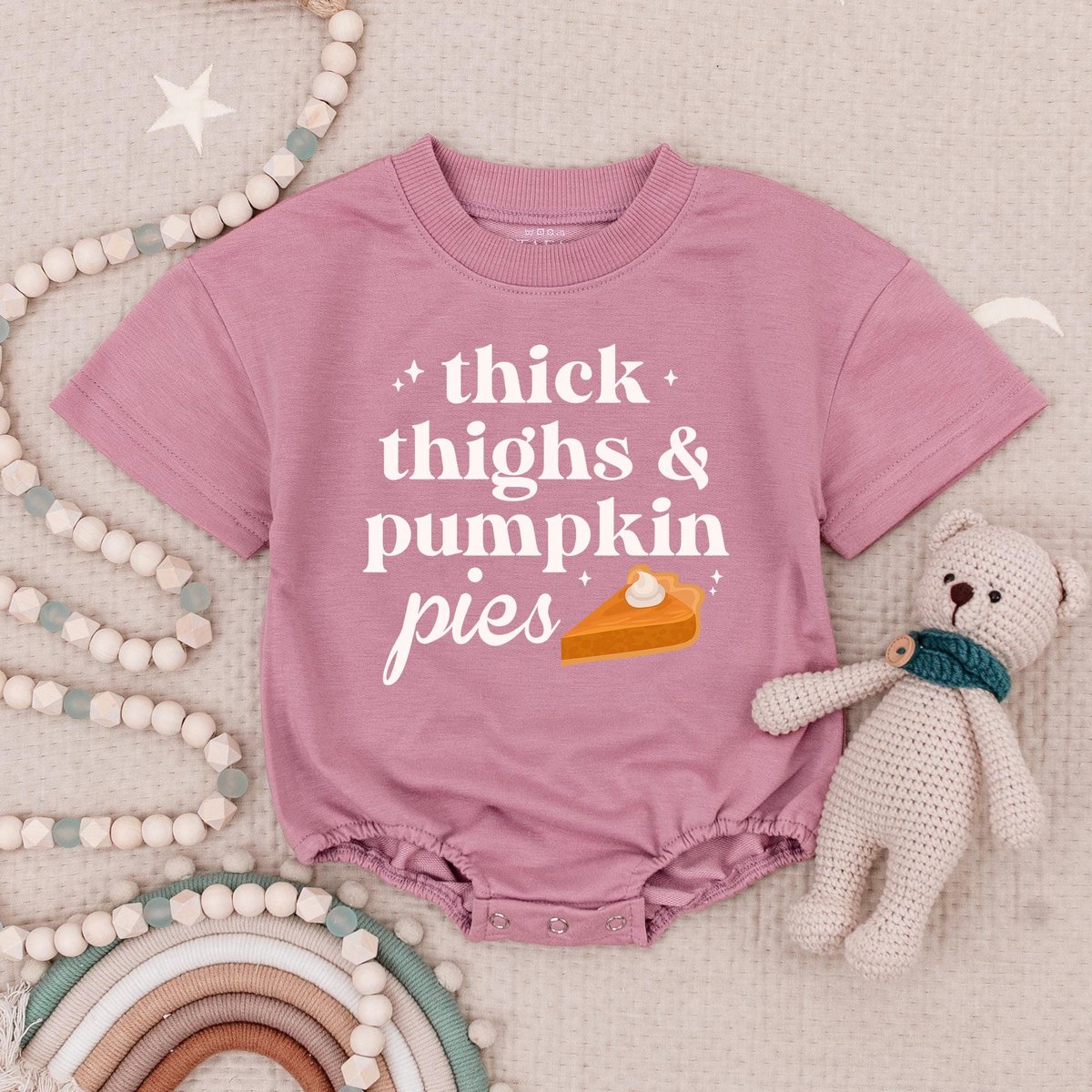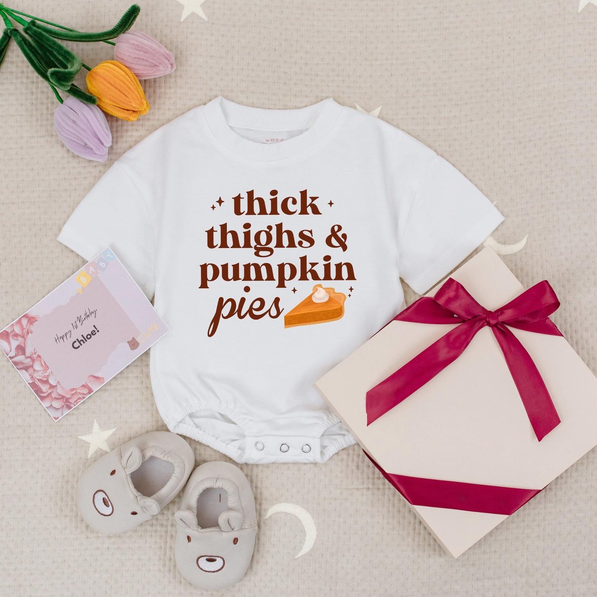 Thick Thighs and Pumpkin Pies Baby Romper I’ll Bring The Rolls Babysuit Thanksgiving Cute Baby Romp
