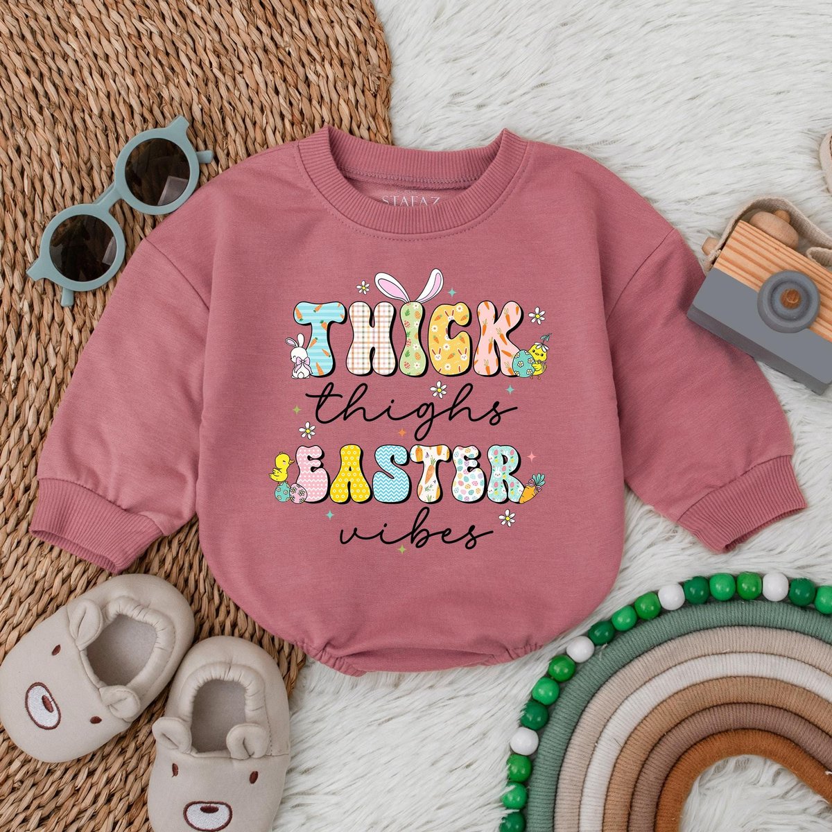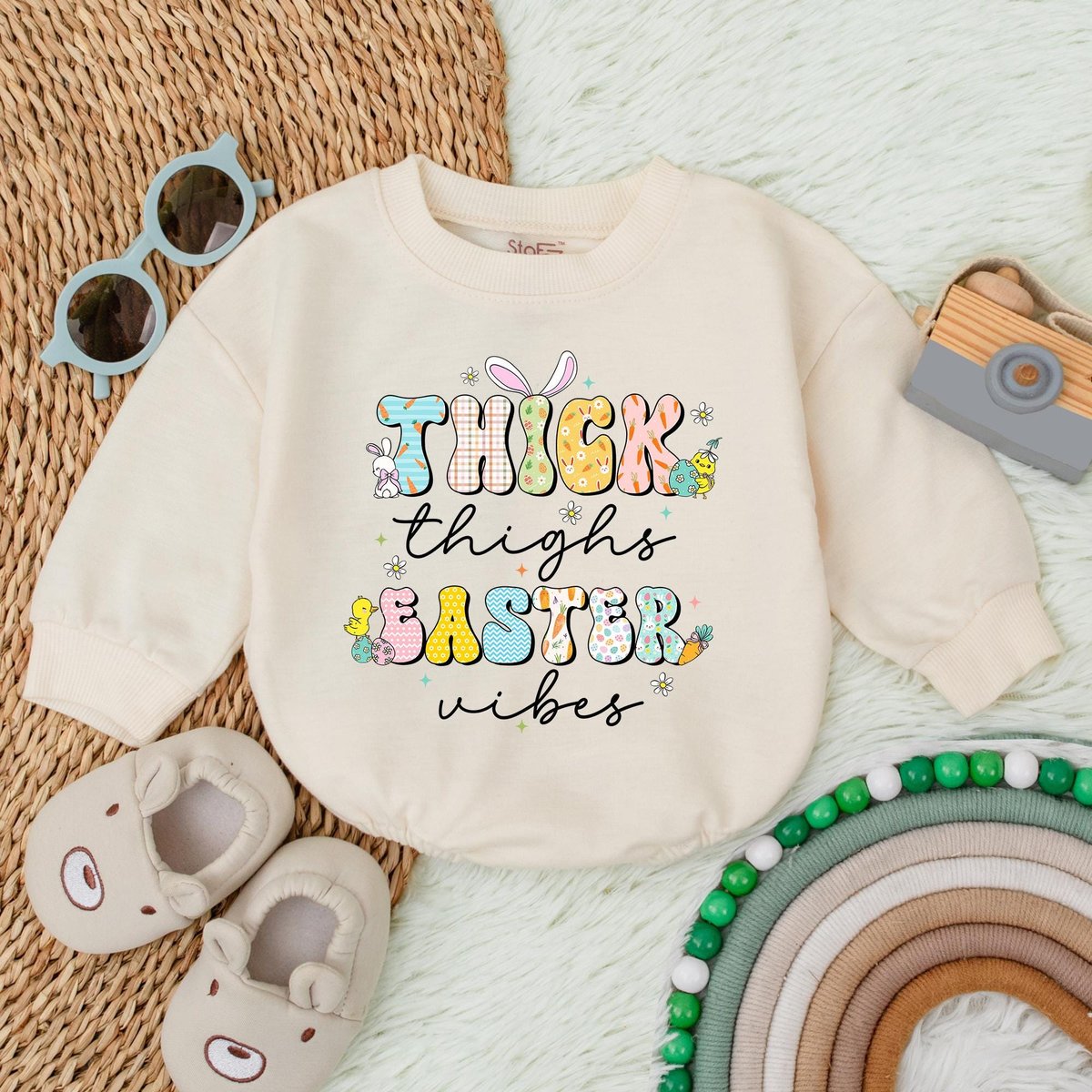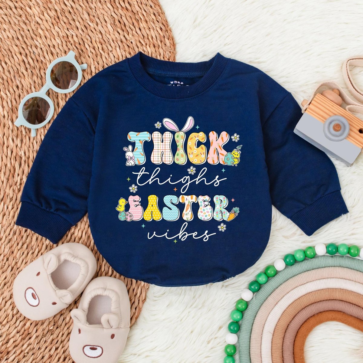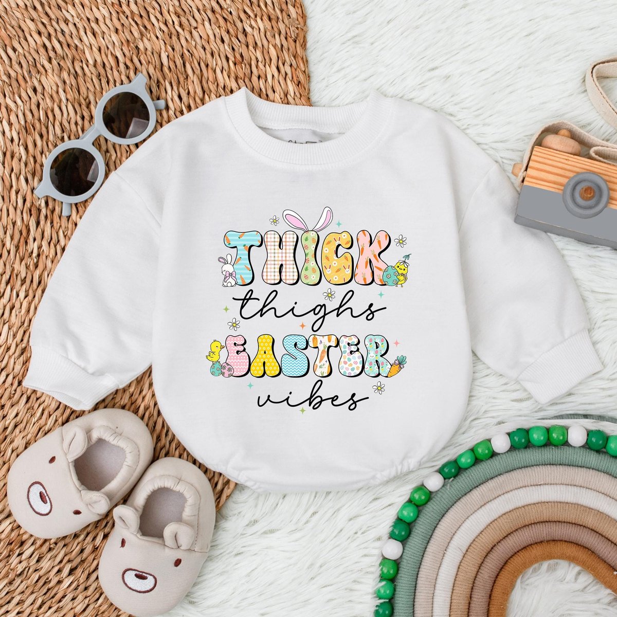 Thick Thighs Easter Vibes Bubble Romper Bunny Easter Day Romper My First Easter Baby Bodysuit Newbor 188