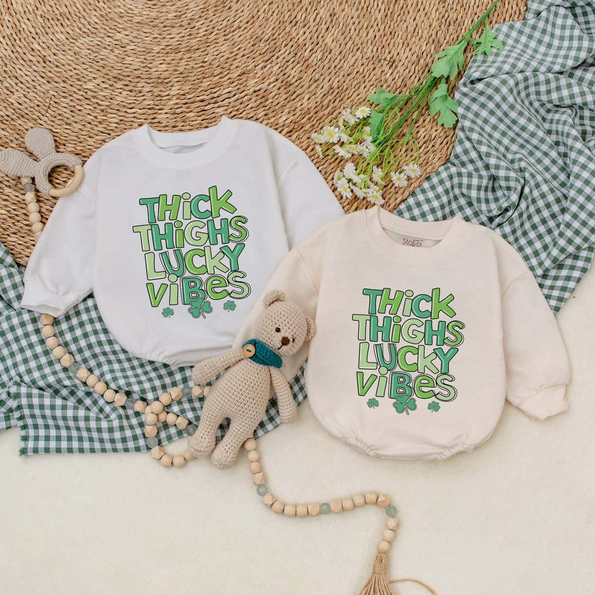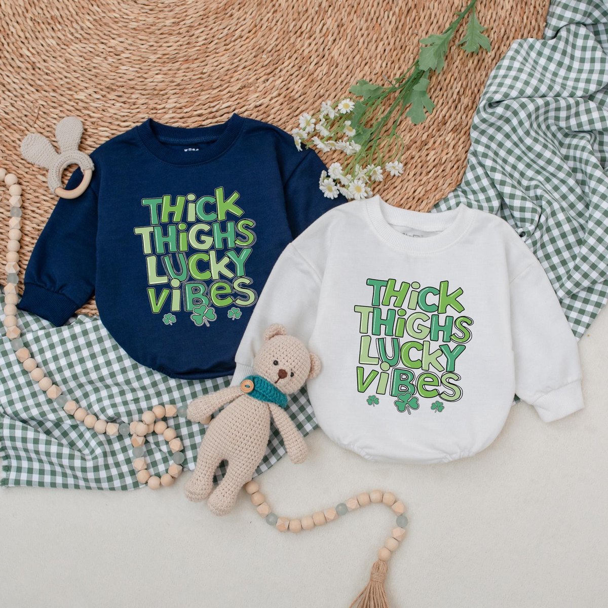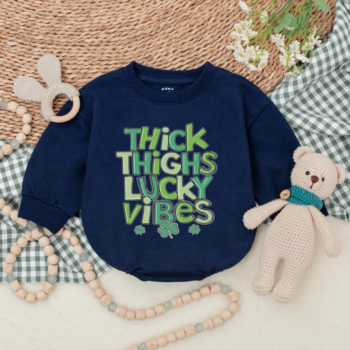 Thick Thighs Lucky Vibes Baby Romper Lucky Vibes Bodysuit Baby Patrick’s Day Outfit First St Patric 184