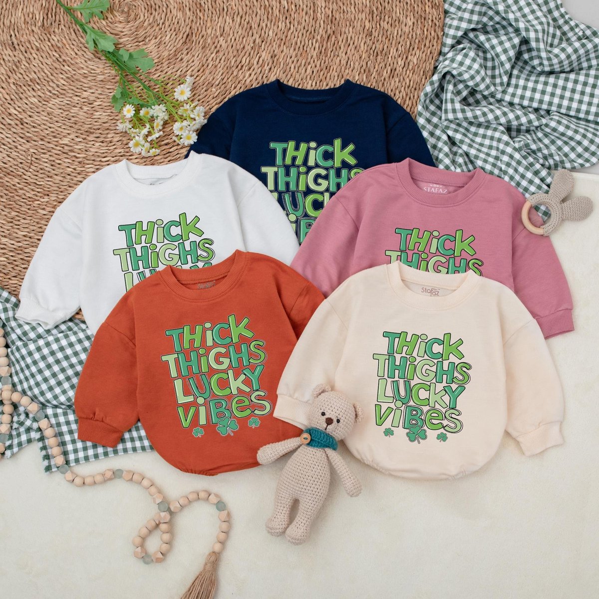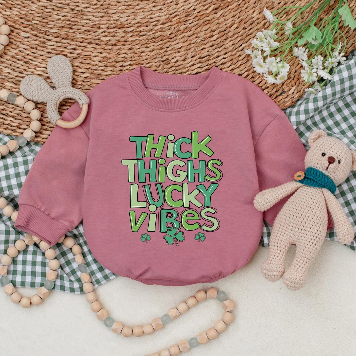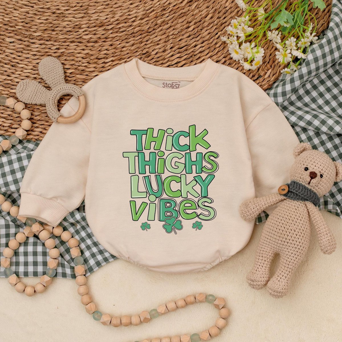 Thick Thighs Lucky Vibes Baby Romper Lucky Vibes Bodysuit Baby Patrick’s Day Outfit First St Patric 184