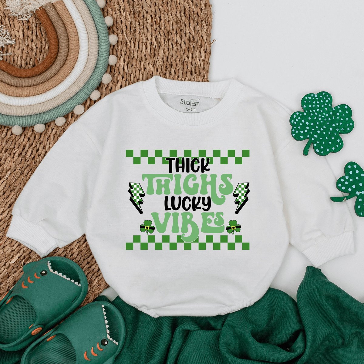 Thick Thighs Lucky Vibes Baby Romper St.Patricks day baby Outfit Baby Outfit Infant Clothes Newborn 165