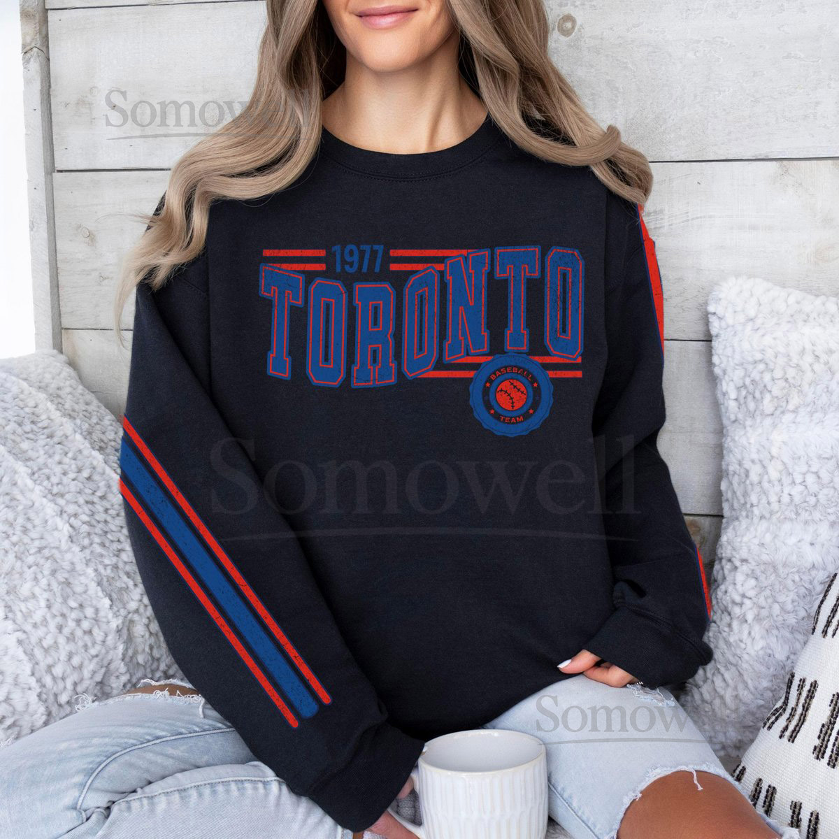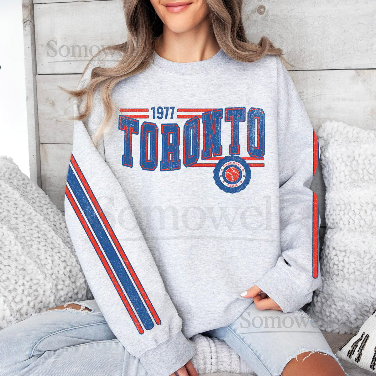 Toronto Baseball Vintage Retro Sweatshirt Unisex Blue Jay Sleeve Print Crewneck Throwback Style Sweatshirt Gift for Toronto Baseball Fans_850